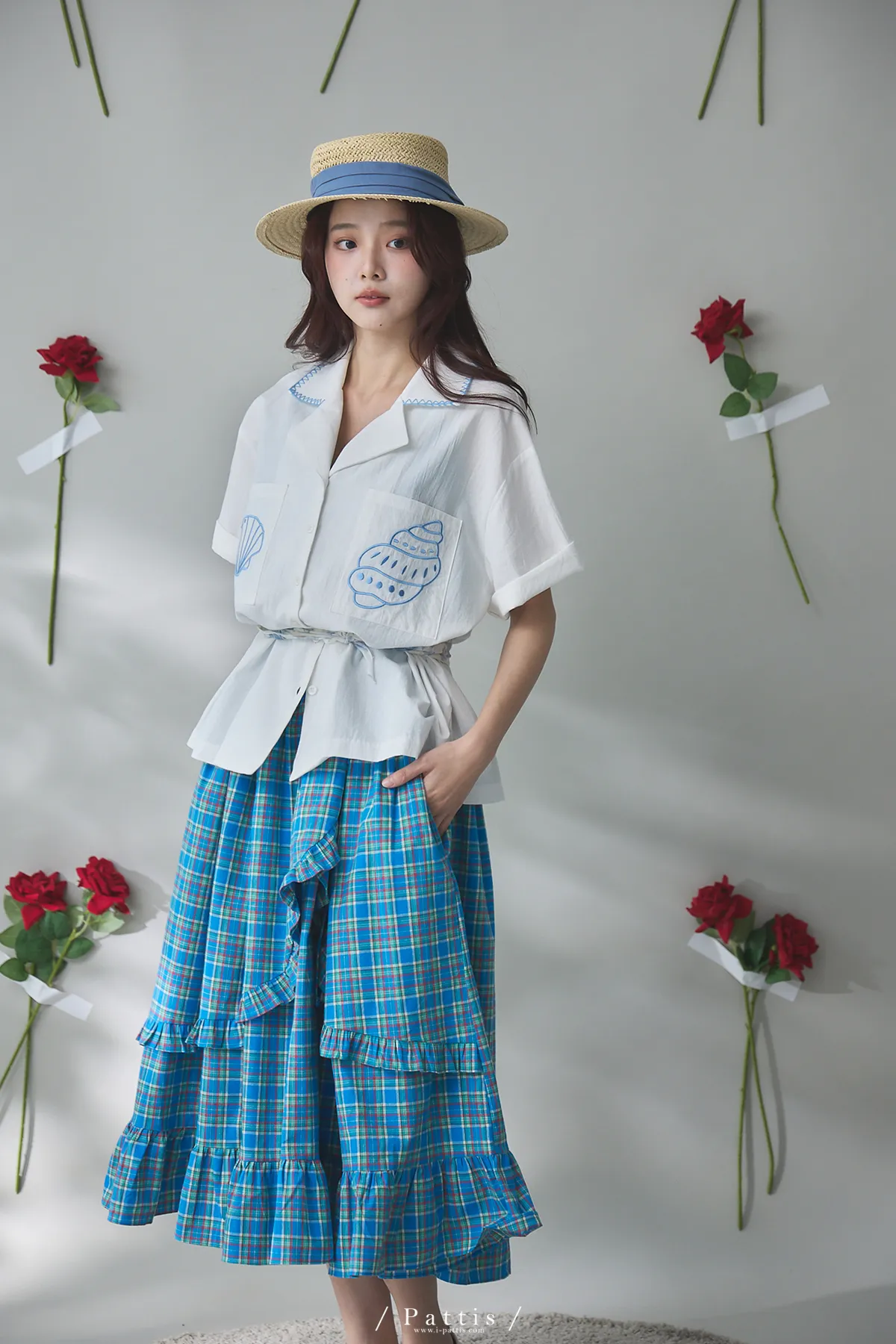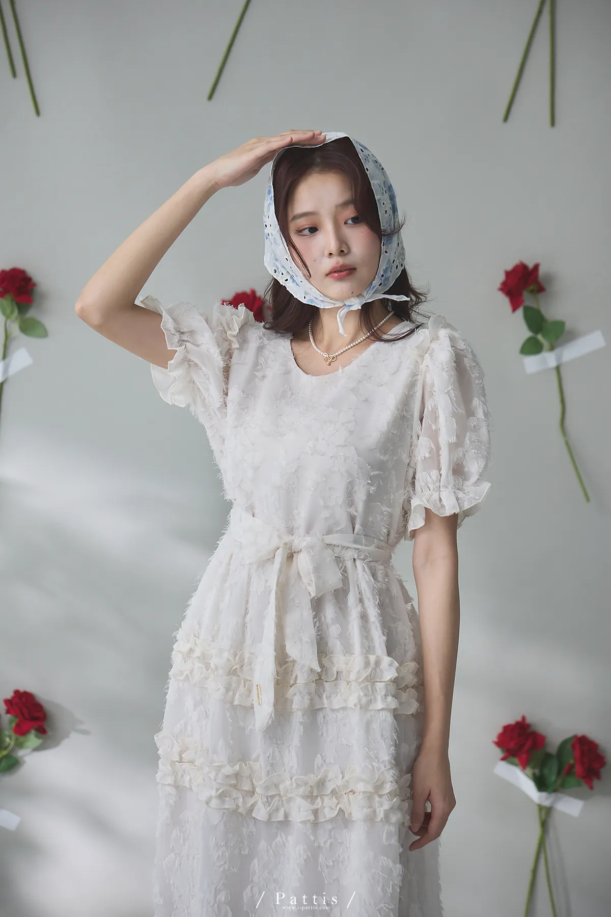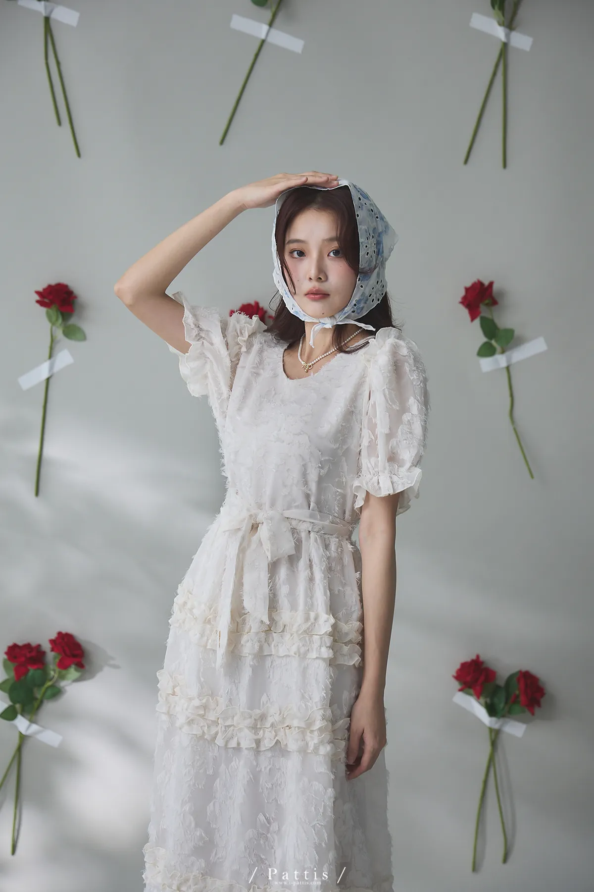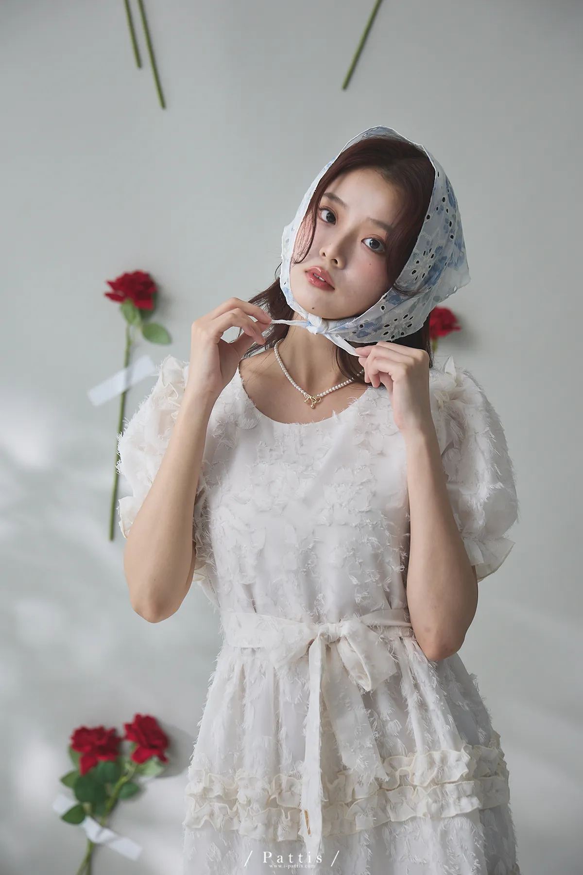 (現貨)古典薔薇繡花縷空三角布領巾(橘紅/藍)