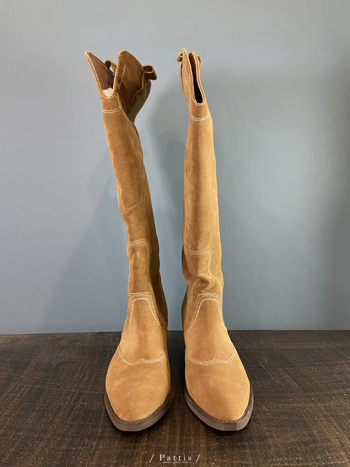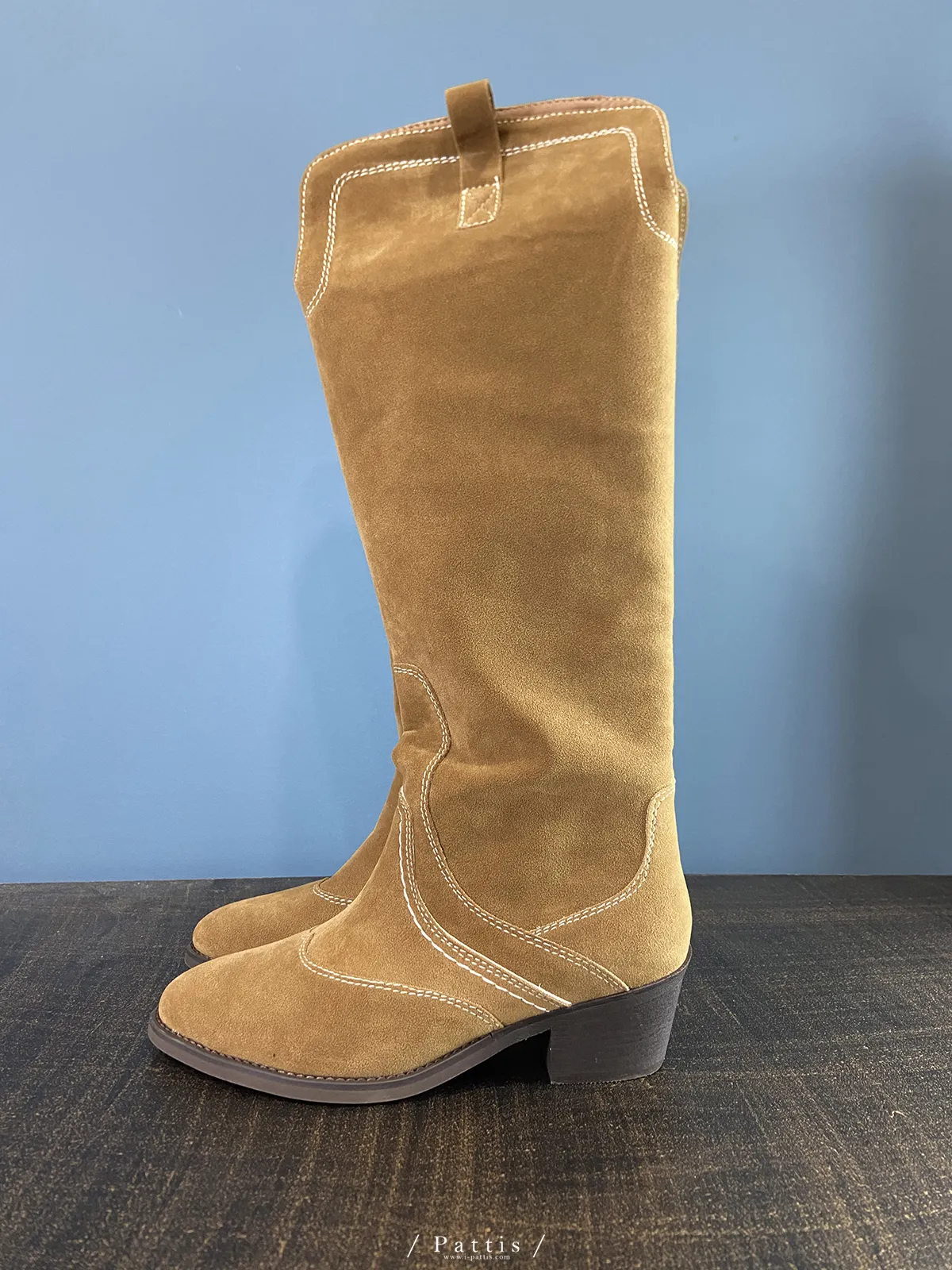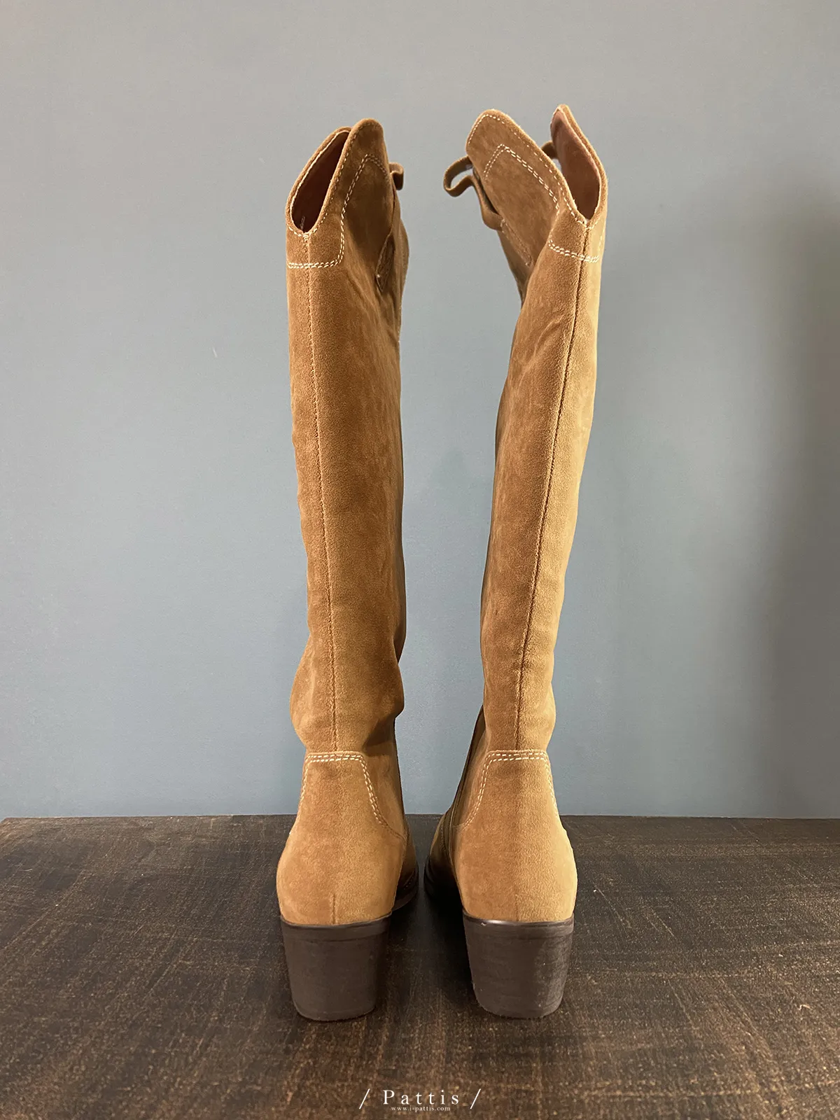 【福利鞋SALE】麂皮車線造型長靴(單一色24.0)