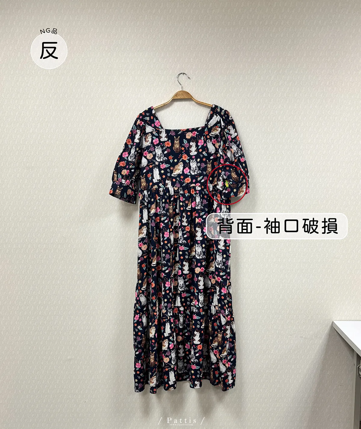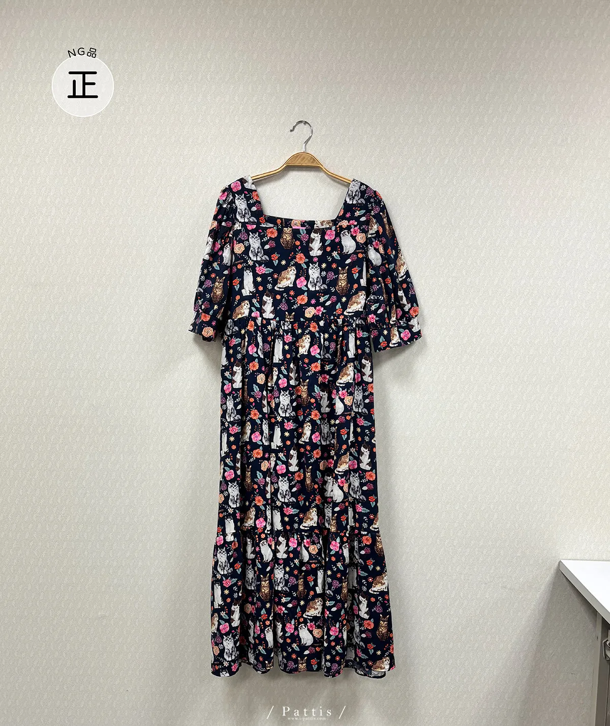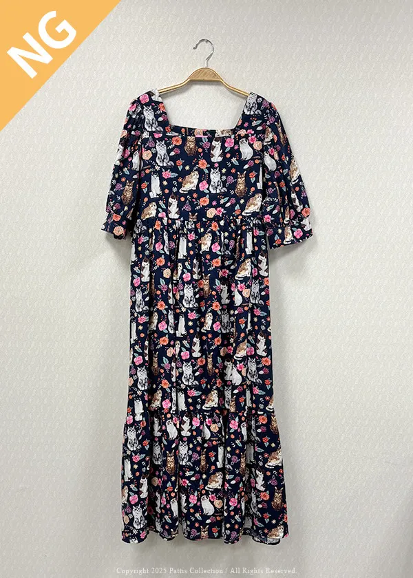 / NG品 /滿版貓咪方領洋裝(深藍)
