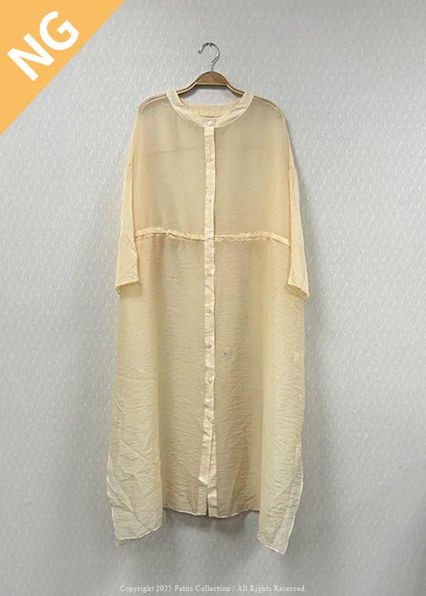 / NG品 /抽繩鈕釦透膚罩衫(米黃)