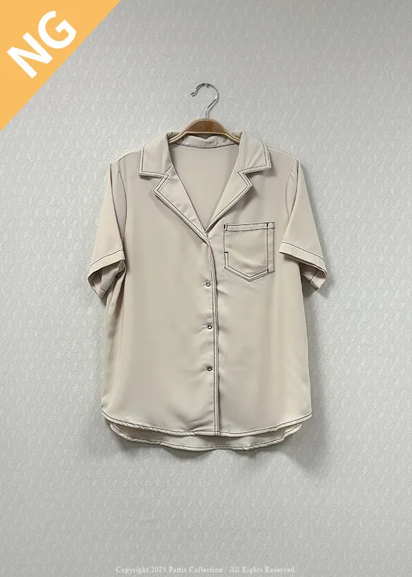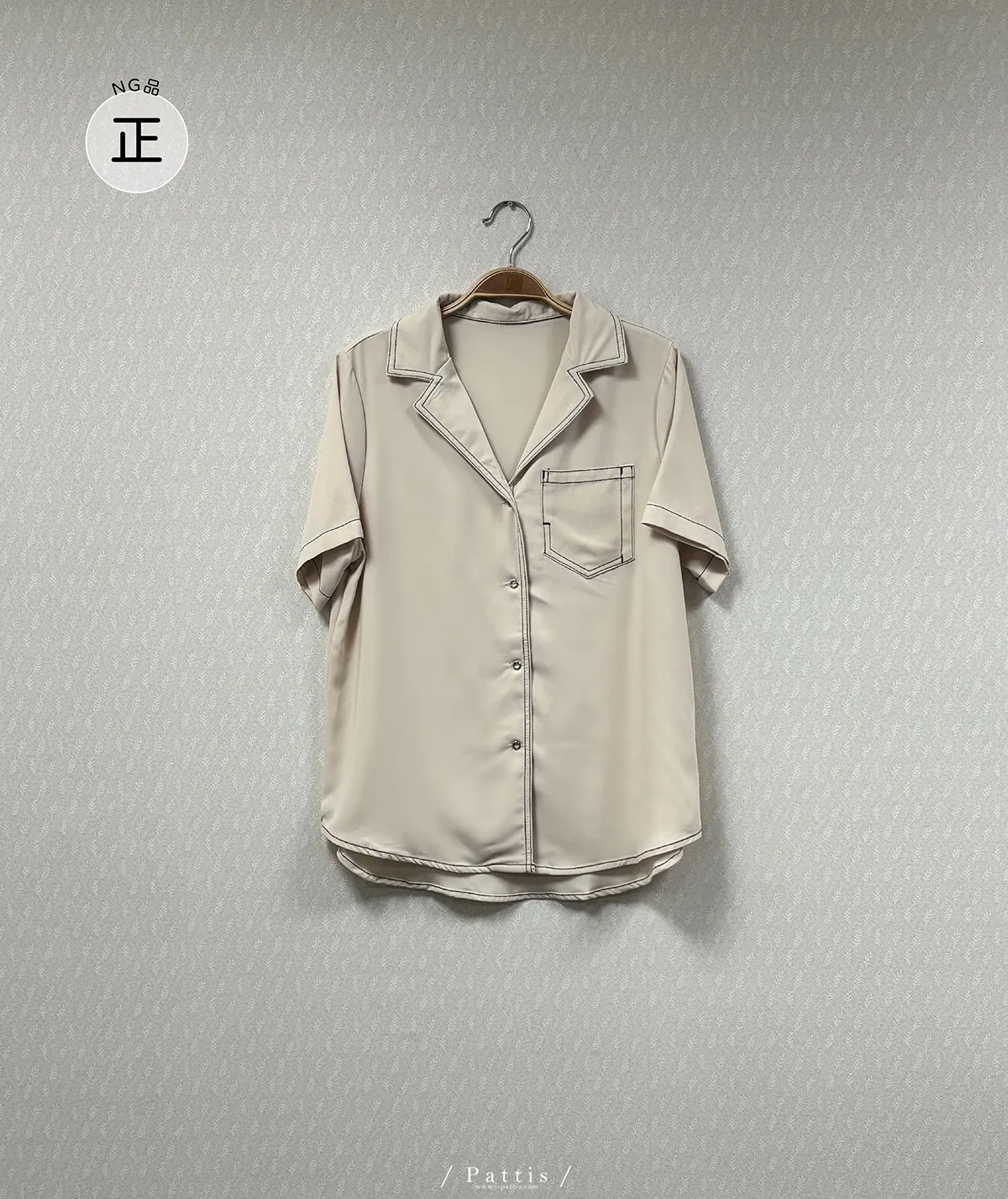 / NG品 /絲滑布料口袋襯衫(杏)