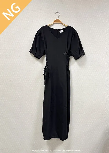 / NG品 / 側綁帶縮腰洋裝(黑)