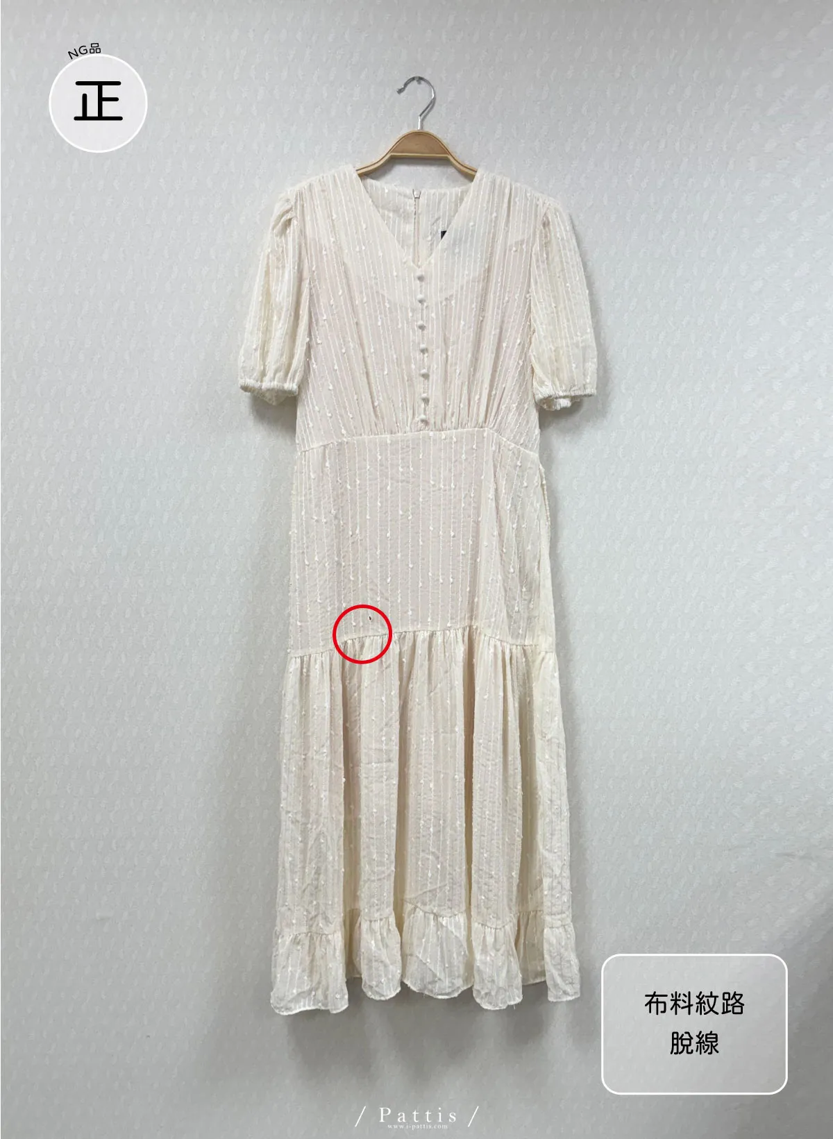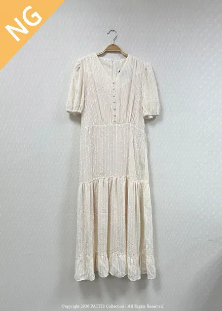 / NG品 / V領珠光線條洋裝(米白)