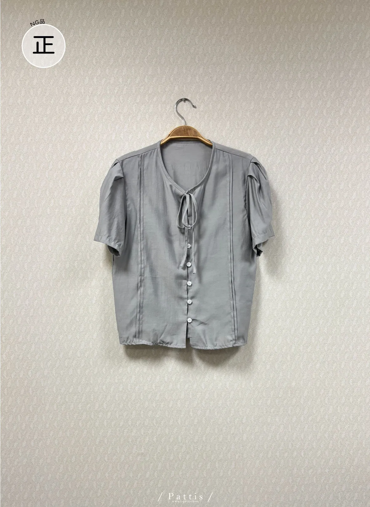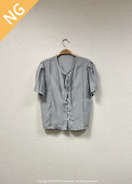 / NG品 /小澎袖領口綁帶短版上衣(灰藍)