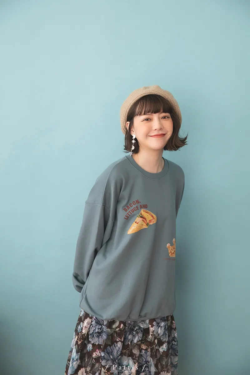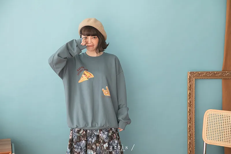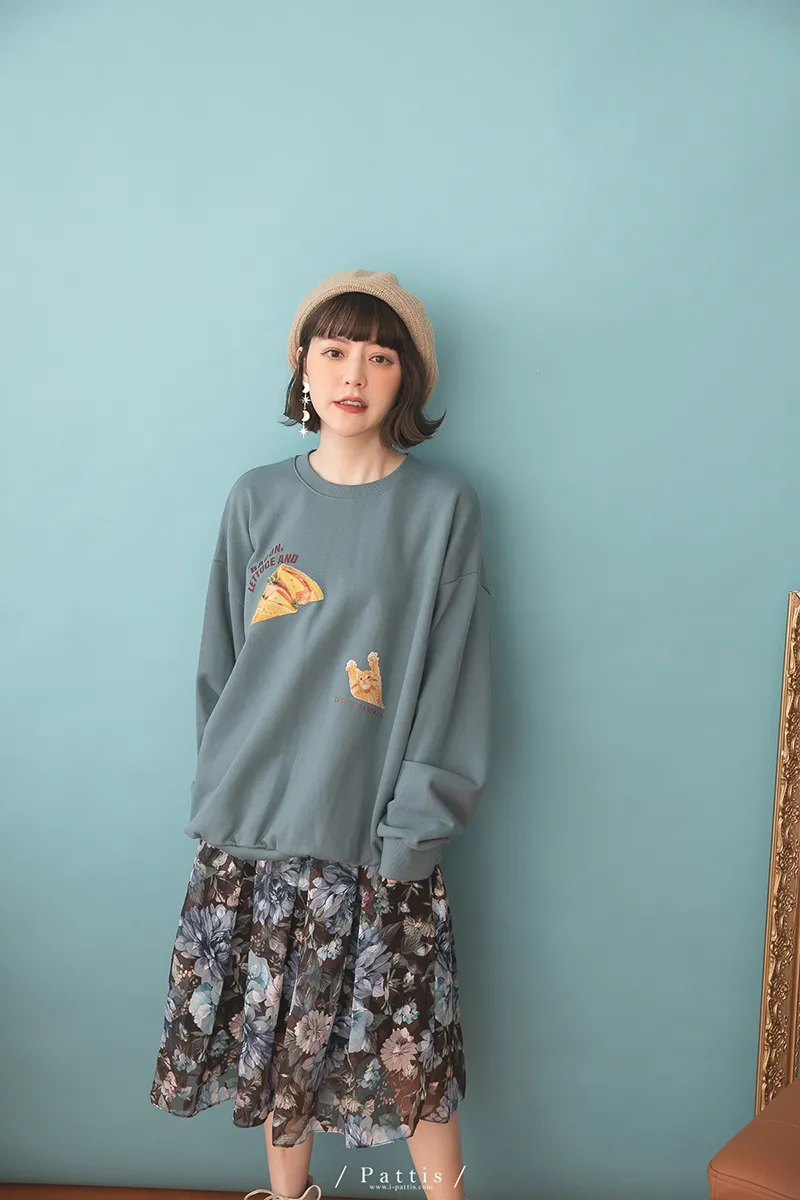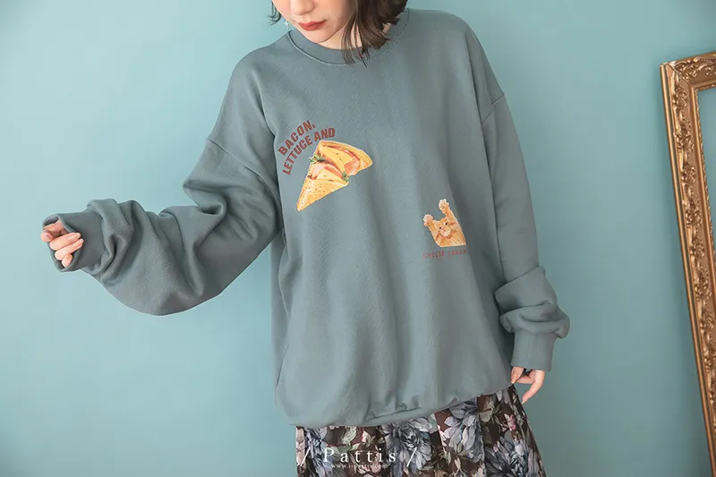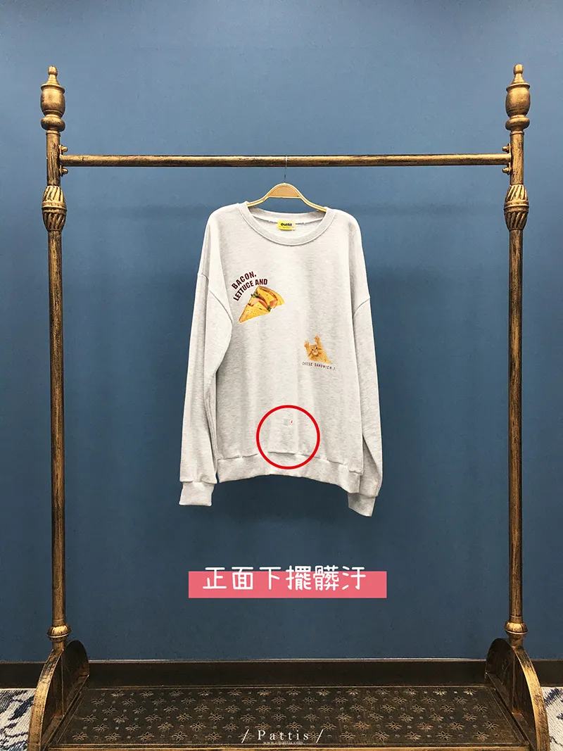 / NG品&未上架色 / 請讓我咬一口 | 貓咪披薩寬鬆圓領上衣(白灰)