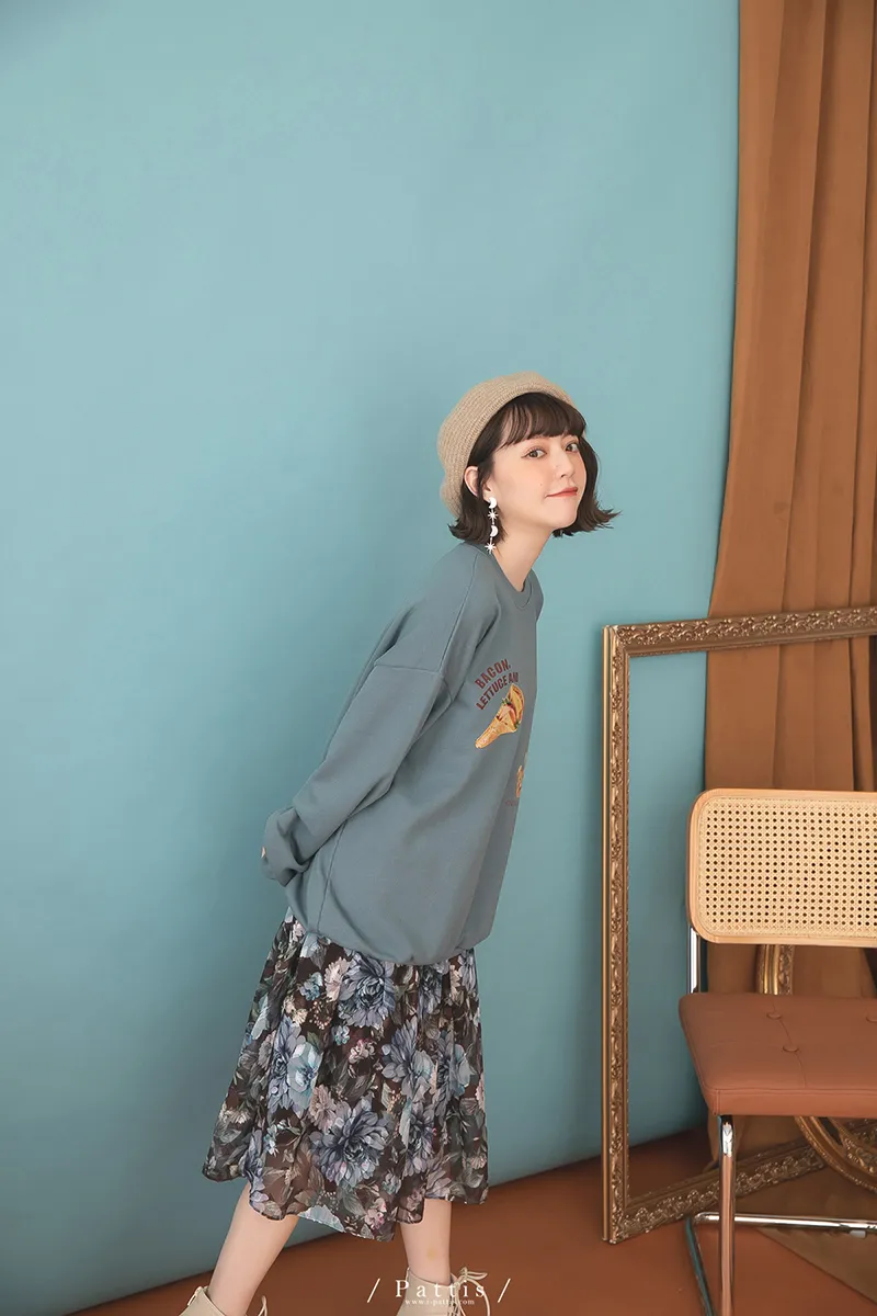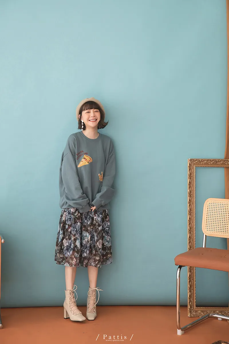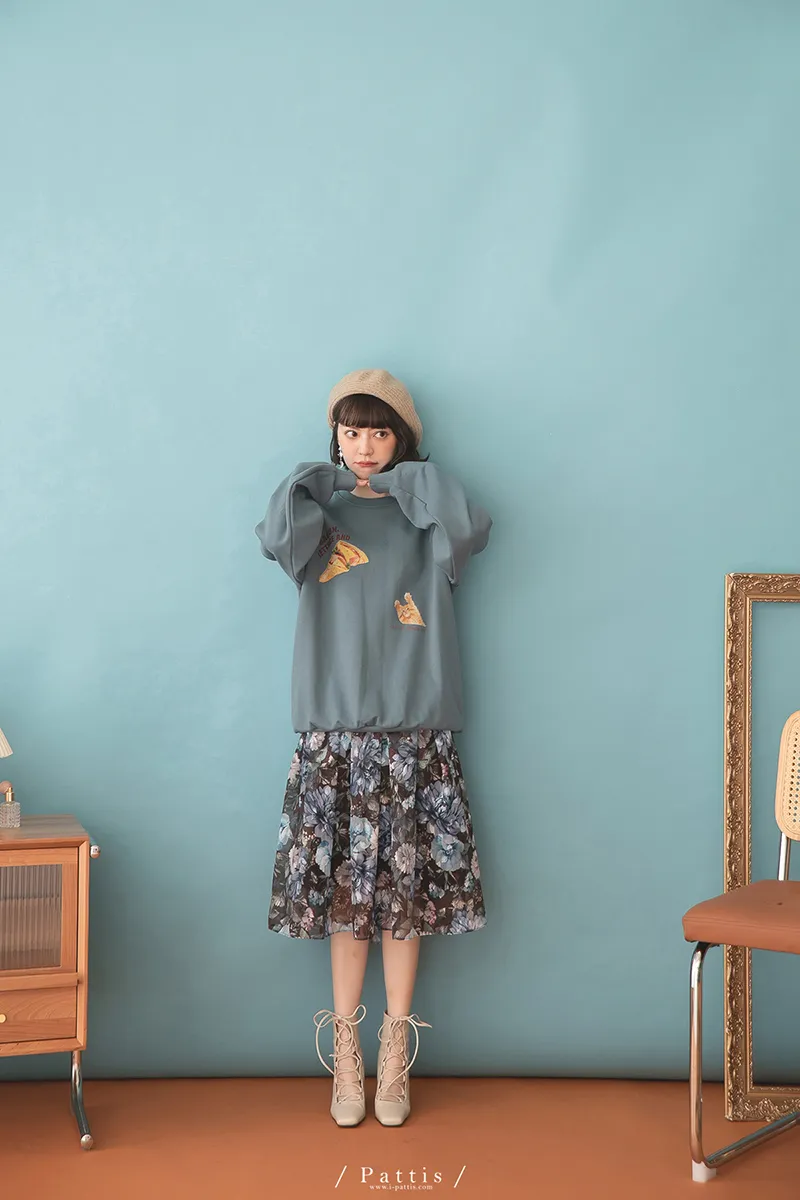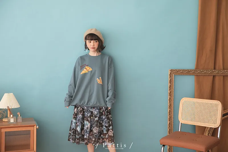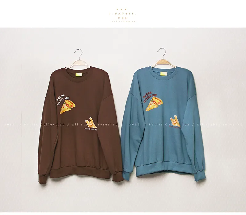 / NG品&未上架色 / 請讓我咬一口 | 貓咪披薩寬鬆圓領上衣(白灰)