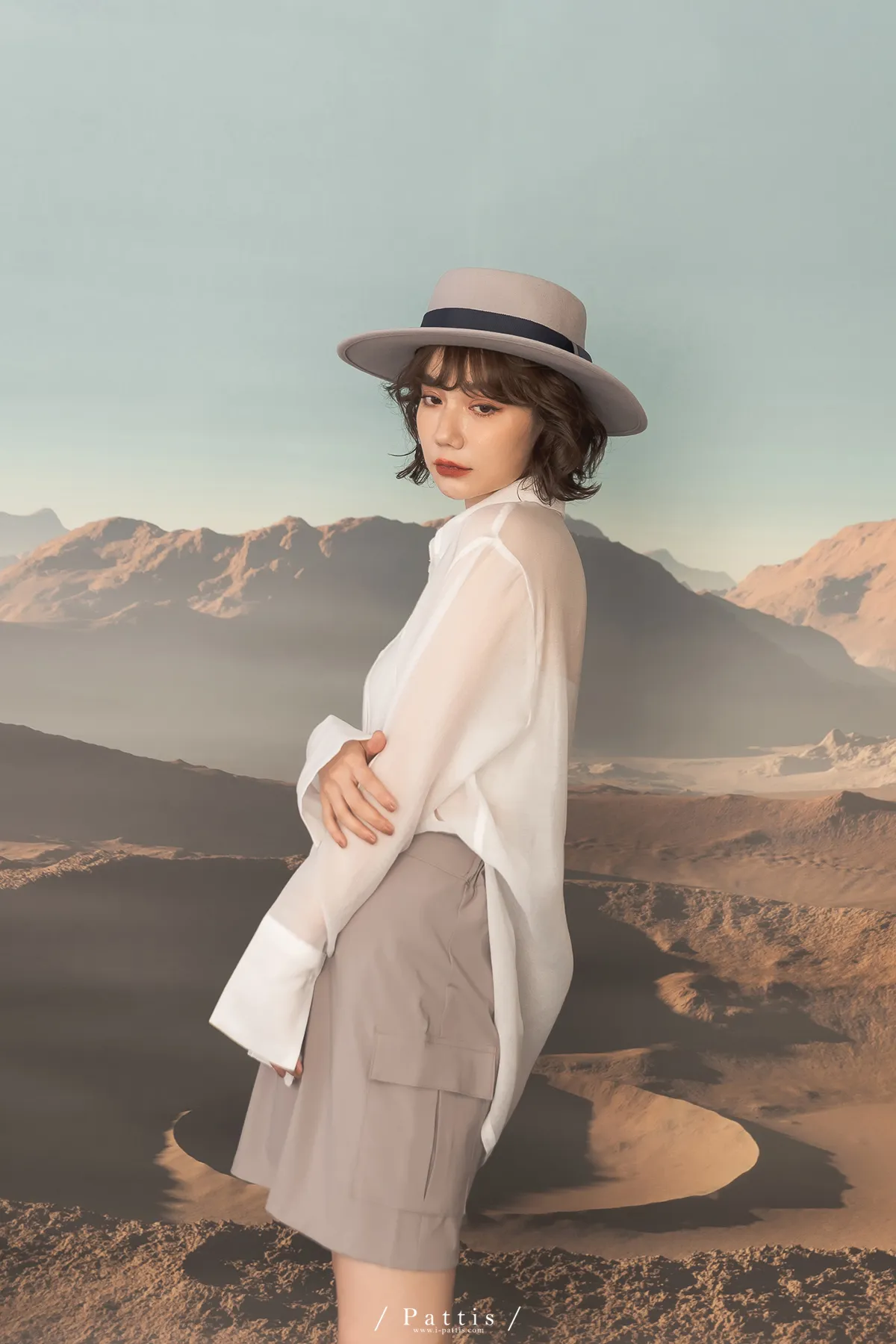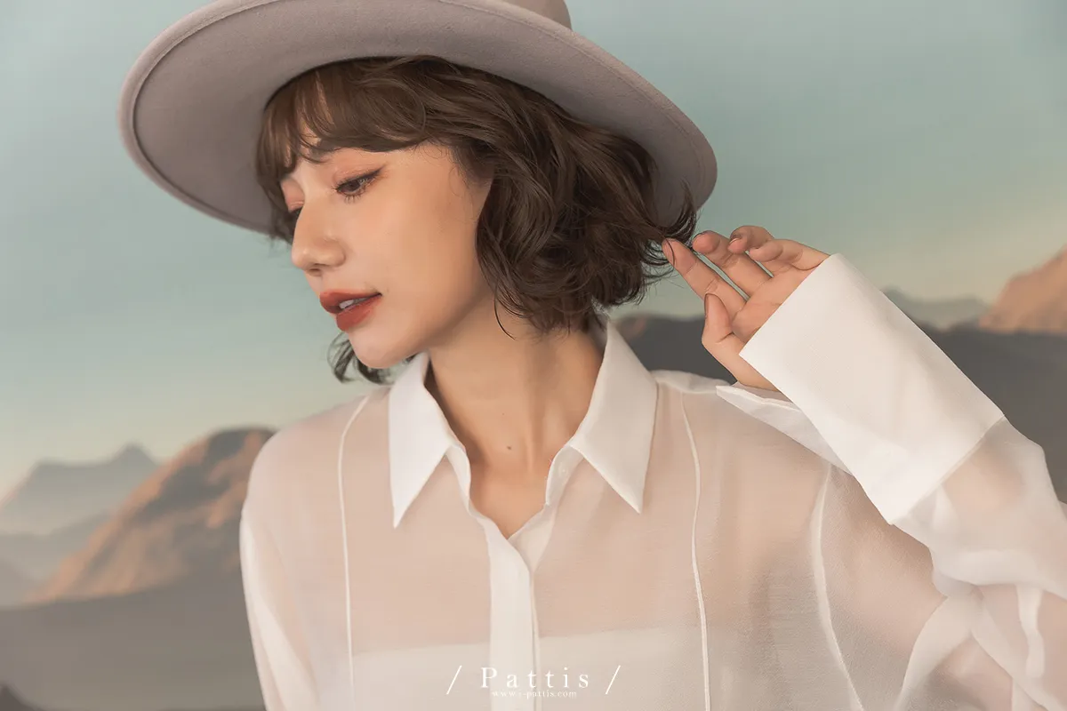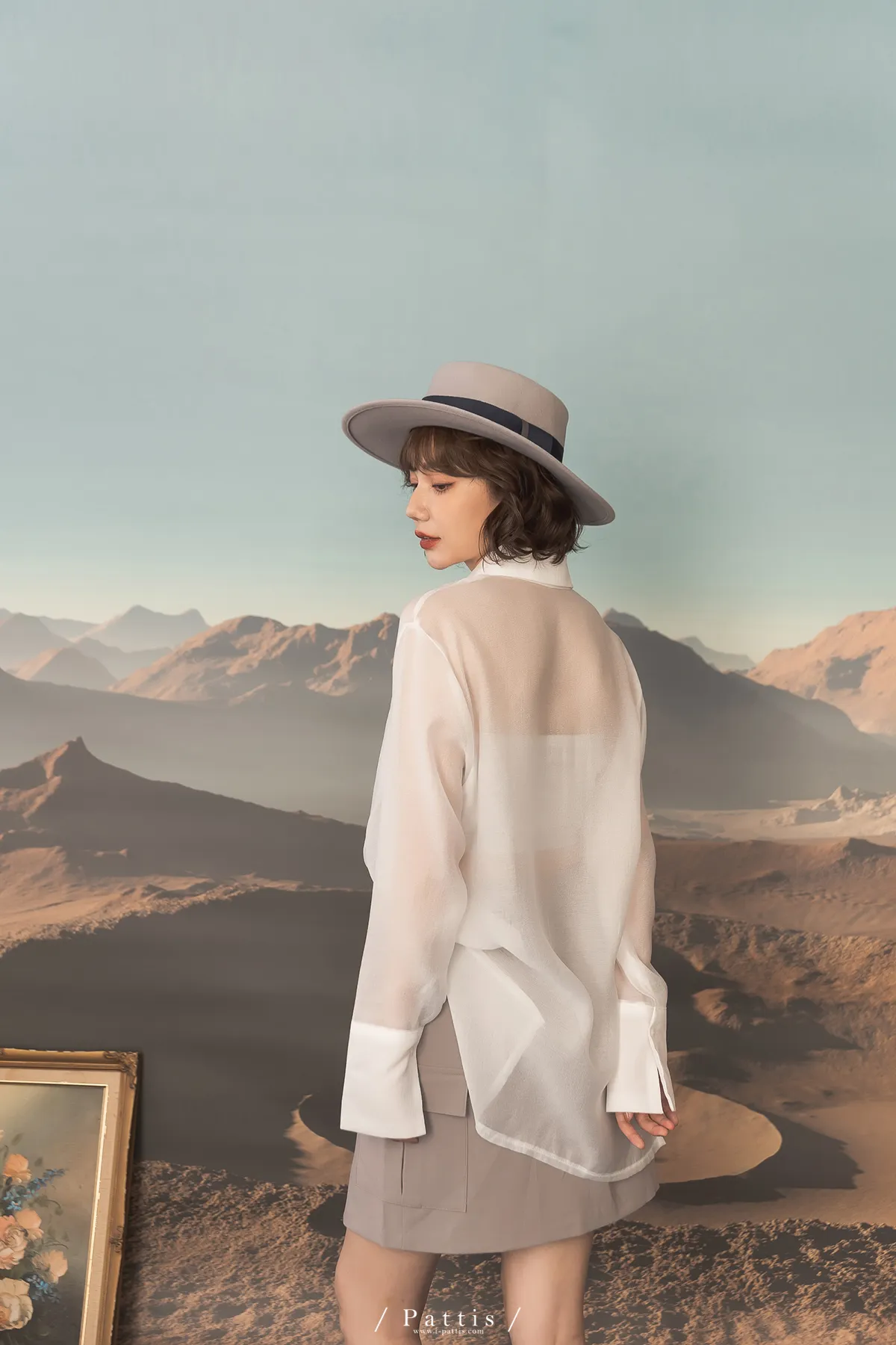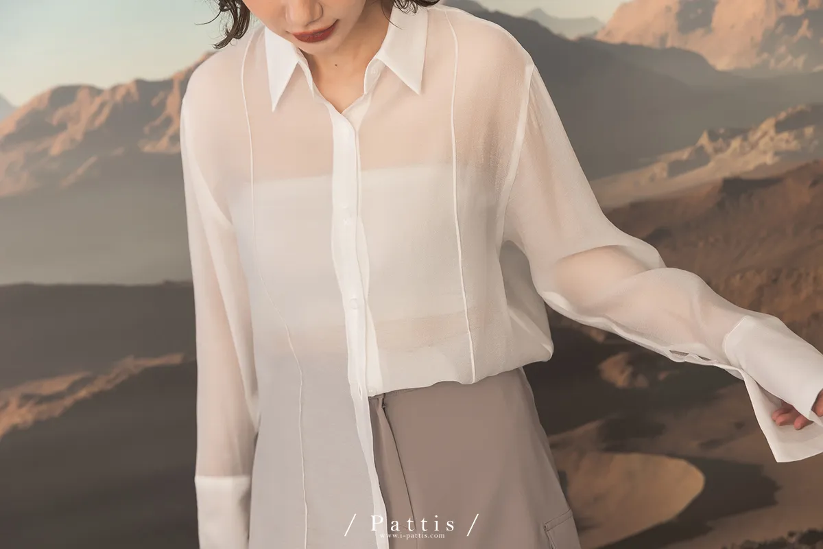 極簡函數值 | 透肌壓摺長版襯衫(白)