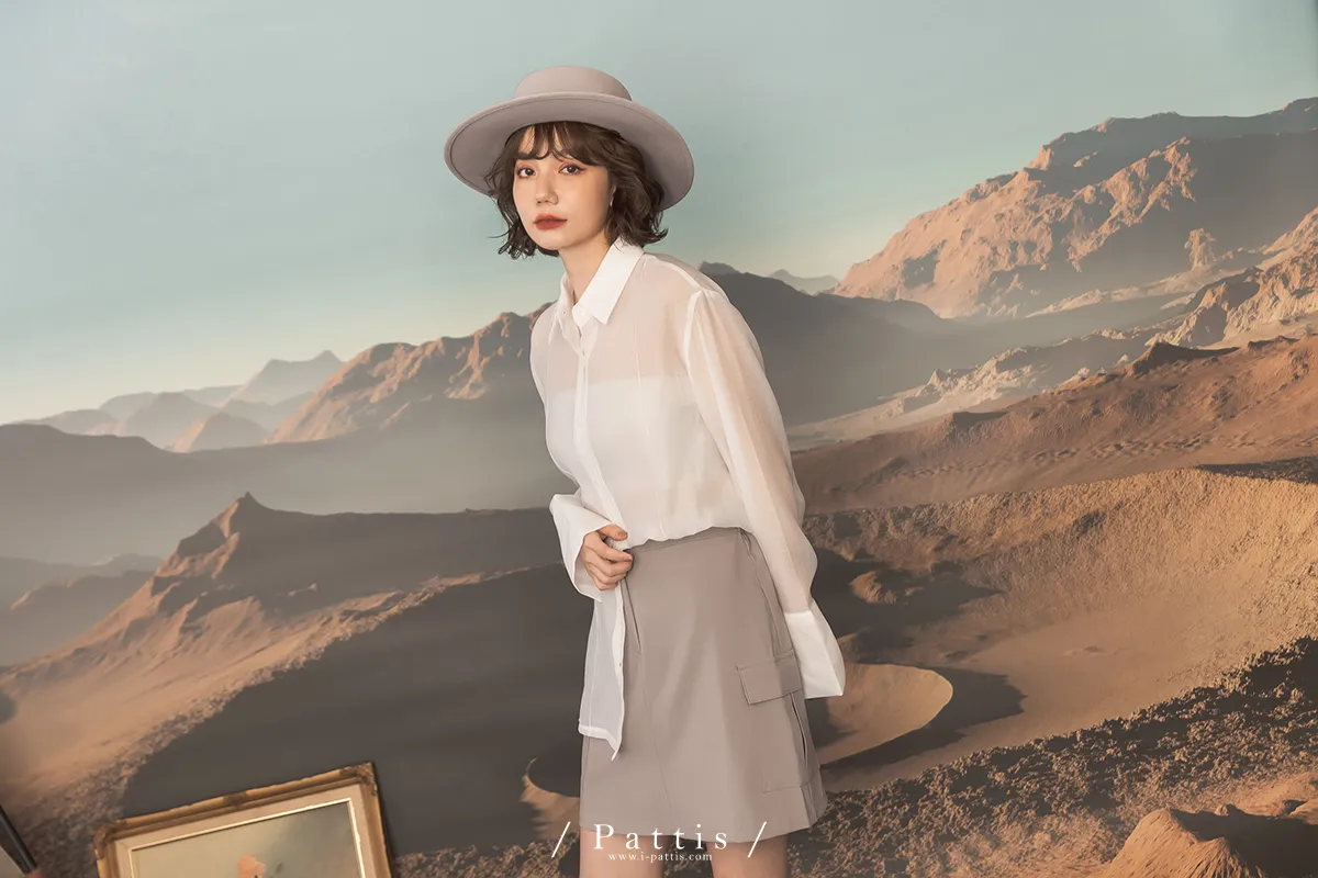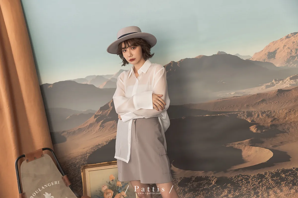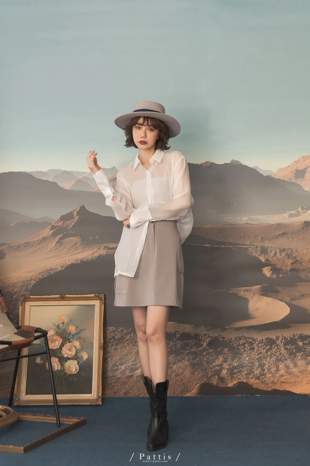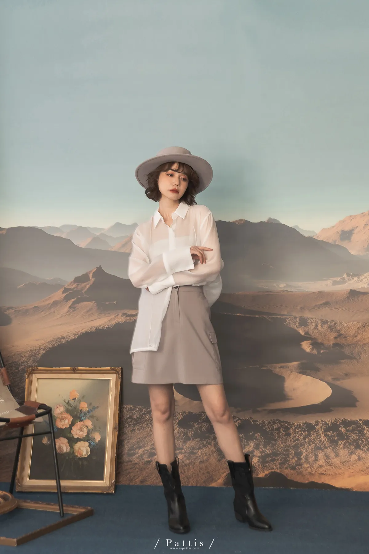 極簡函數值 | 透肌壓摺長版襯衫(白)