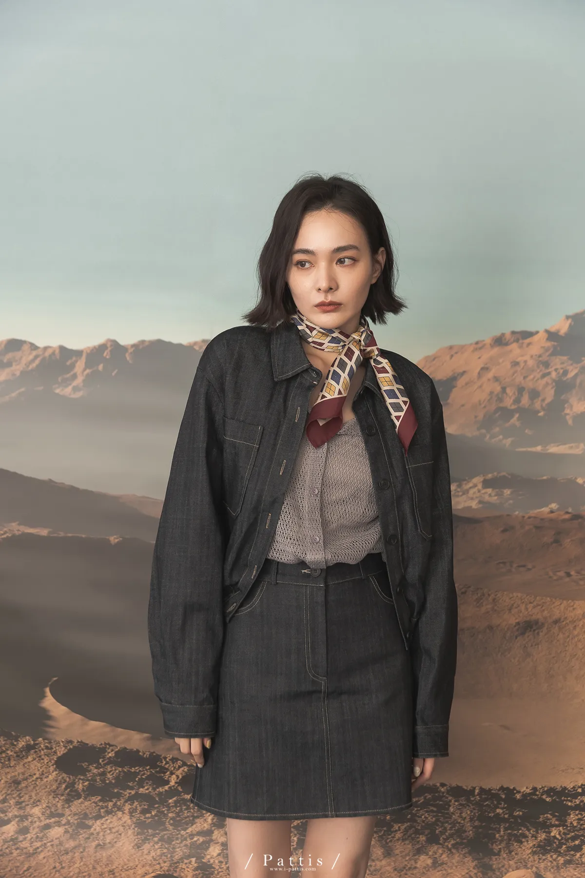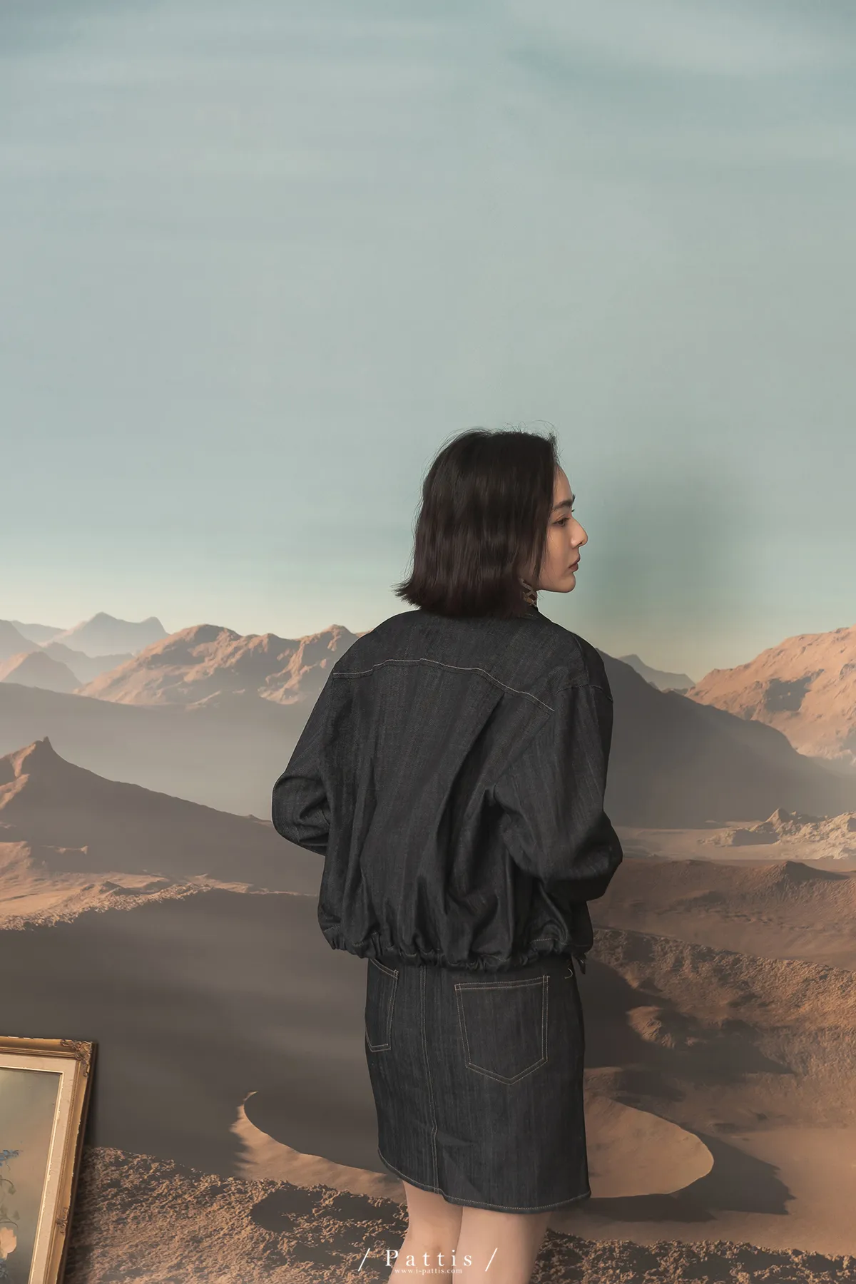 (現貨-外套)深愛的海王星濾鏡|-可分售-車線縮腰丹寧外套+短裙set組(單一色)
