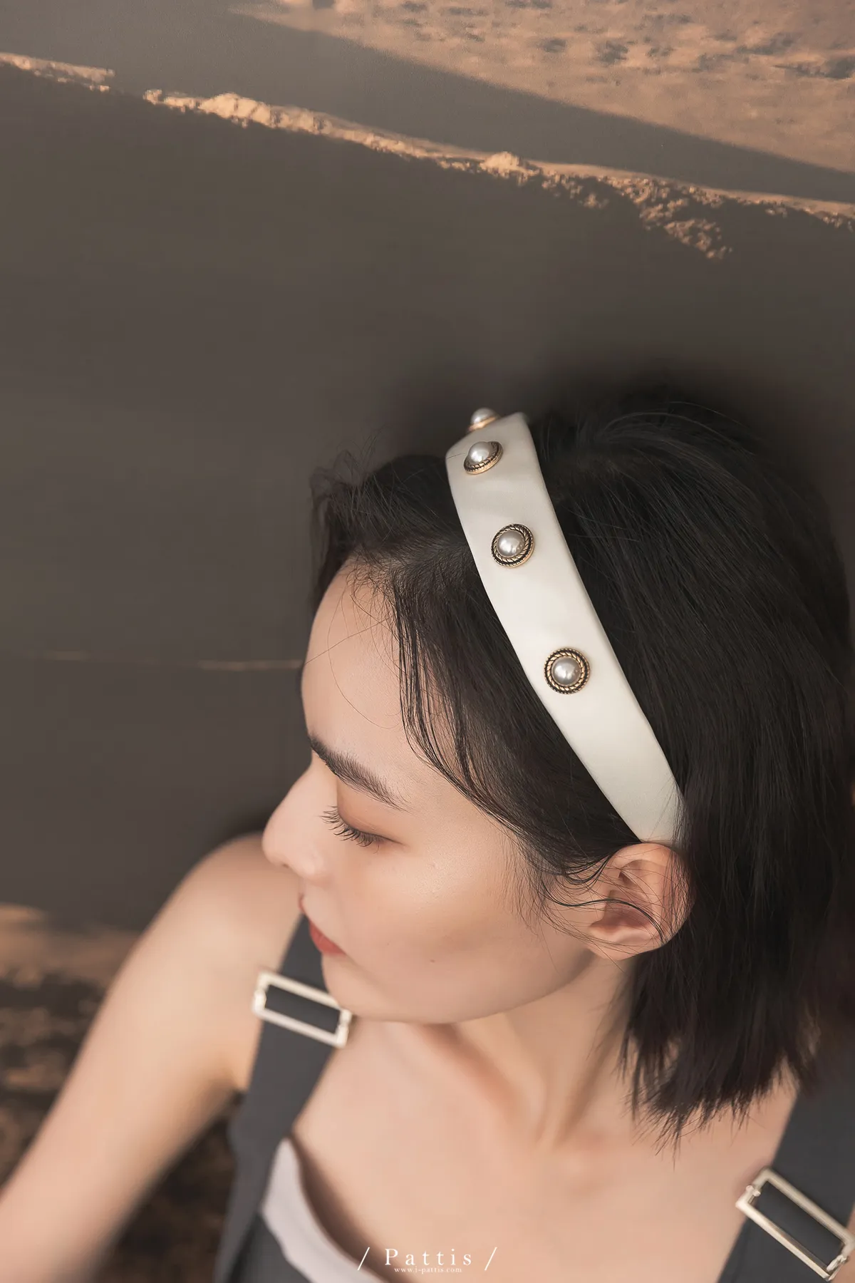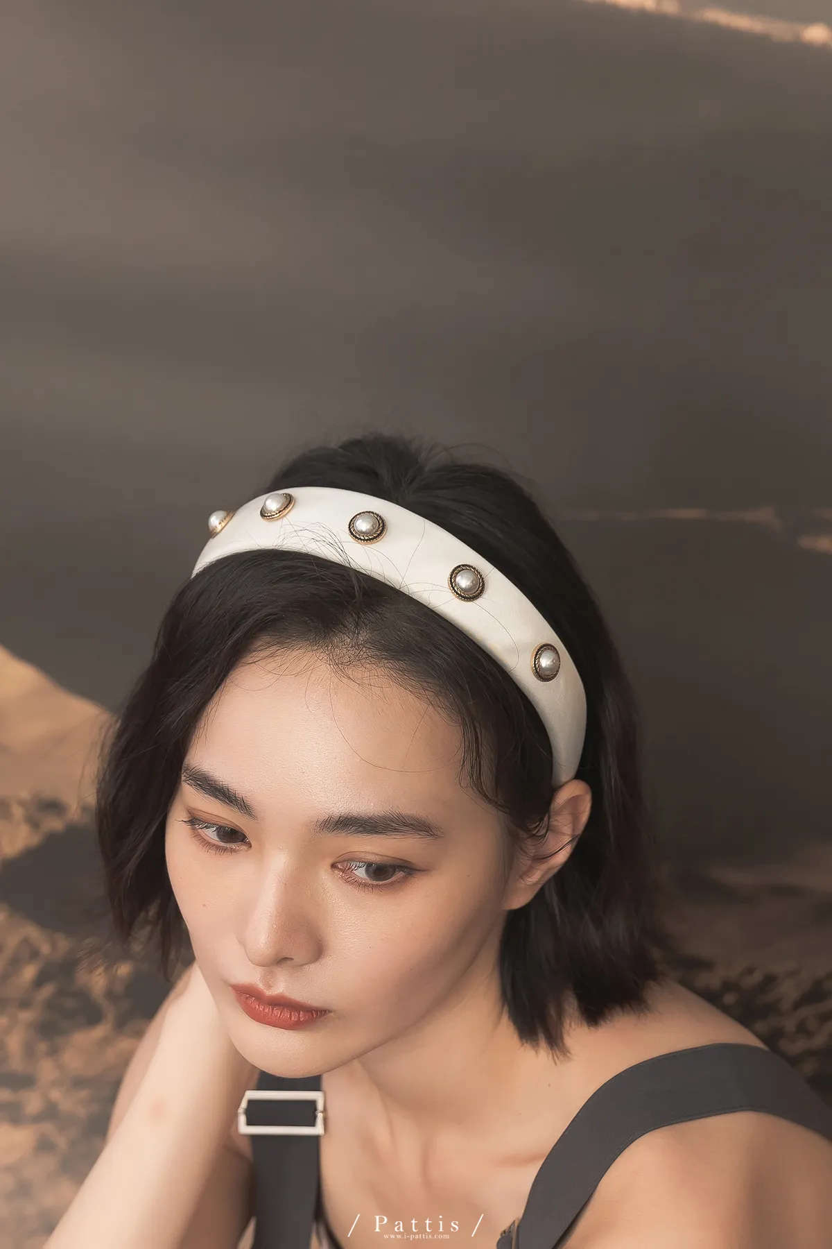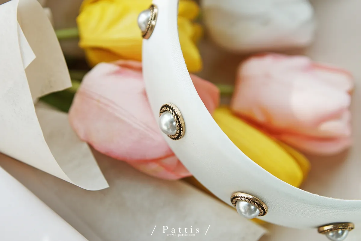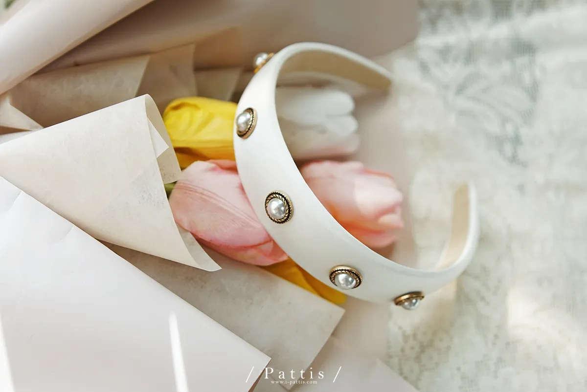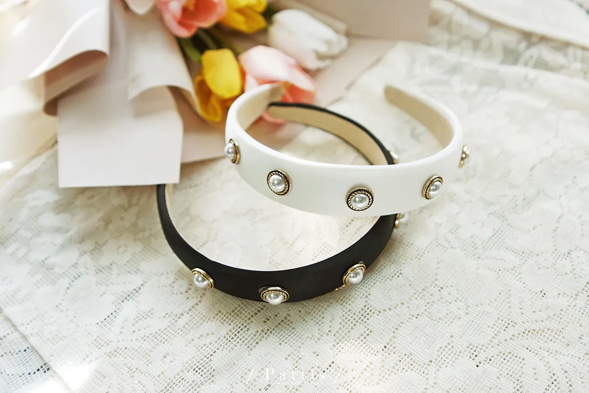 微笑角度 | 綴雕花珍珠澎澎髮箍(白/黑)