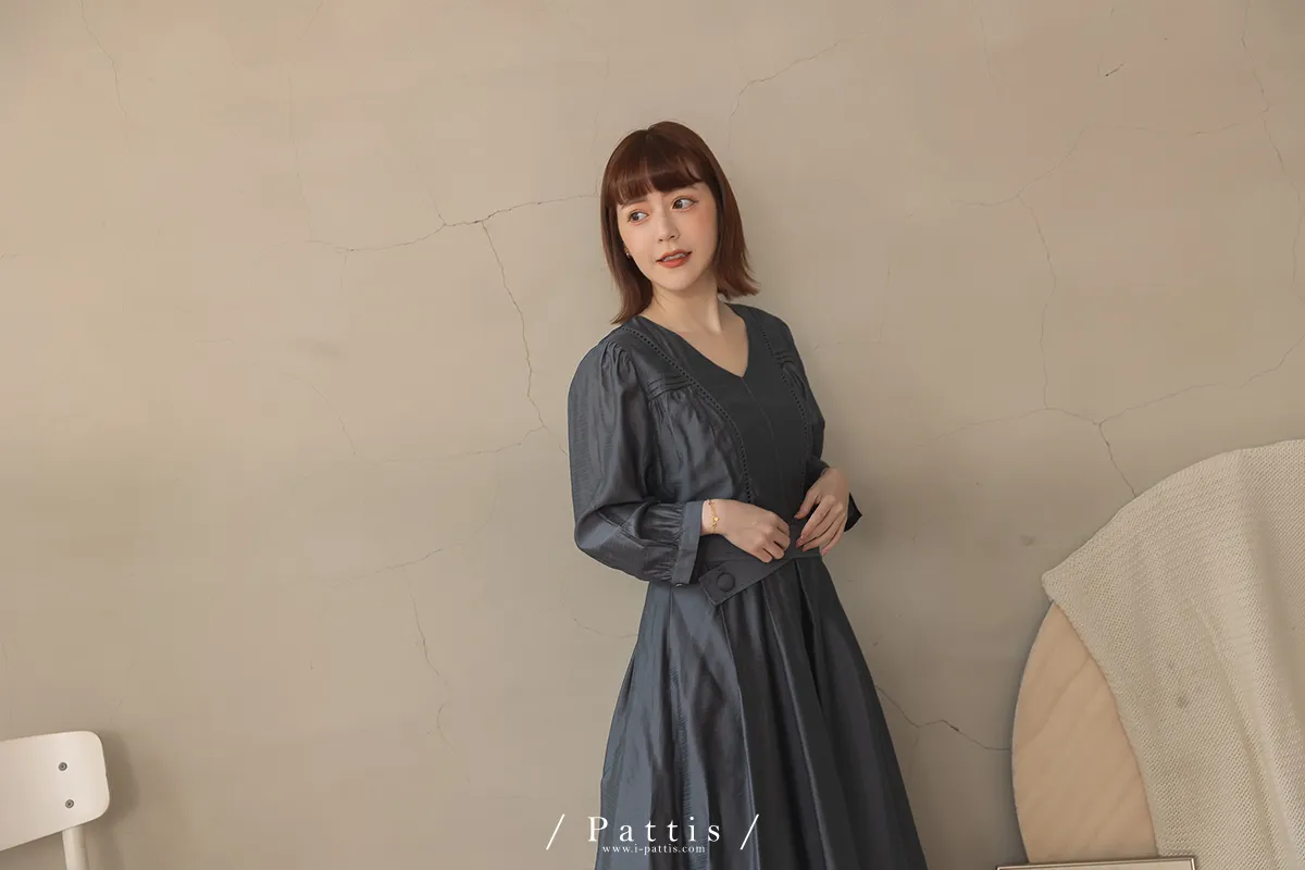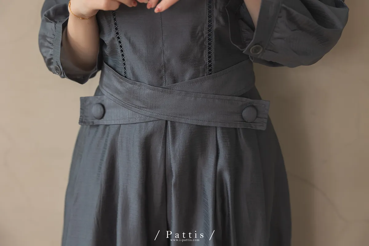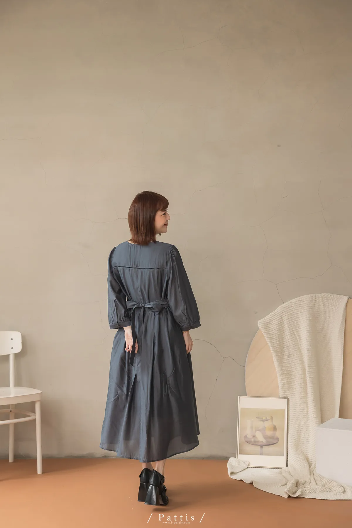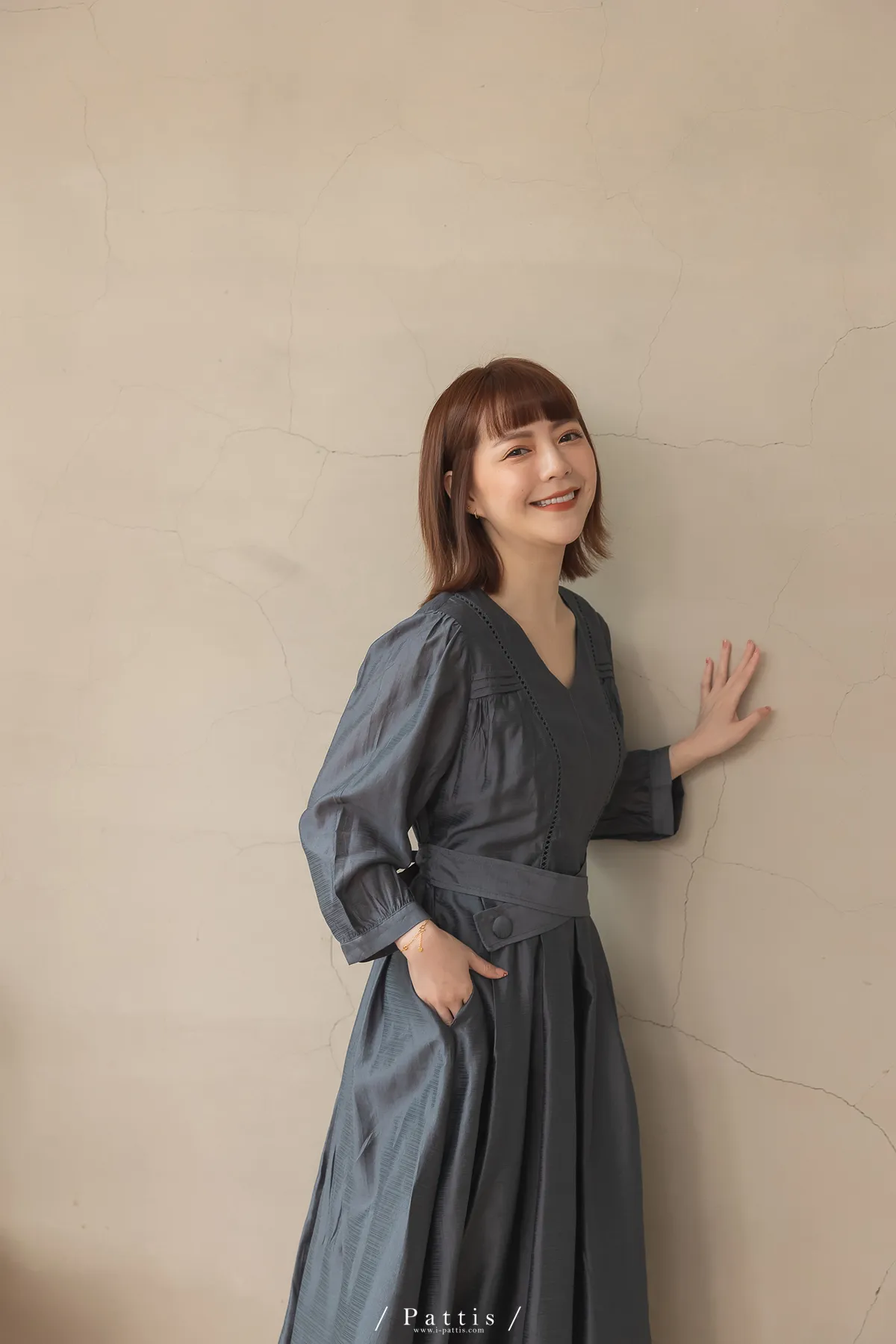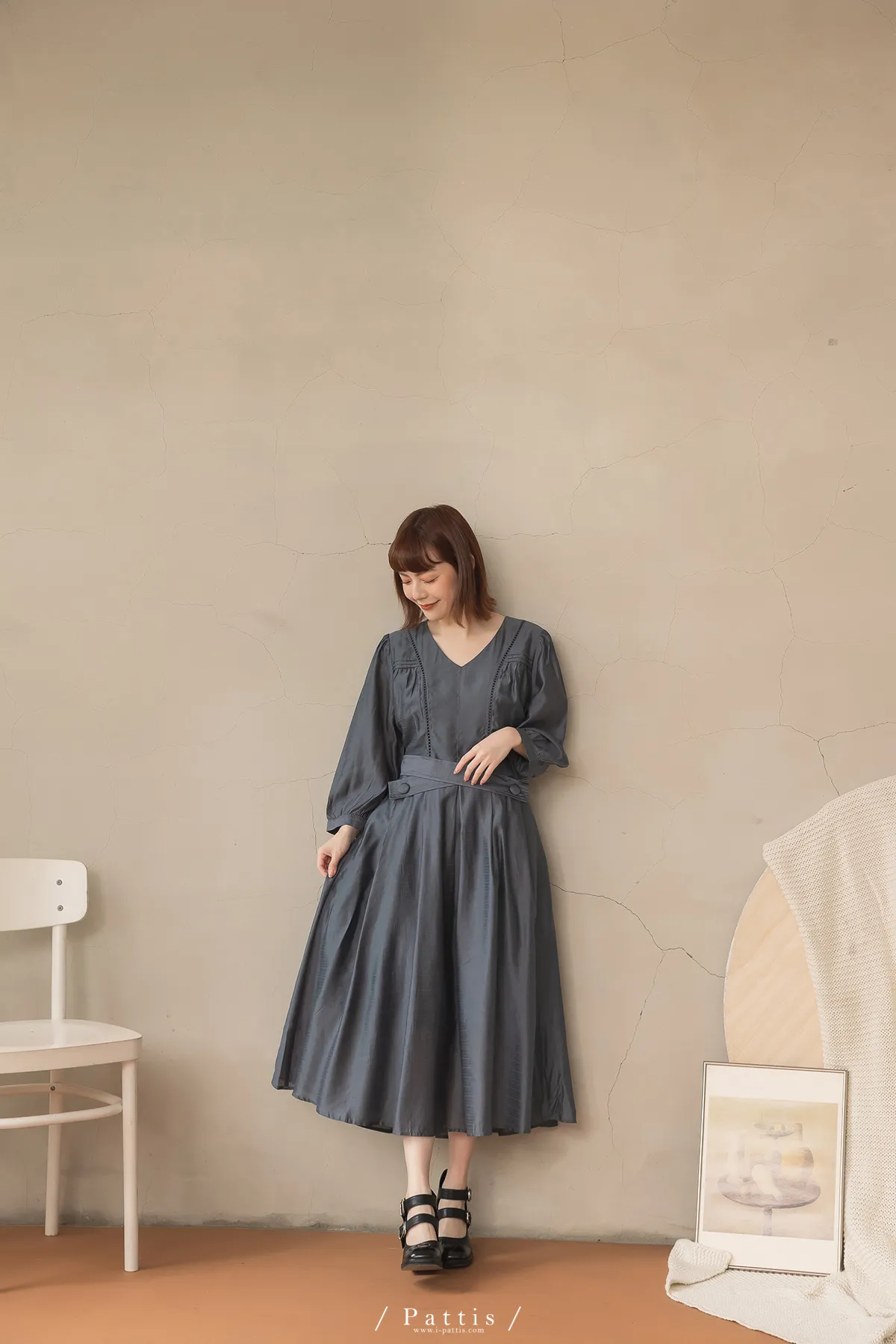 偽裝偷心賊 | 鋼琴絲紋縷空蕾絲交叉綁帶洋裝(藍綠)