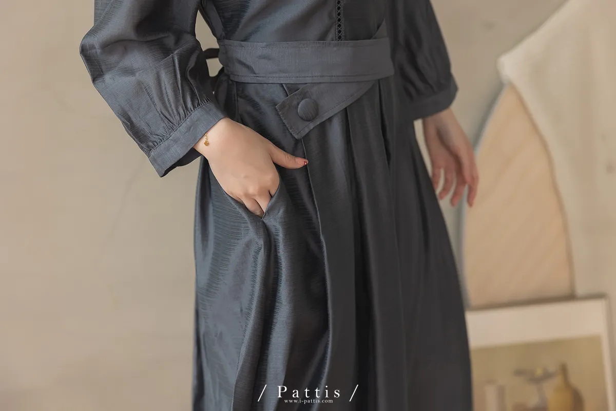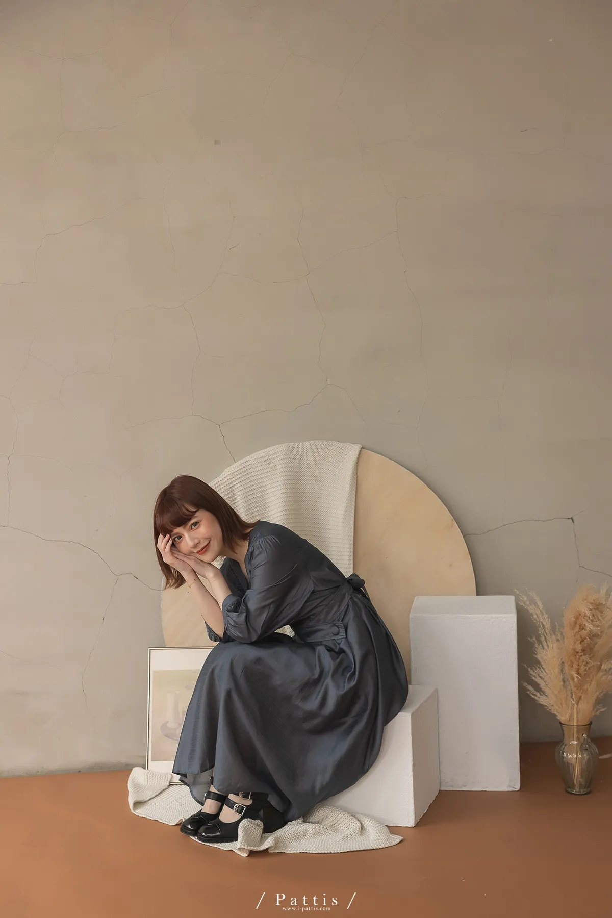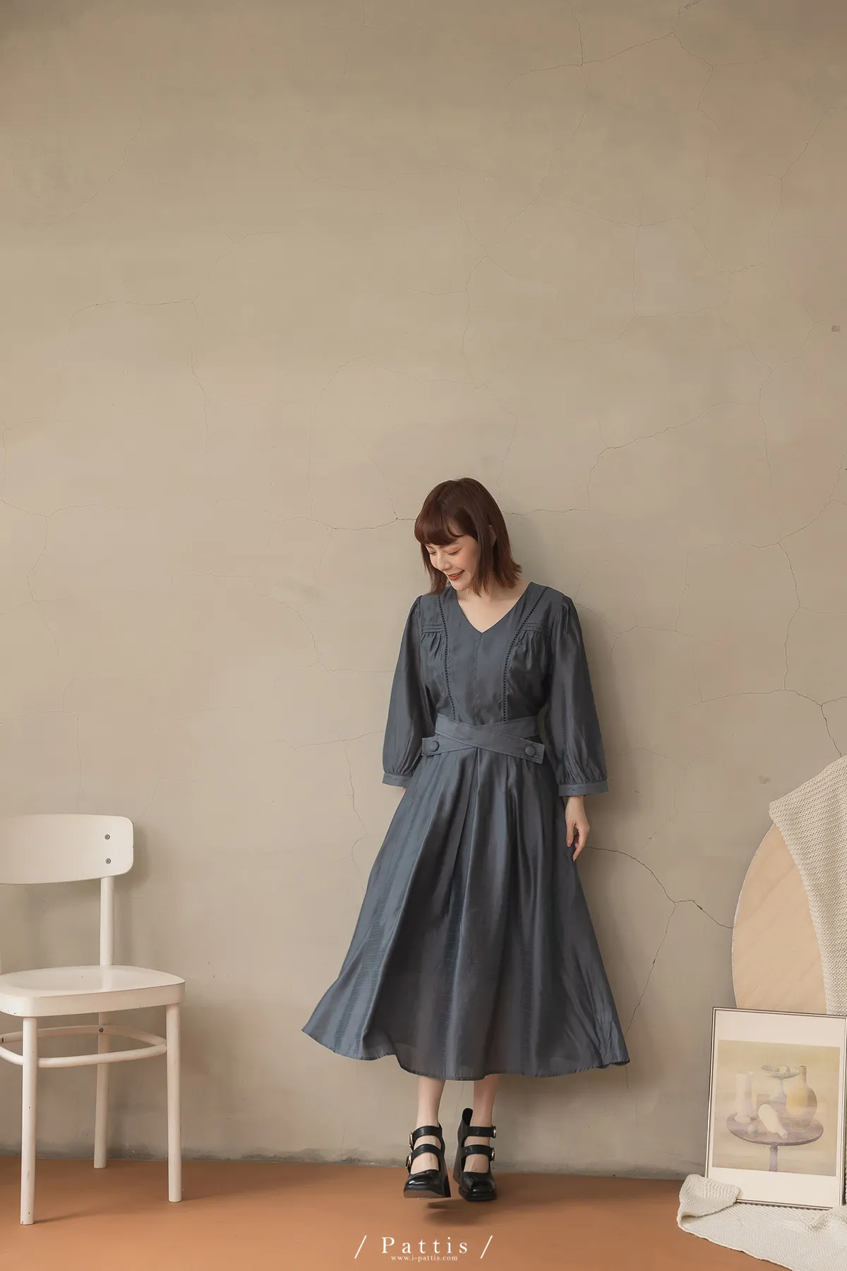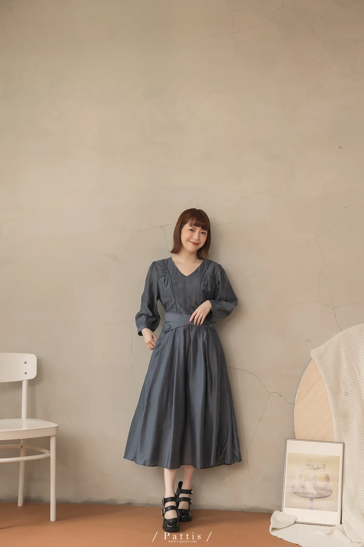 偽裝偷心賊 | 鋼琴絲紋縷空蕾絲交叉綁帶洋裝(藍綠)