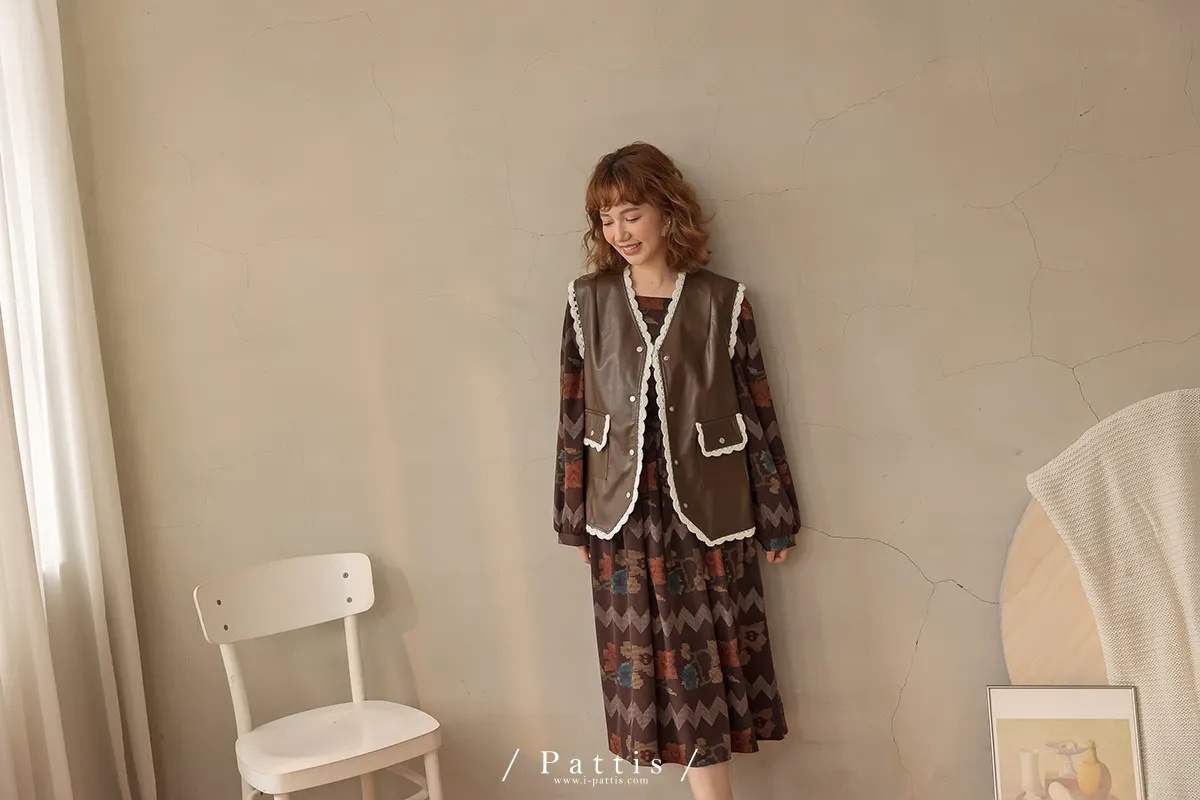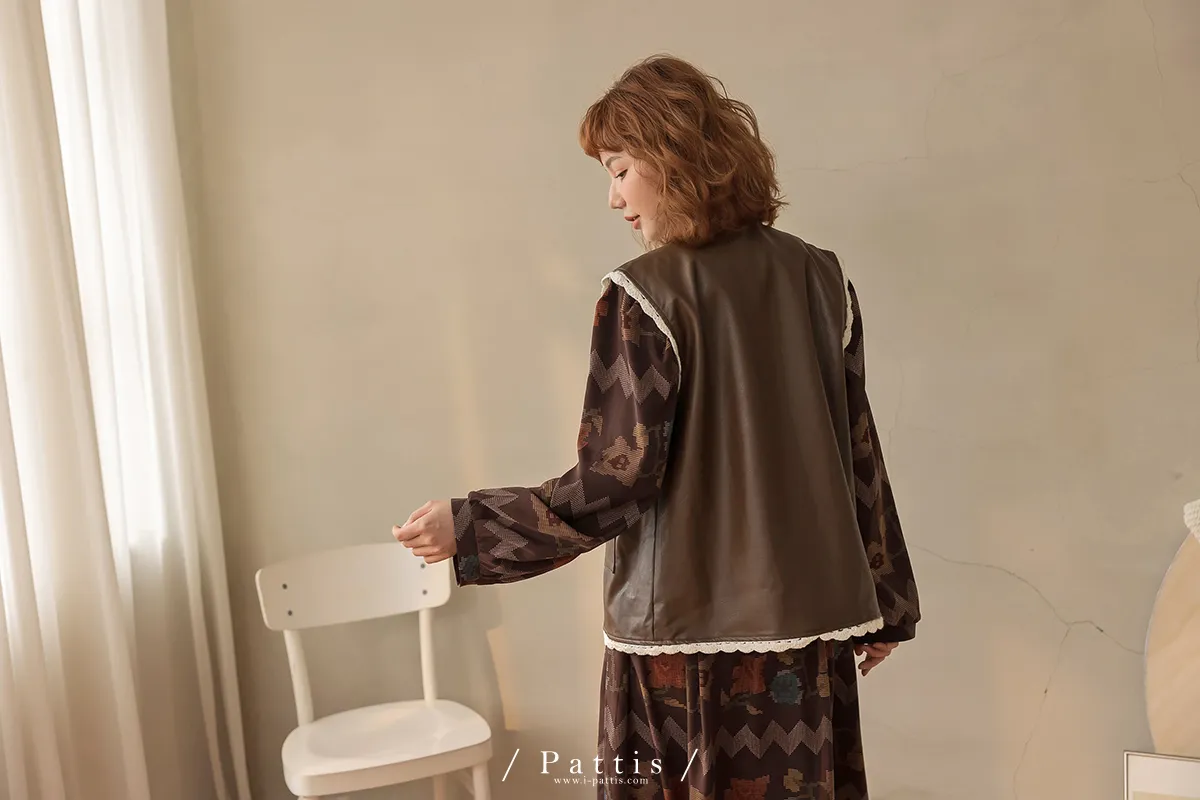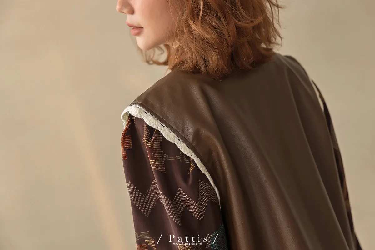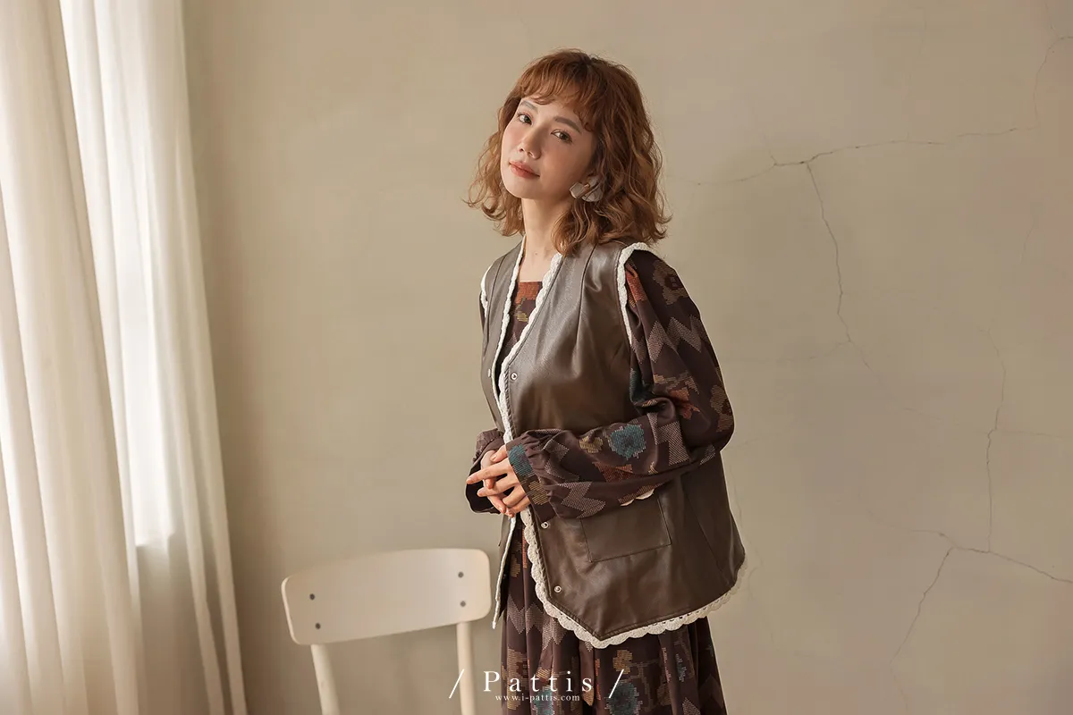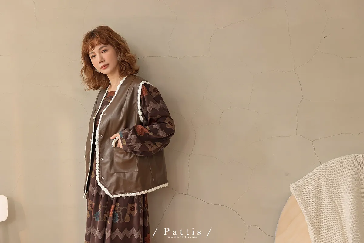 黑巧克力的擠花 | 勾針滾邊口袋皮革背心(咖啡)