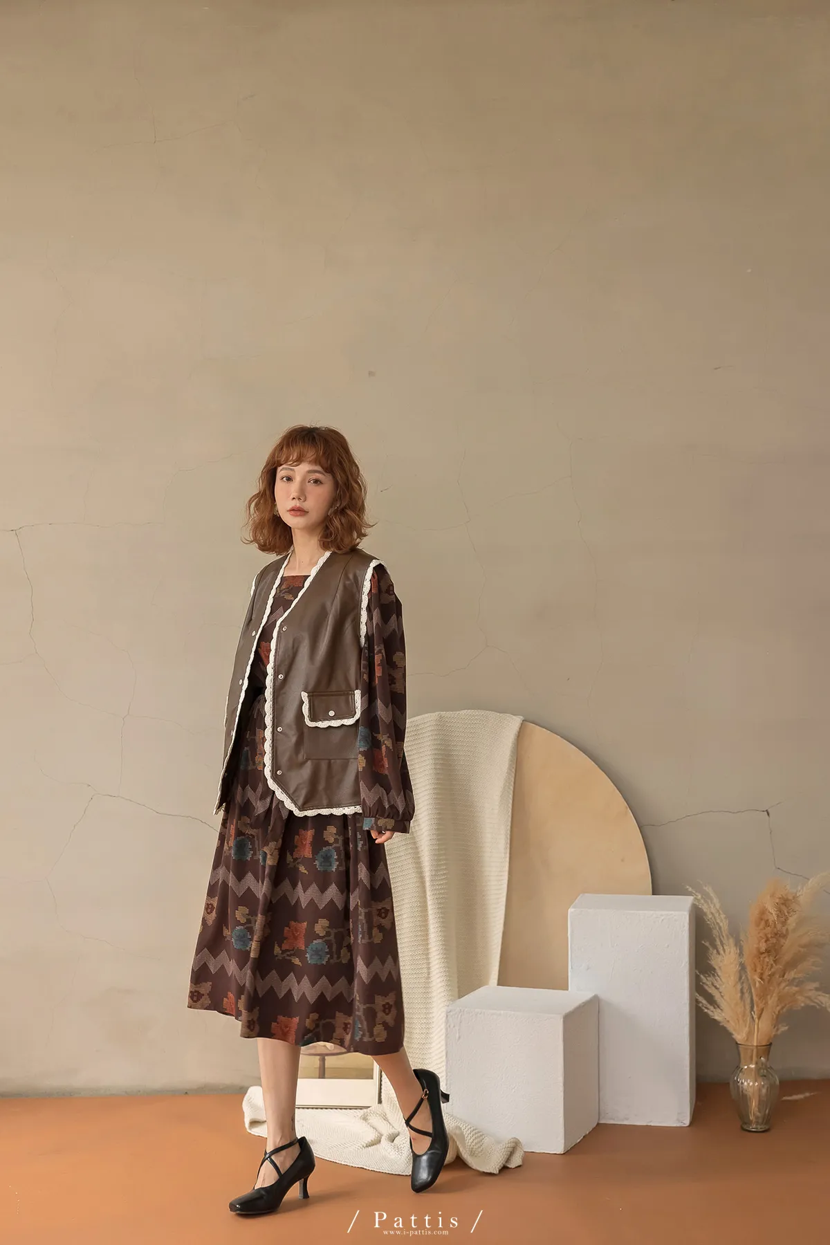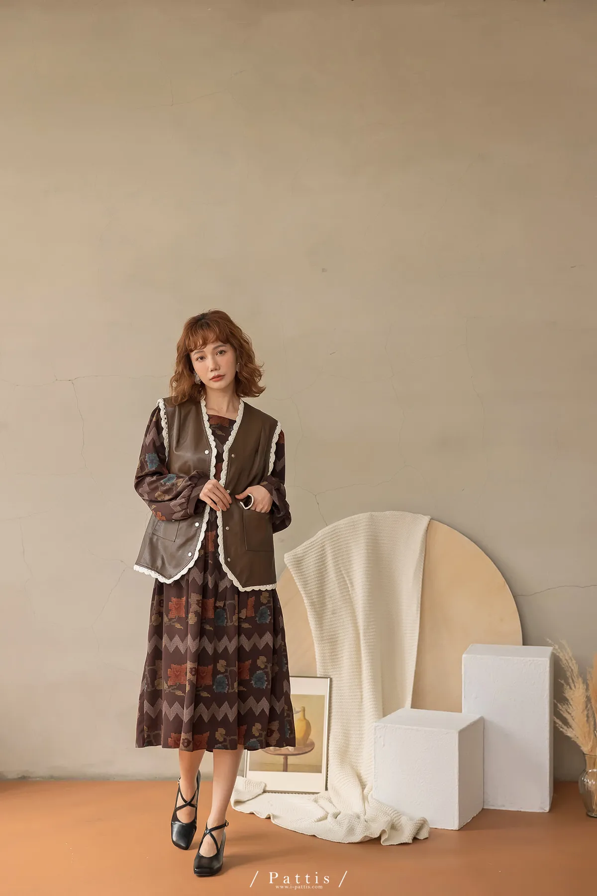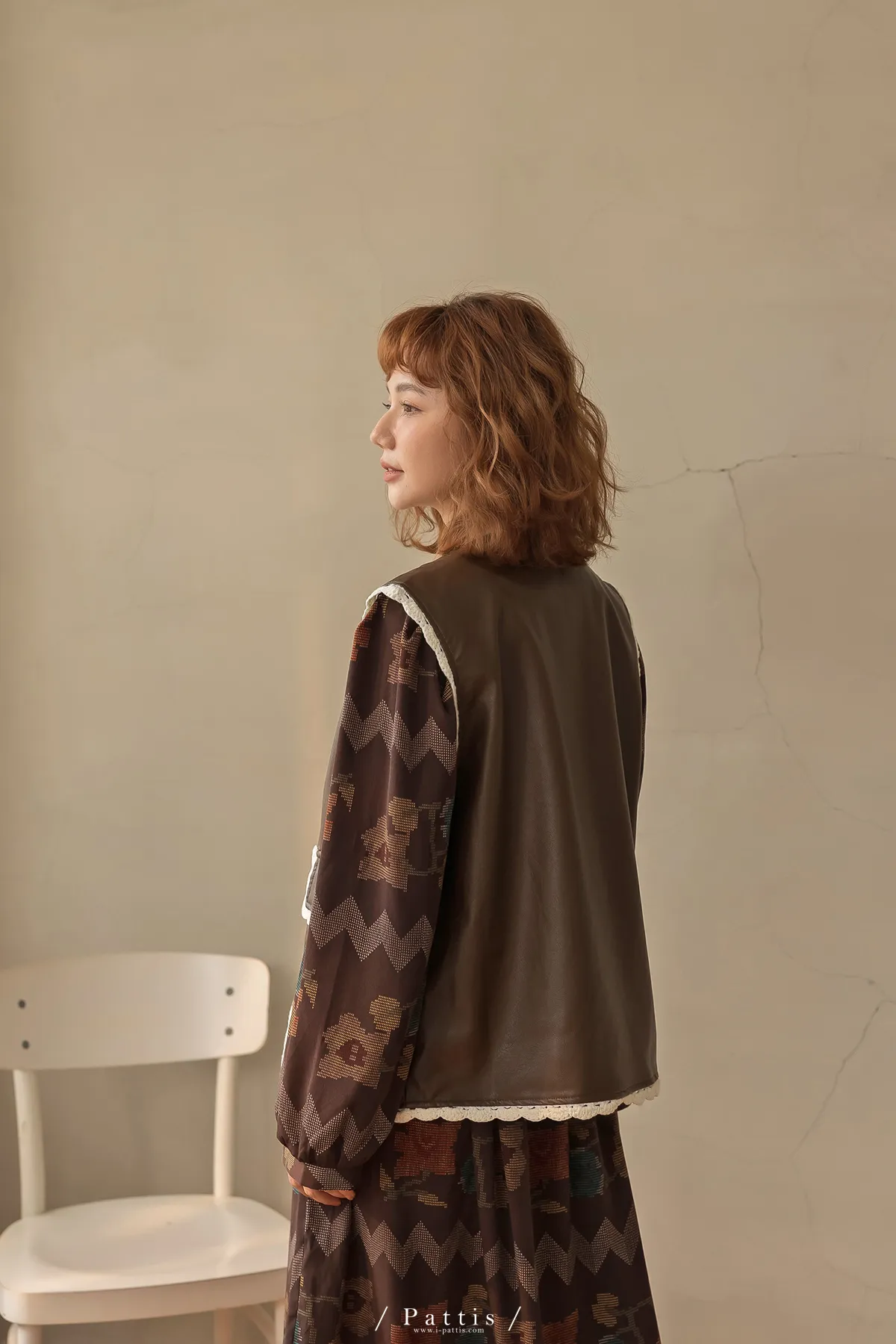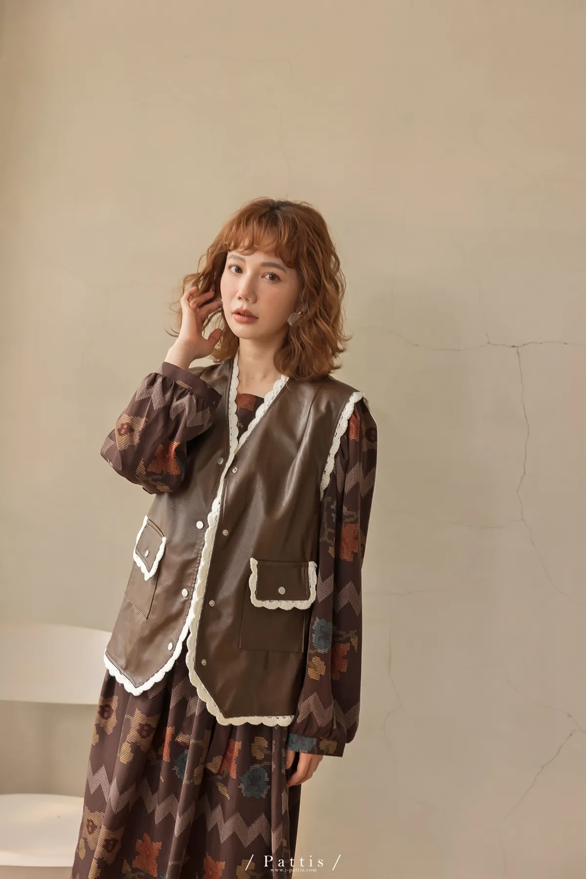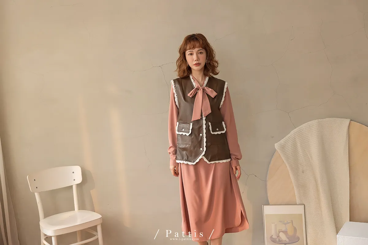 黑巧克力的擠花 | 勾針滾邊口袋皮革背心(咖啡)