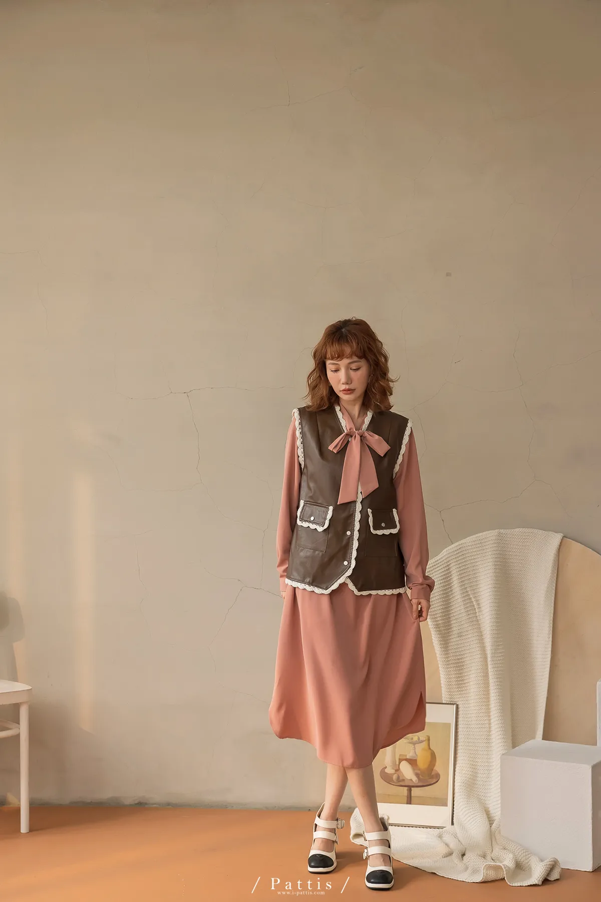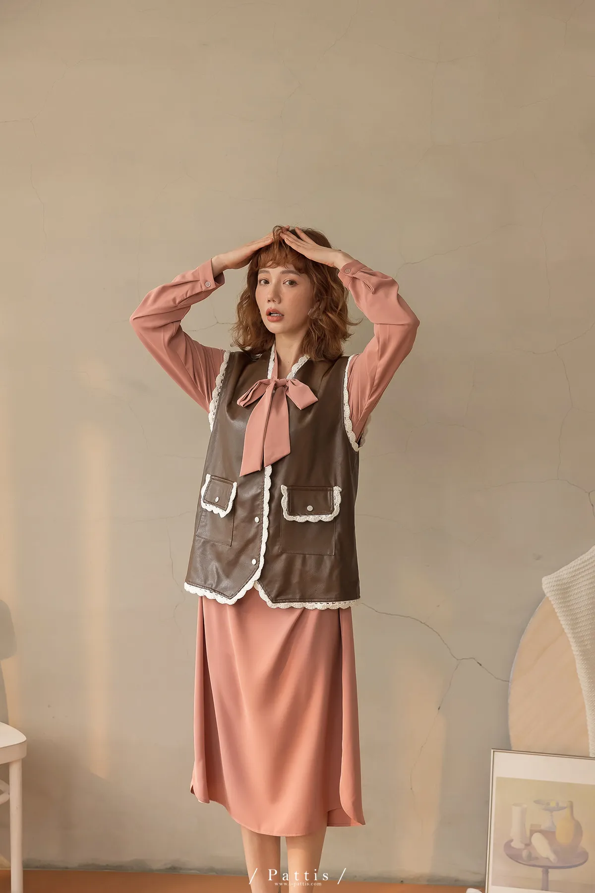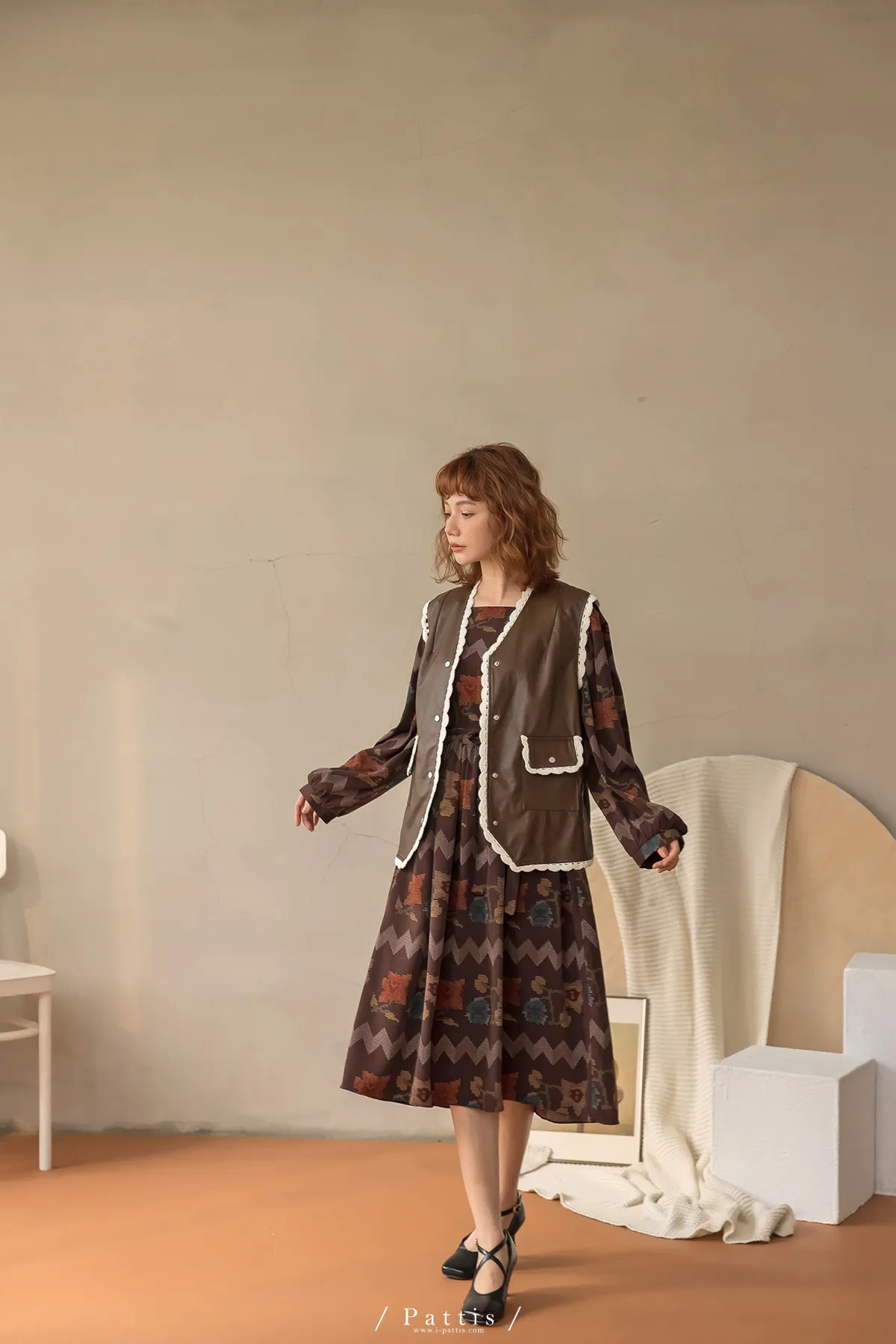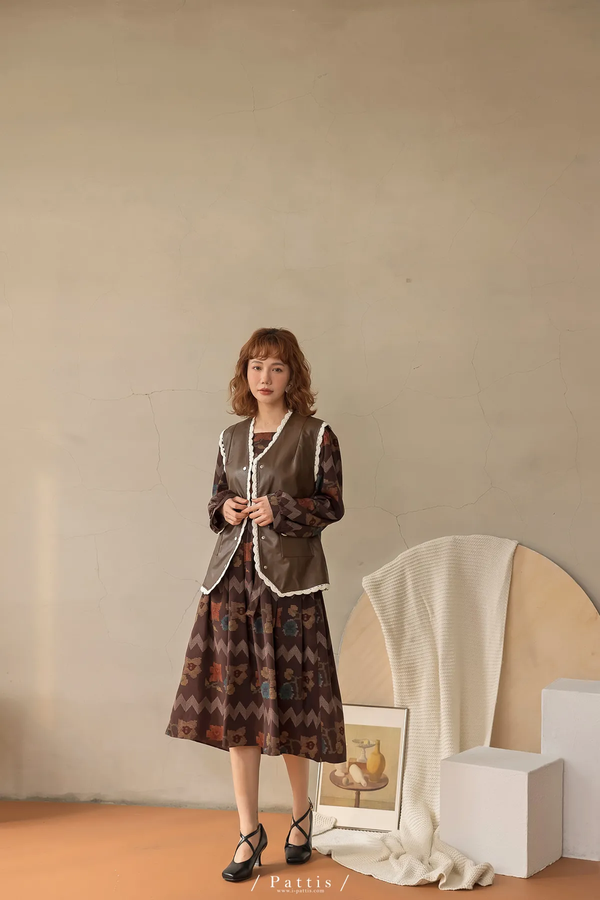 黑巧克力的擠花 | 勾針滾邊口袋皮革背心(咖啡)