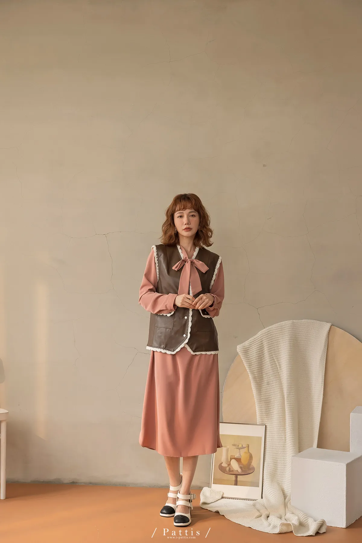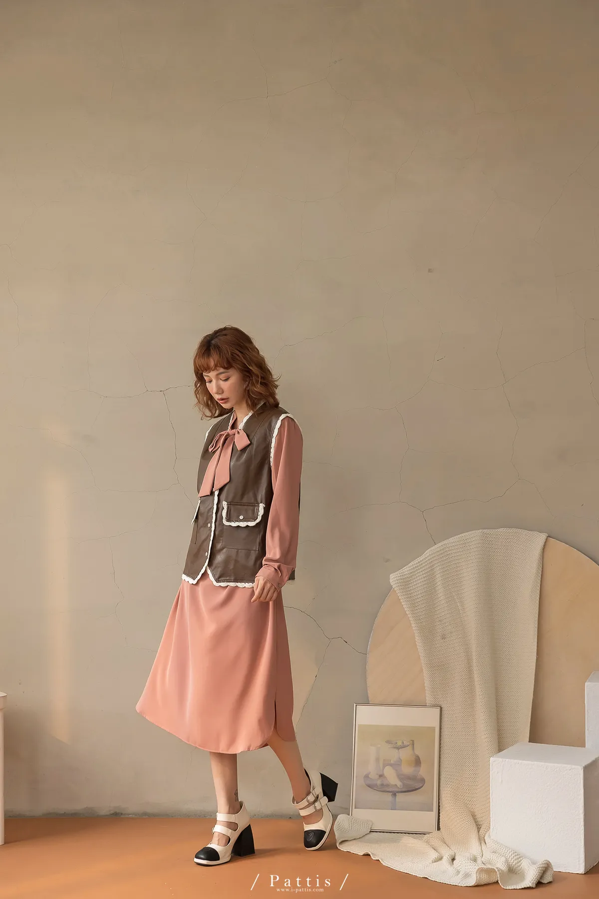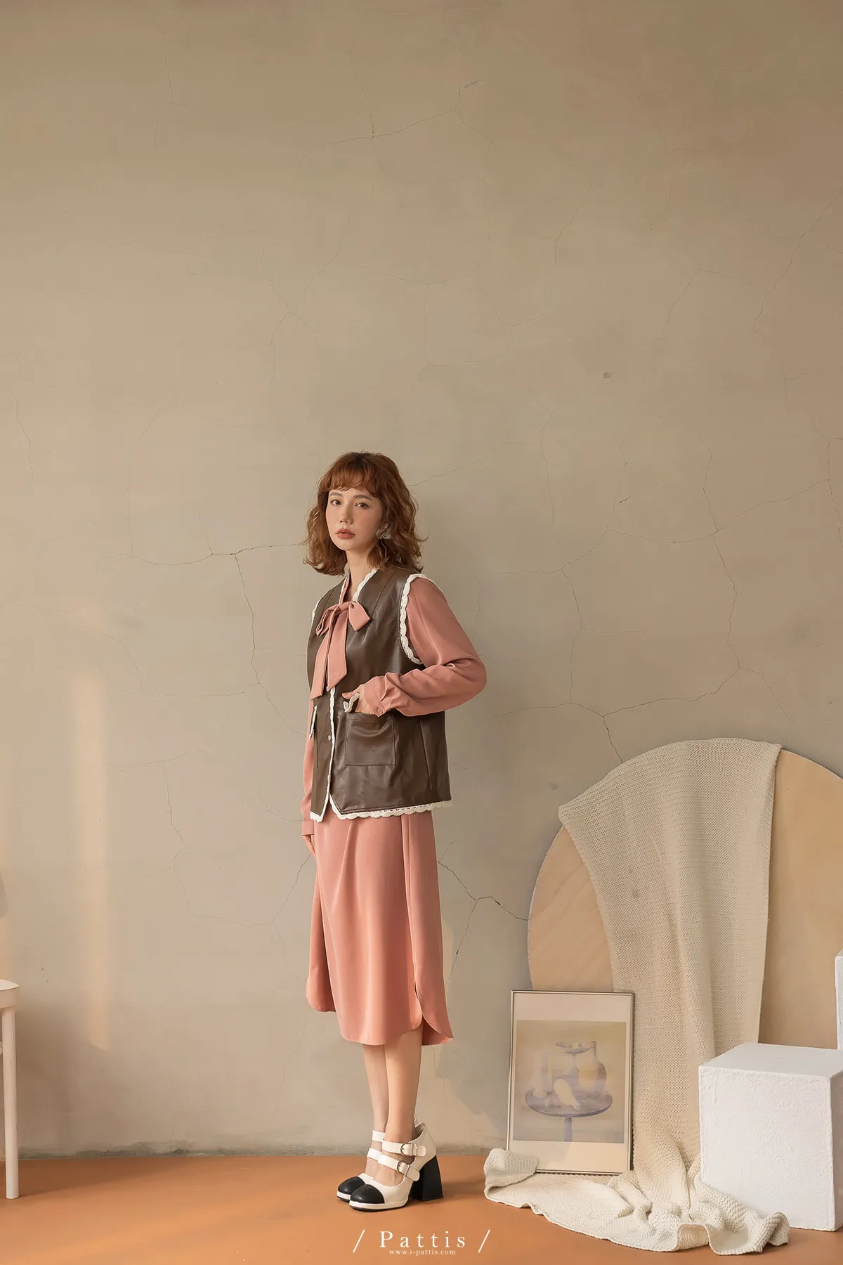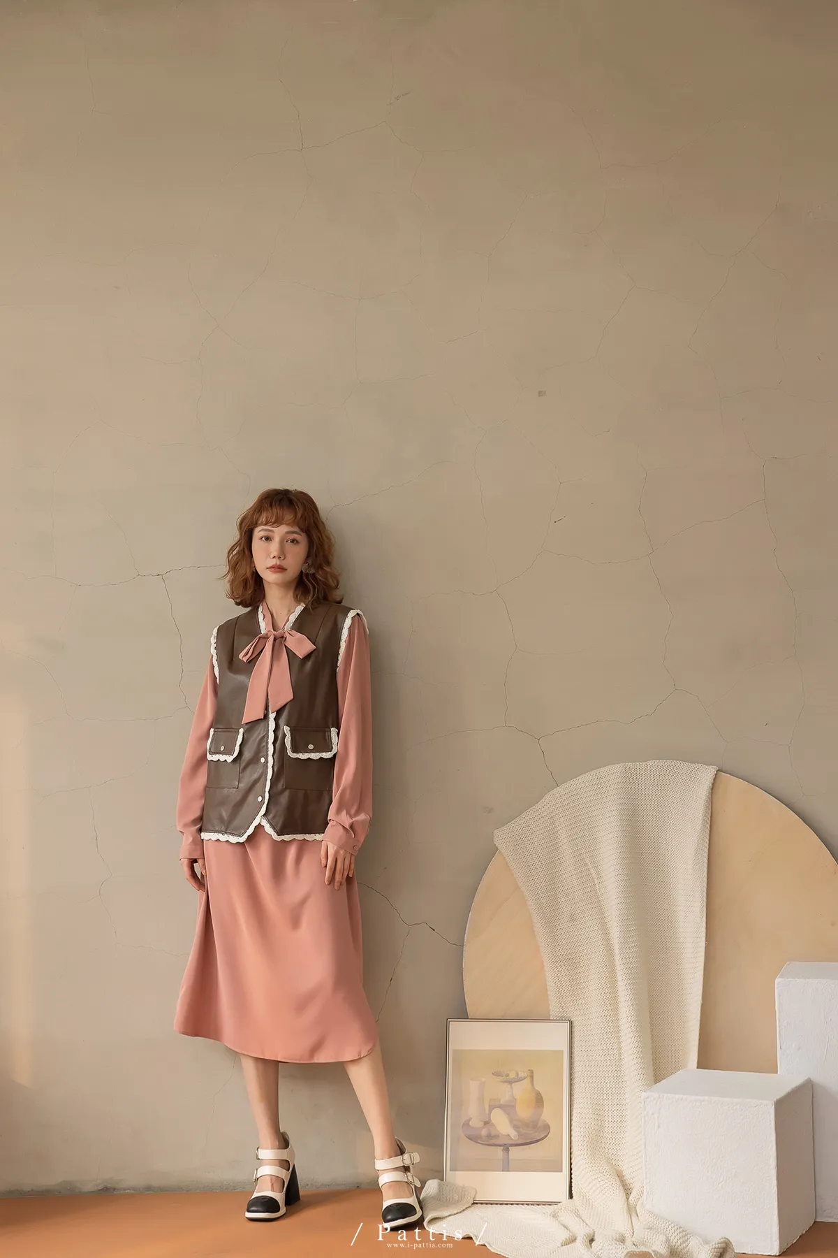 黑巧克力的擠花 | 勾針滾邊口袋皮革背心(咖啡)