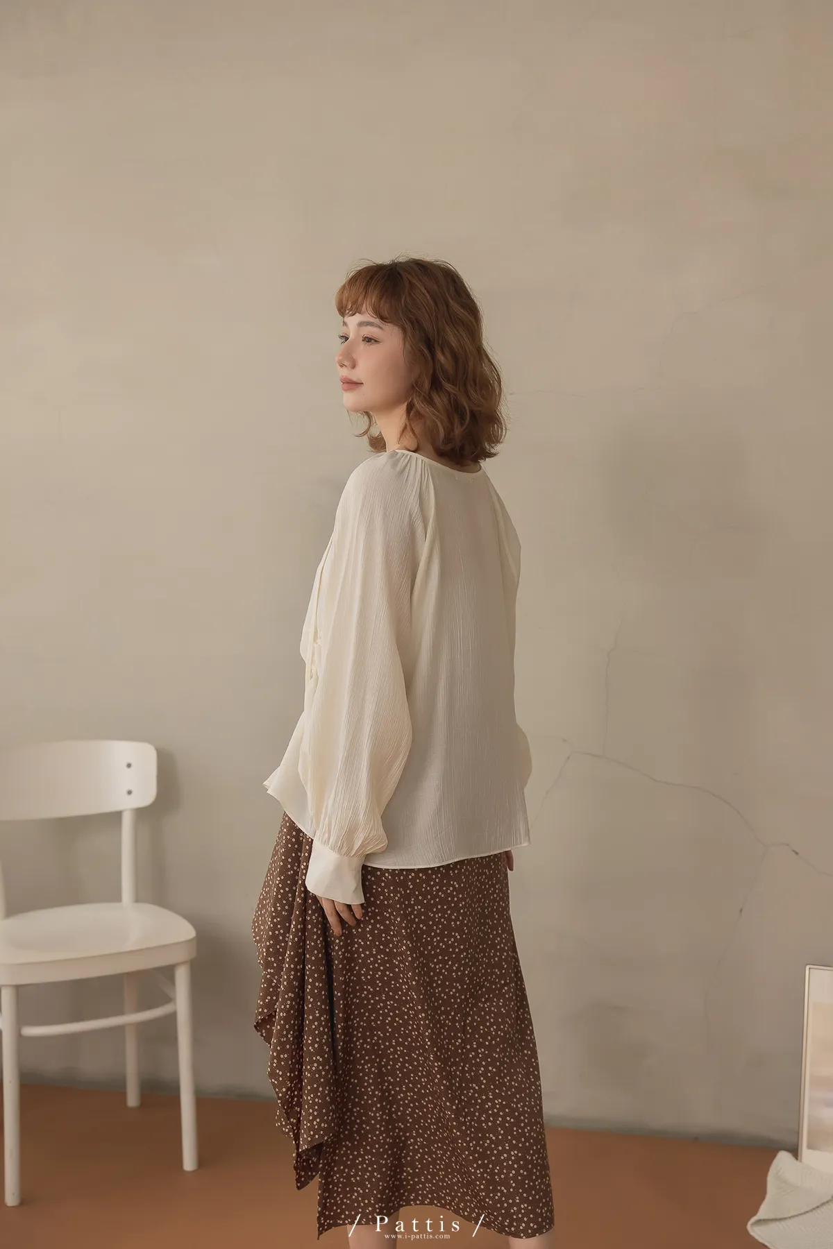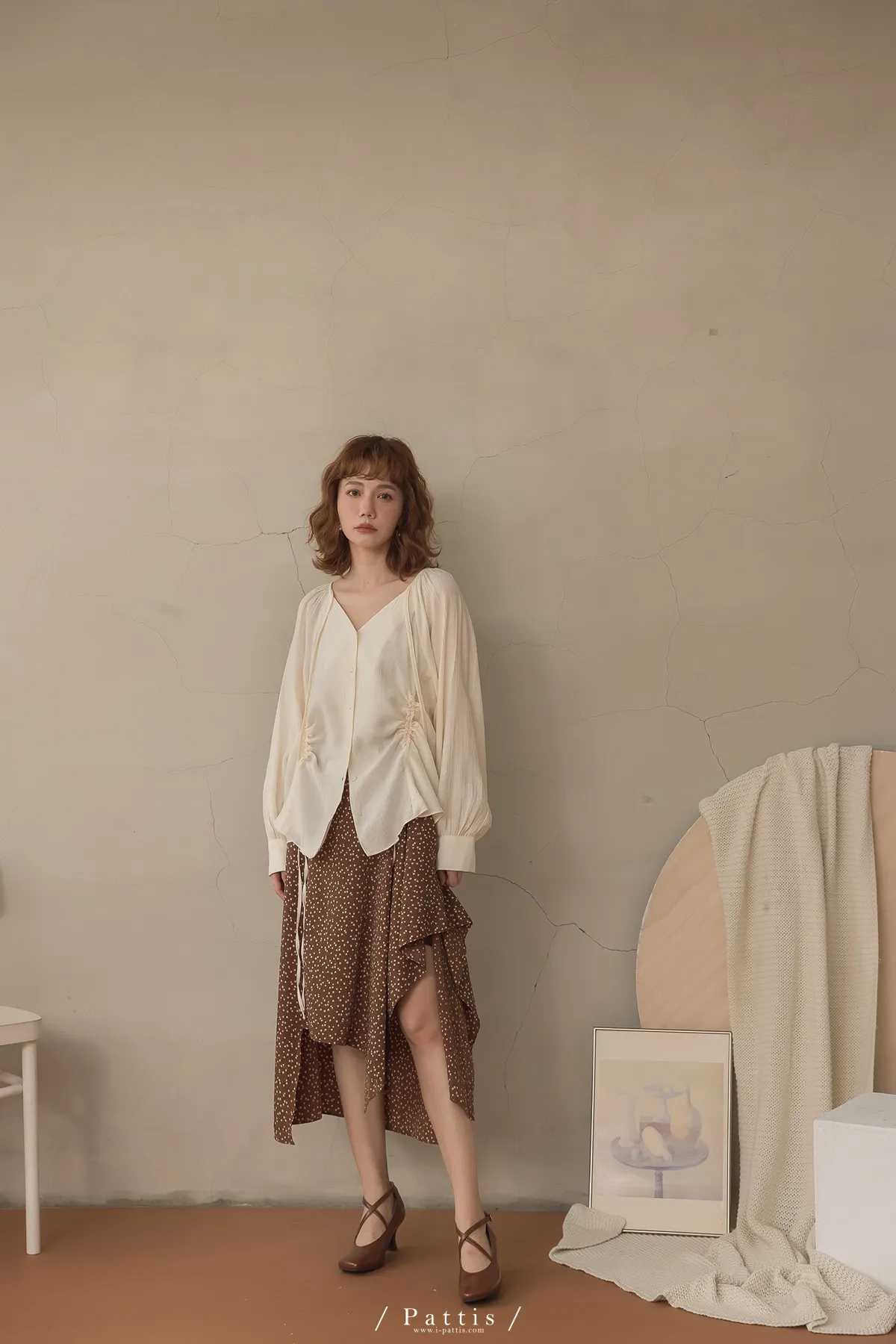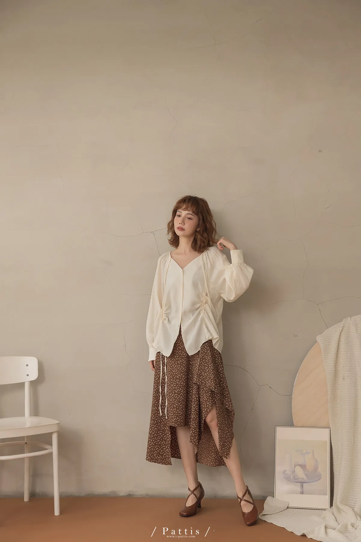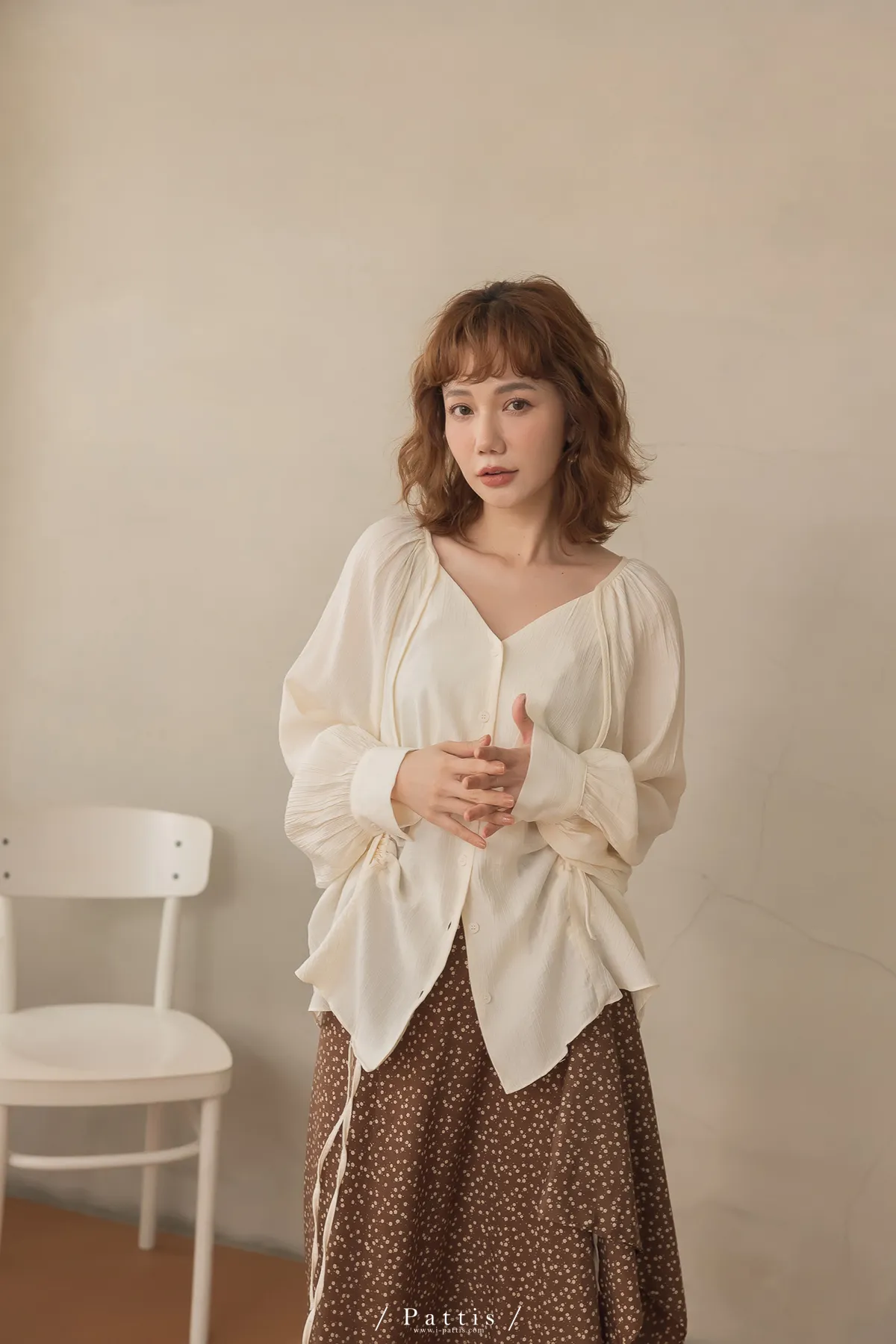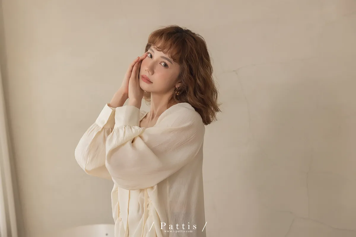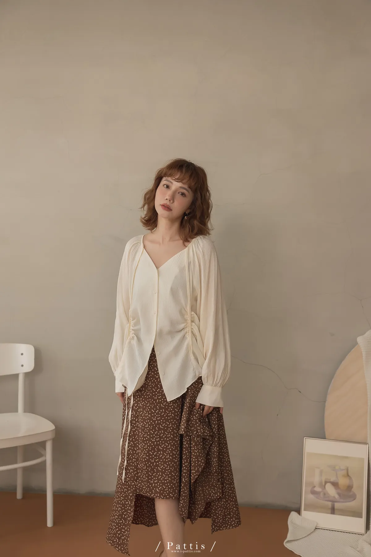 下午三時的光 | V領抽繩造型長上衣(米白)