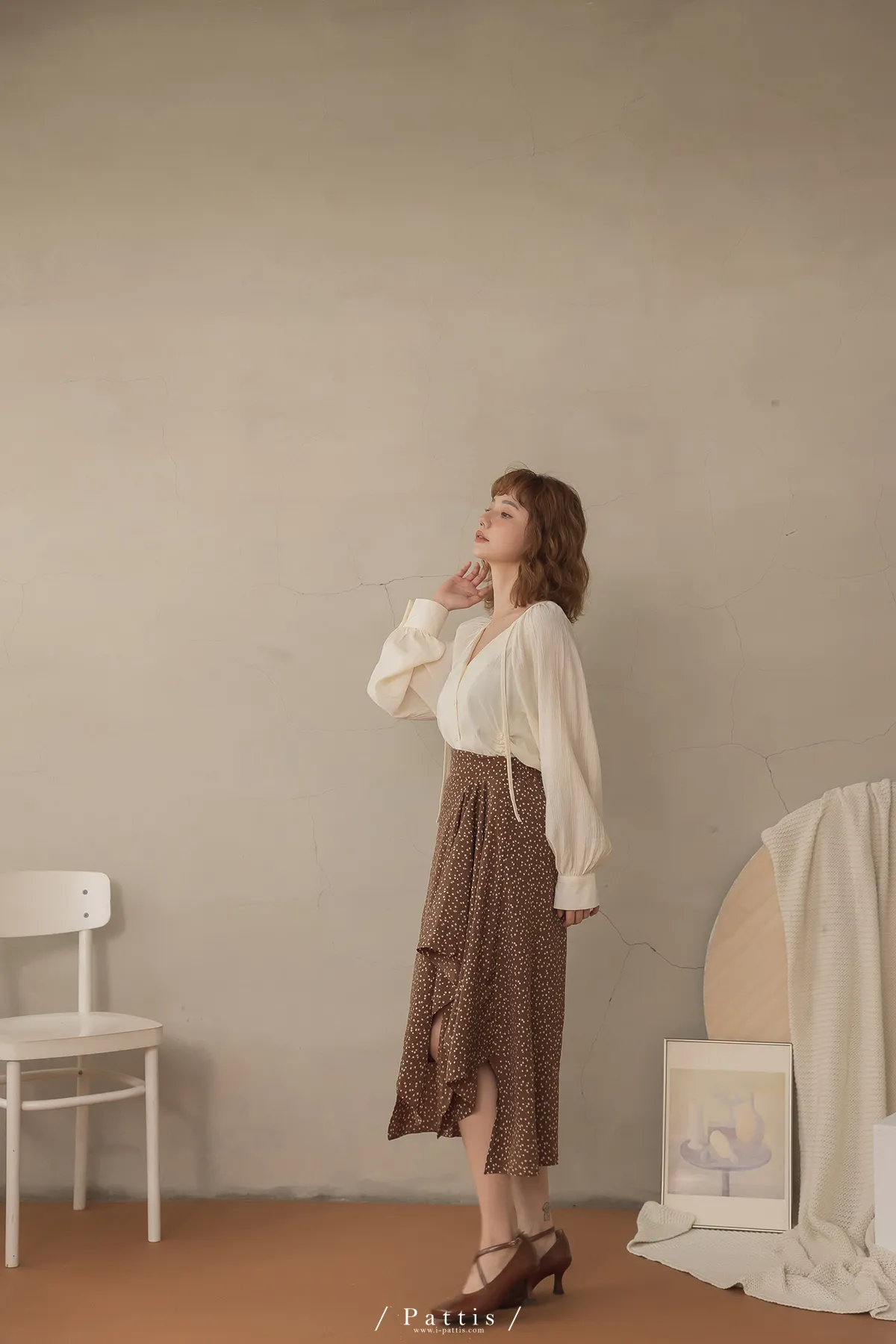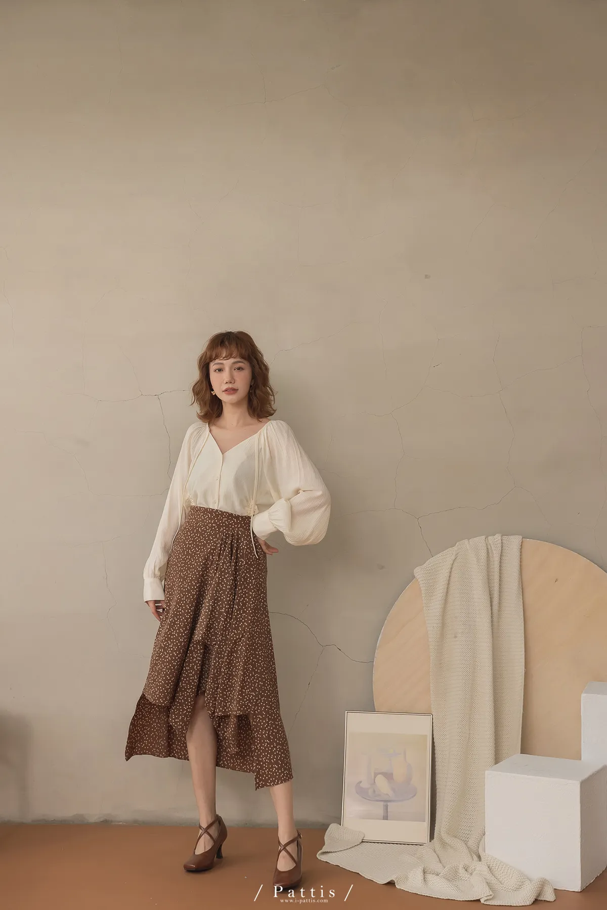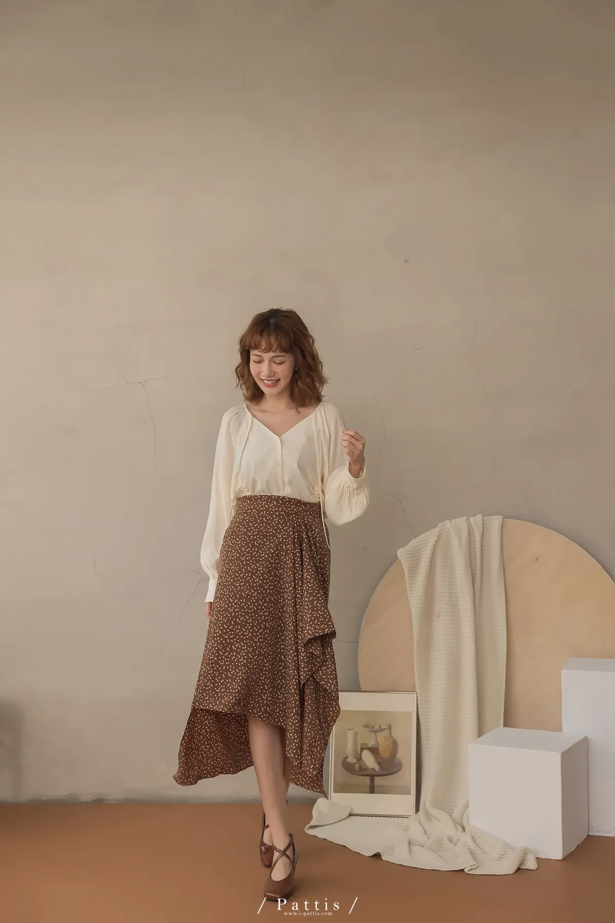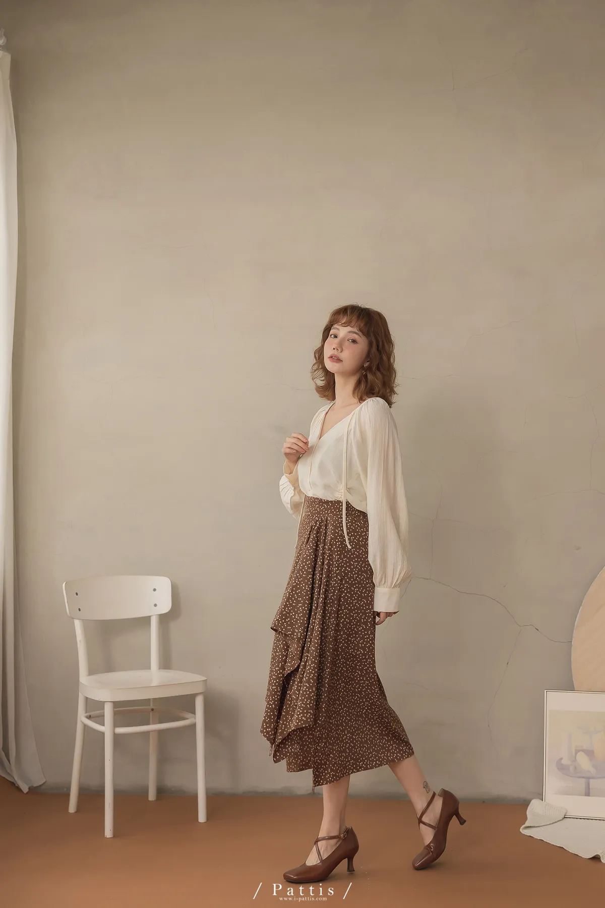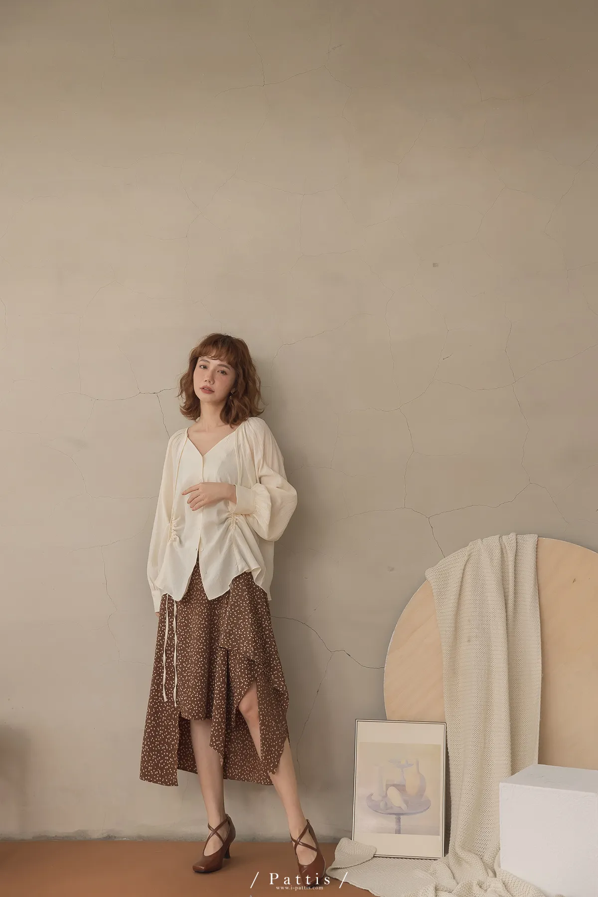 下午三時的光 | V領抽繩造型長上衣(米白)