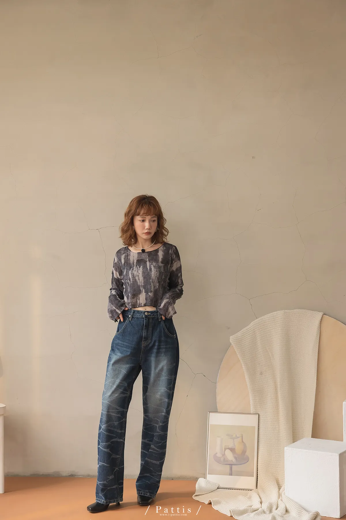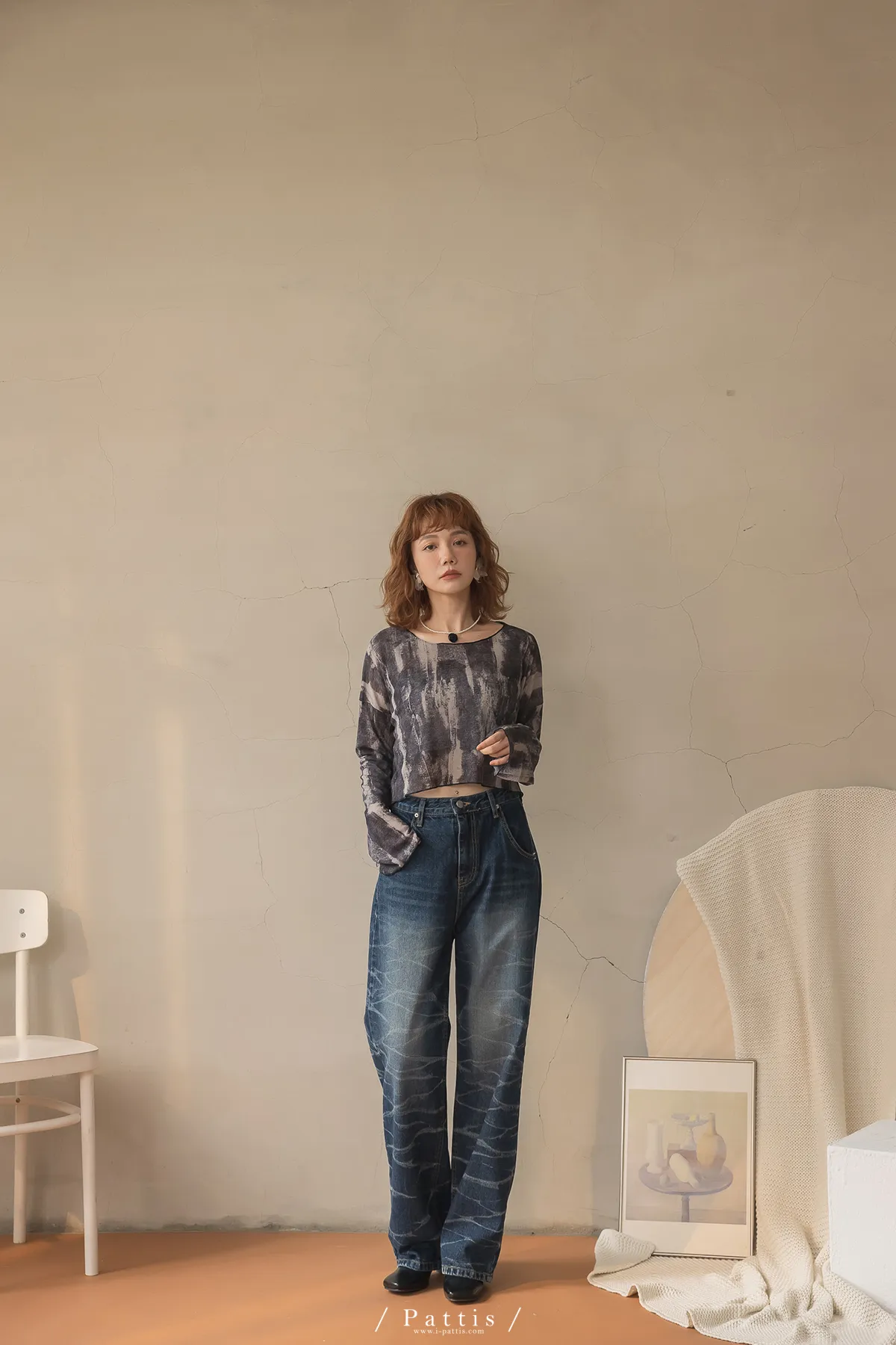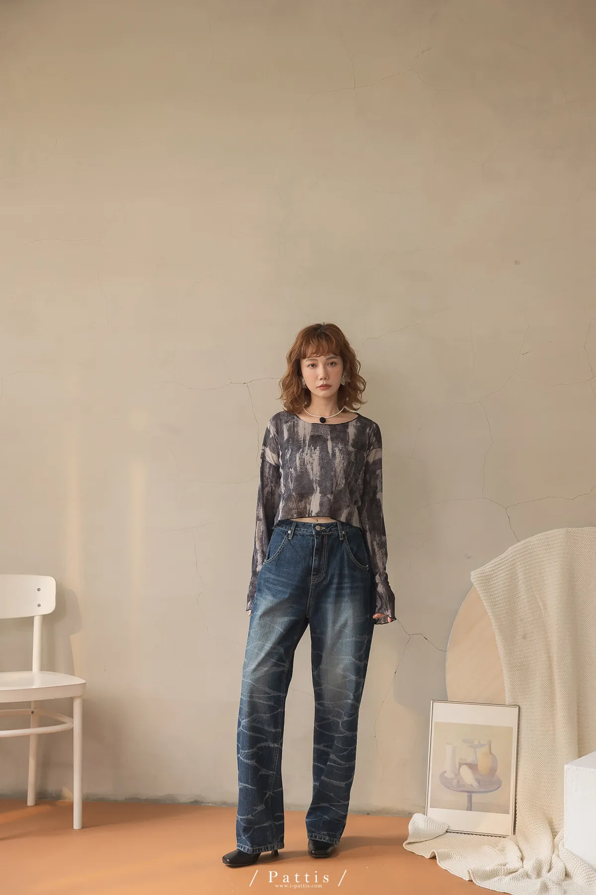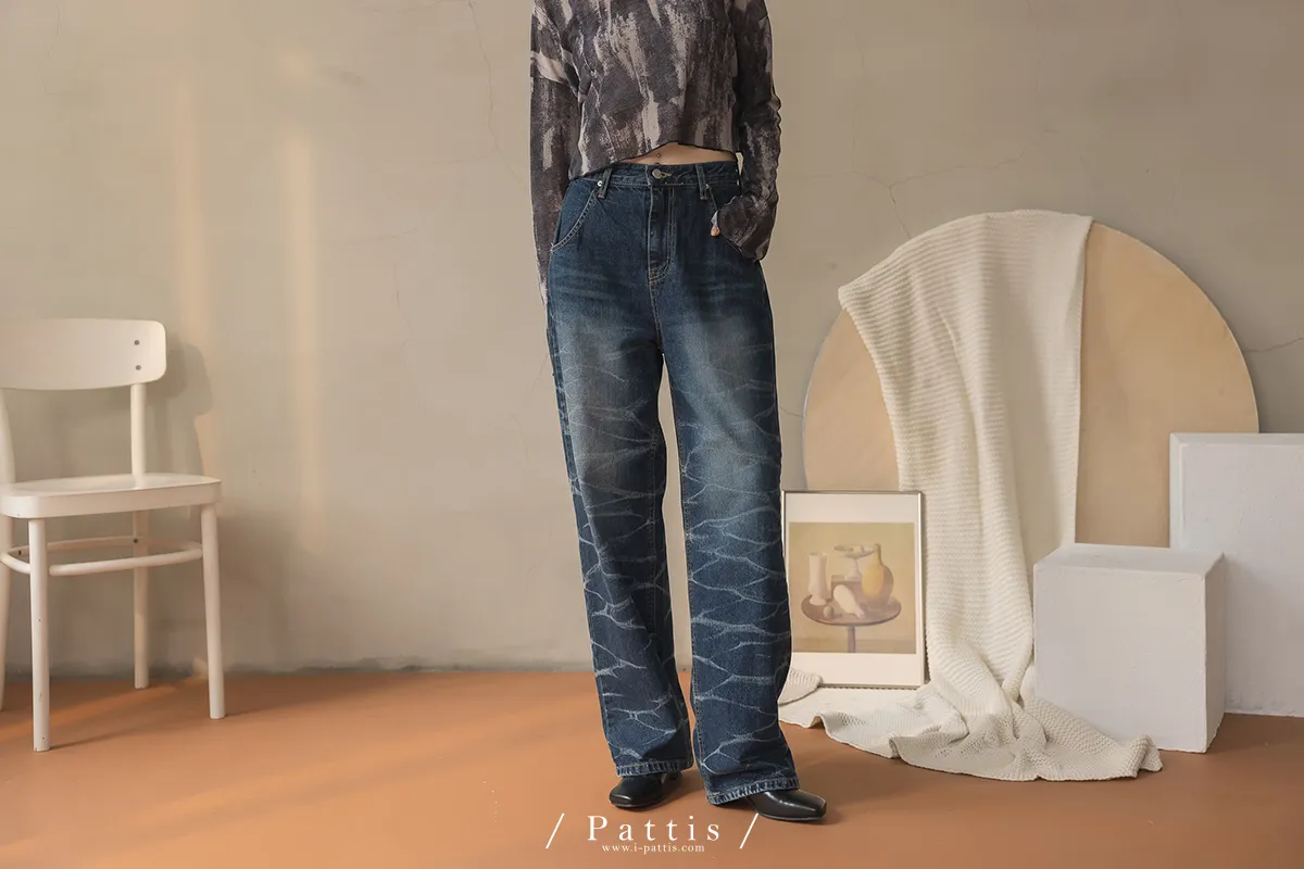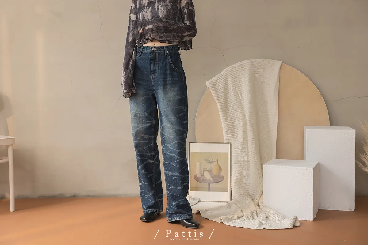 海下的人魚視線 | 水波紋刷色寬褲(單一色)