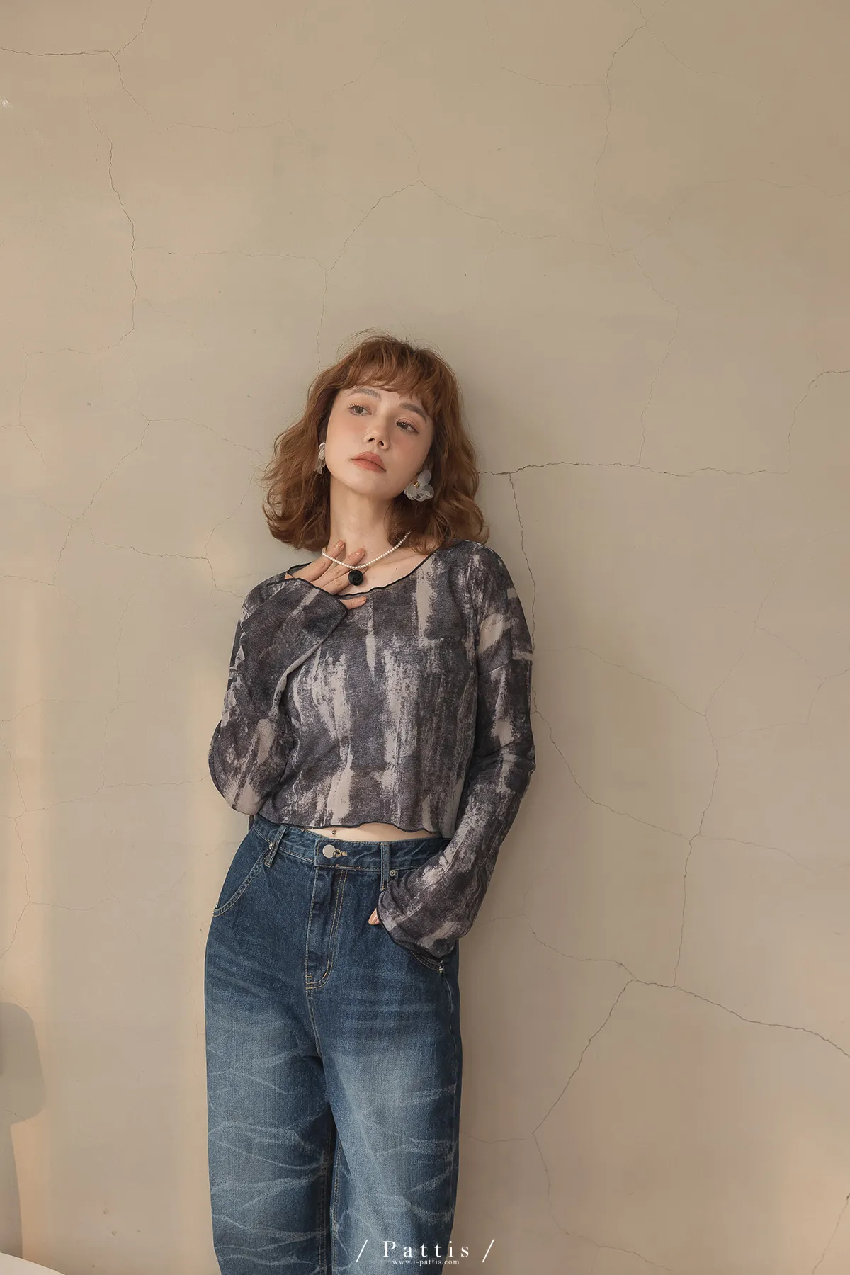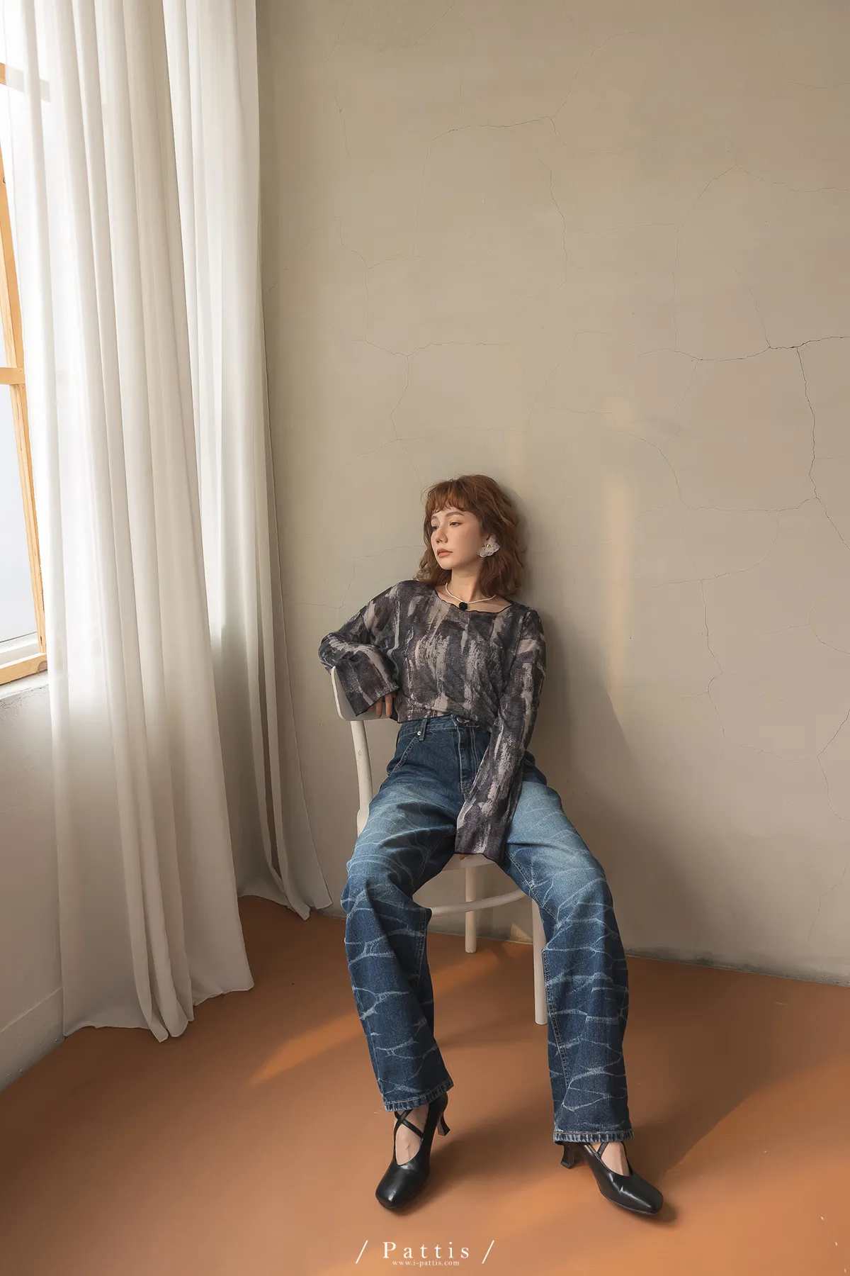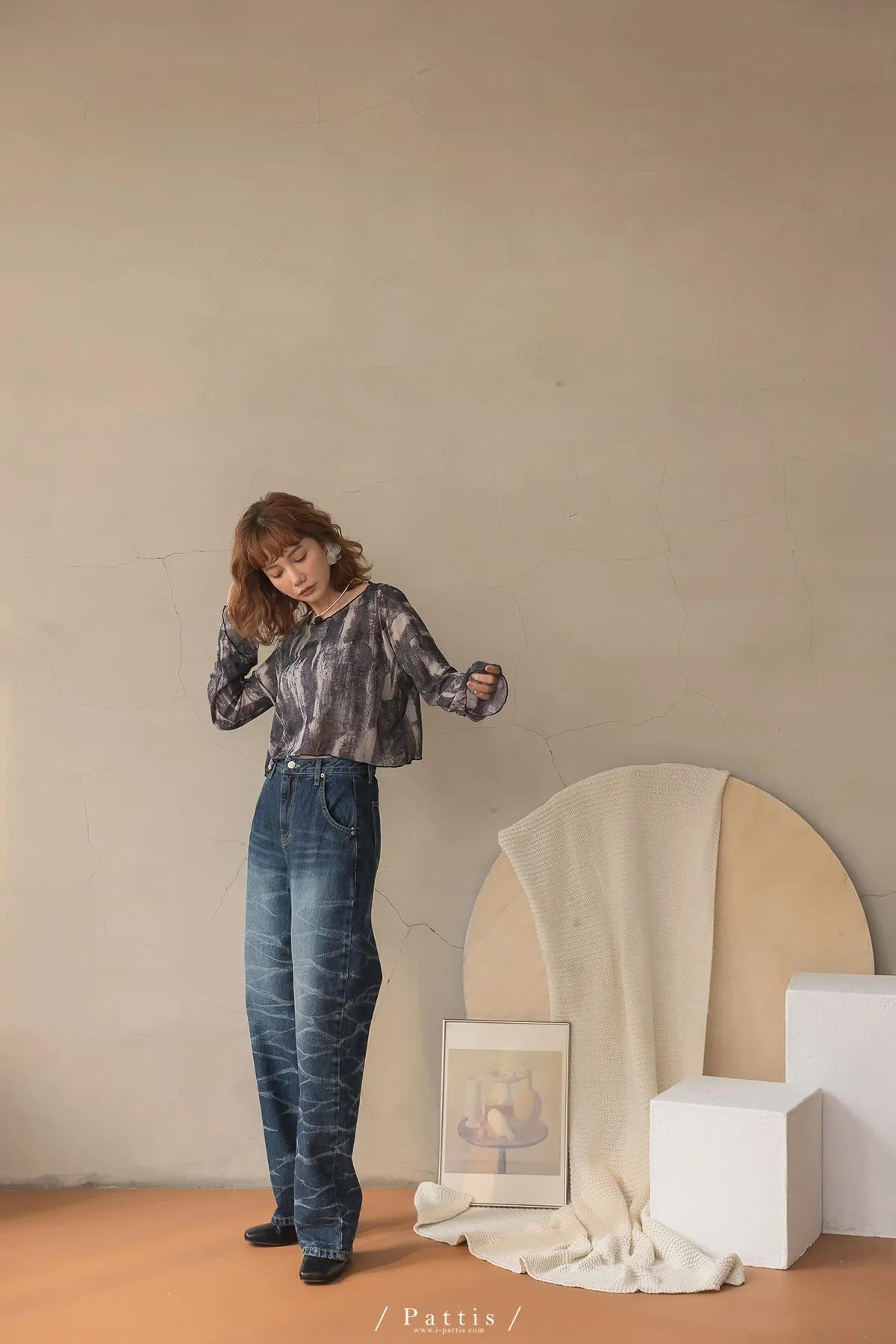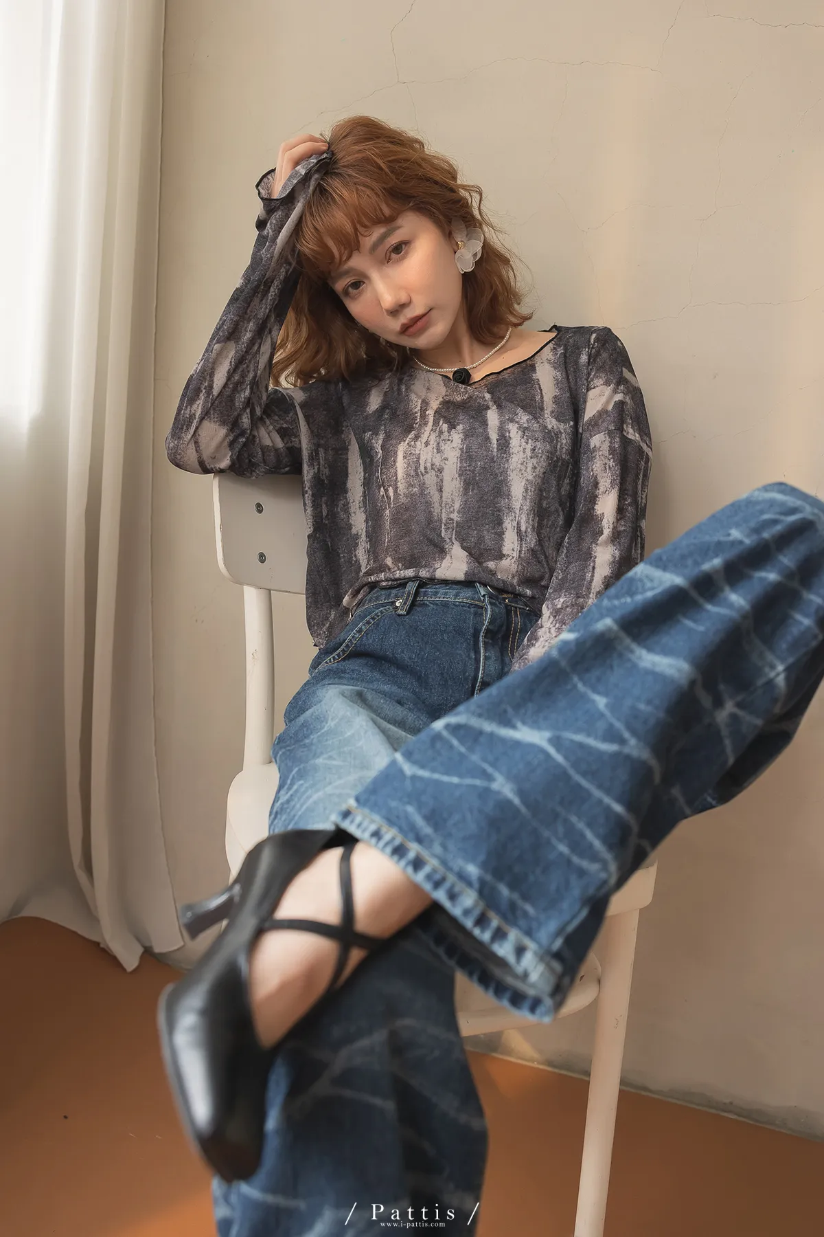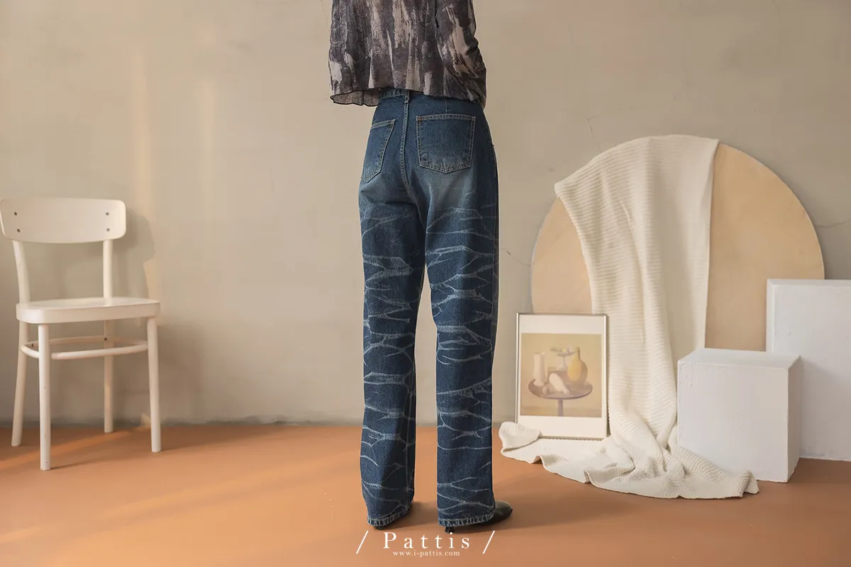 海下的人魚視線 | 水波紋刷色寬褲(單一色)