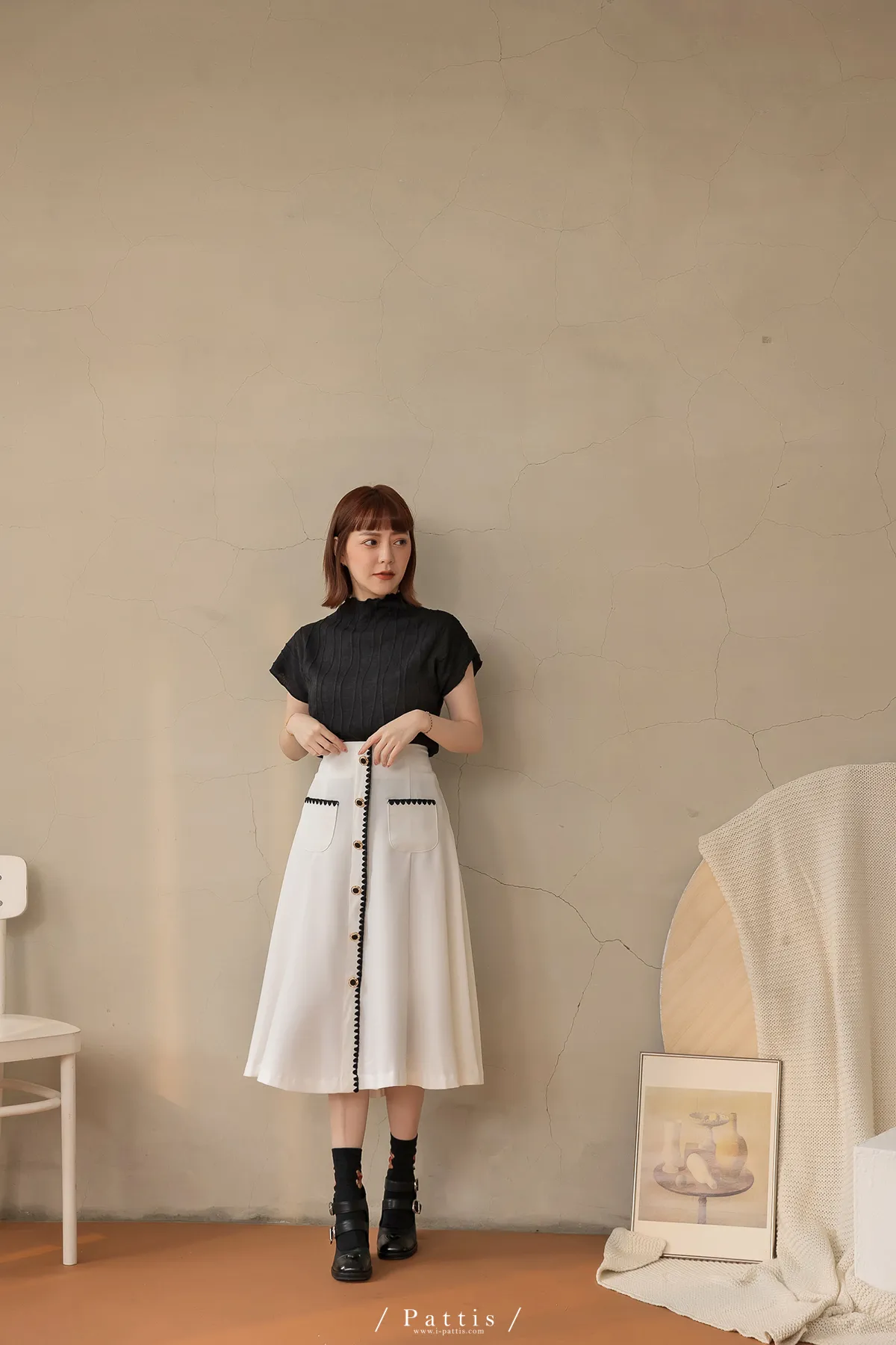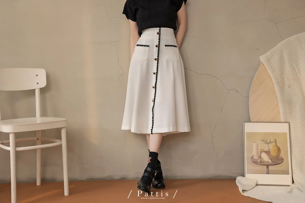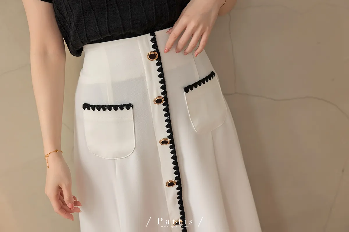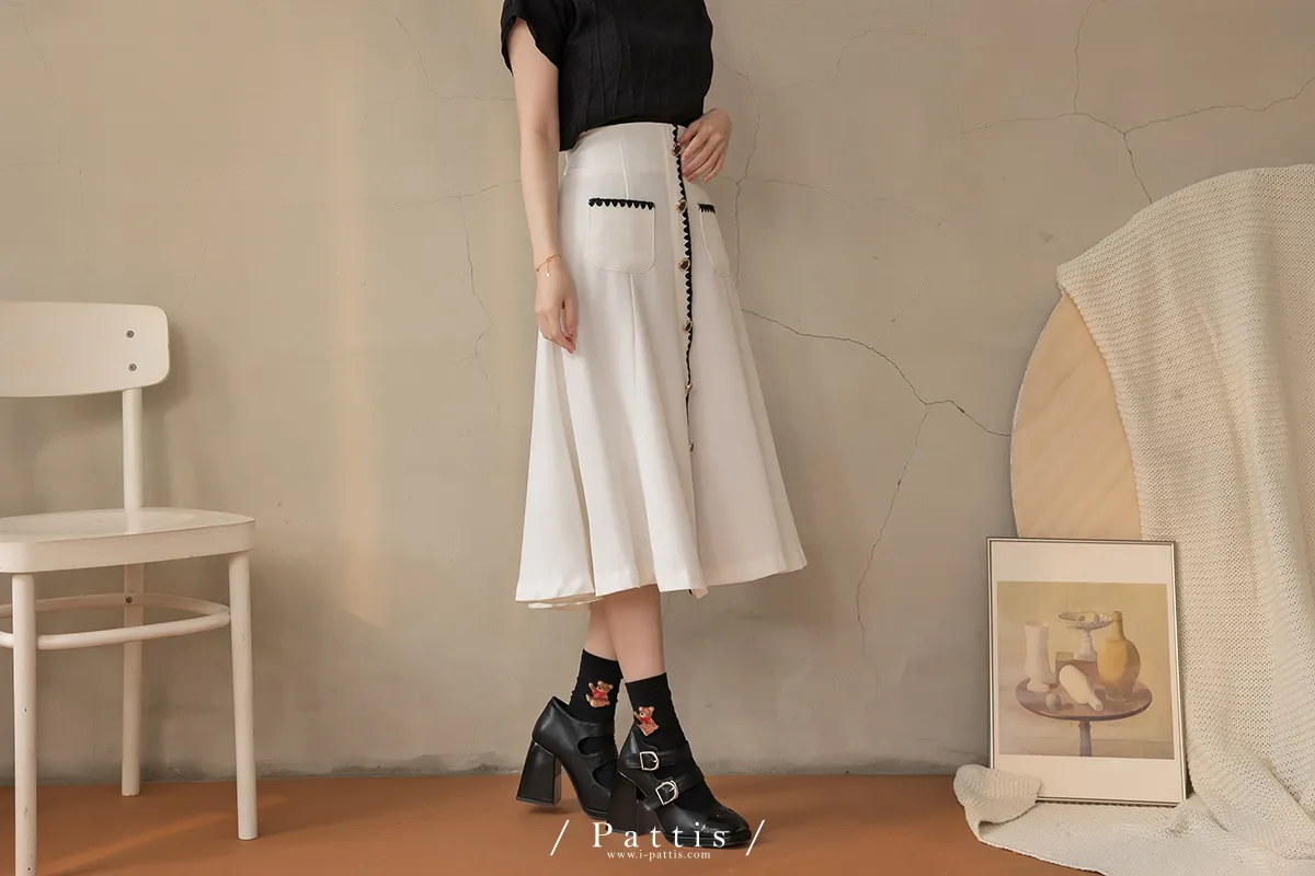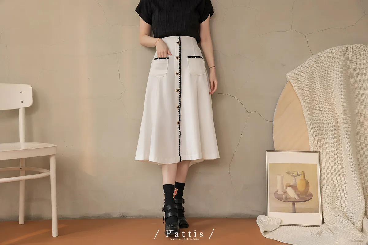 那些溫柔習慣 | 勾針滾邊口袋鈕扣長裙(白)