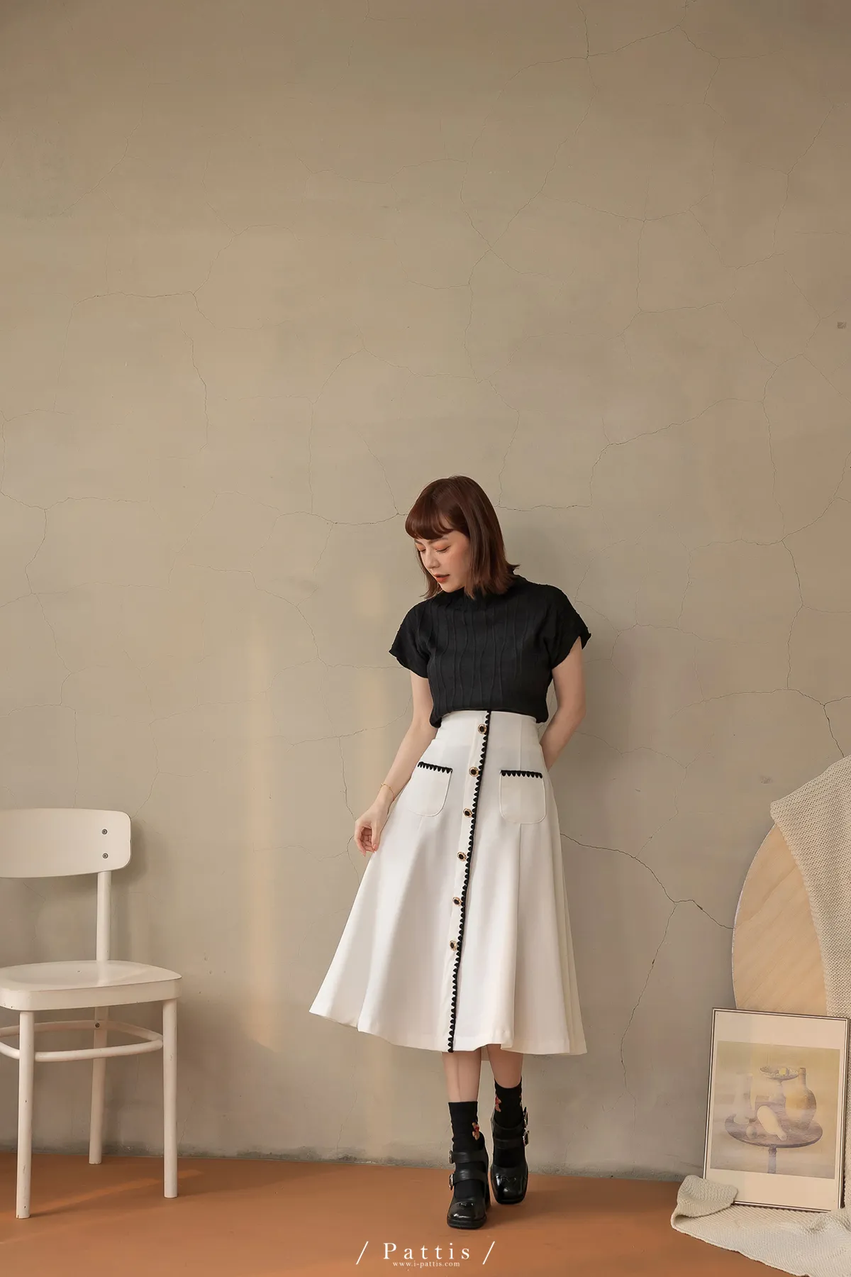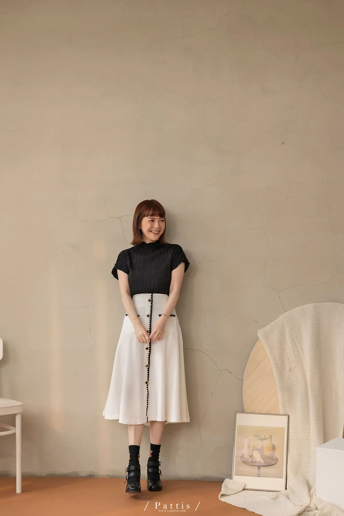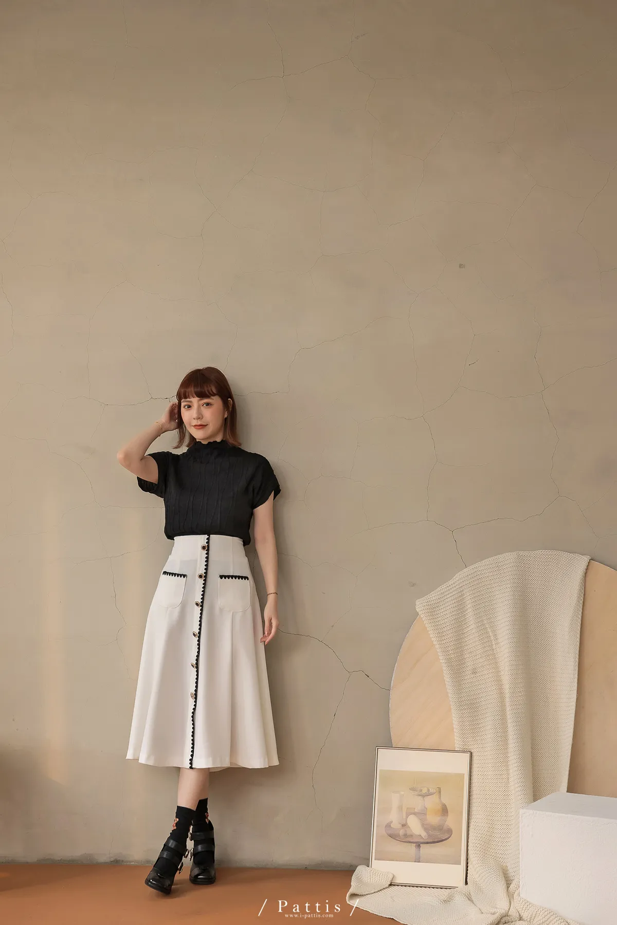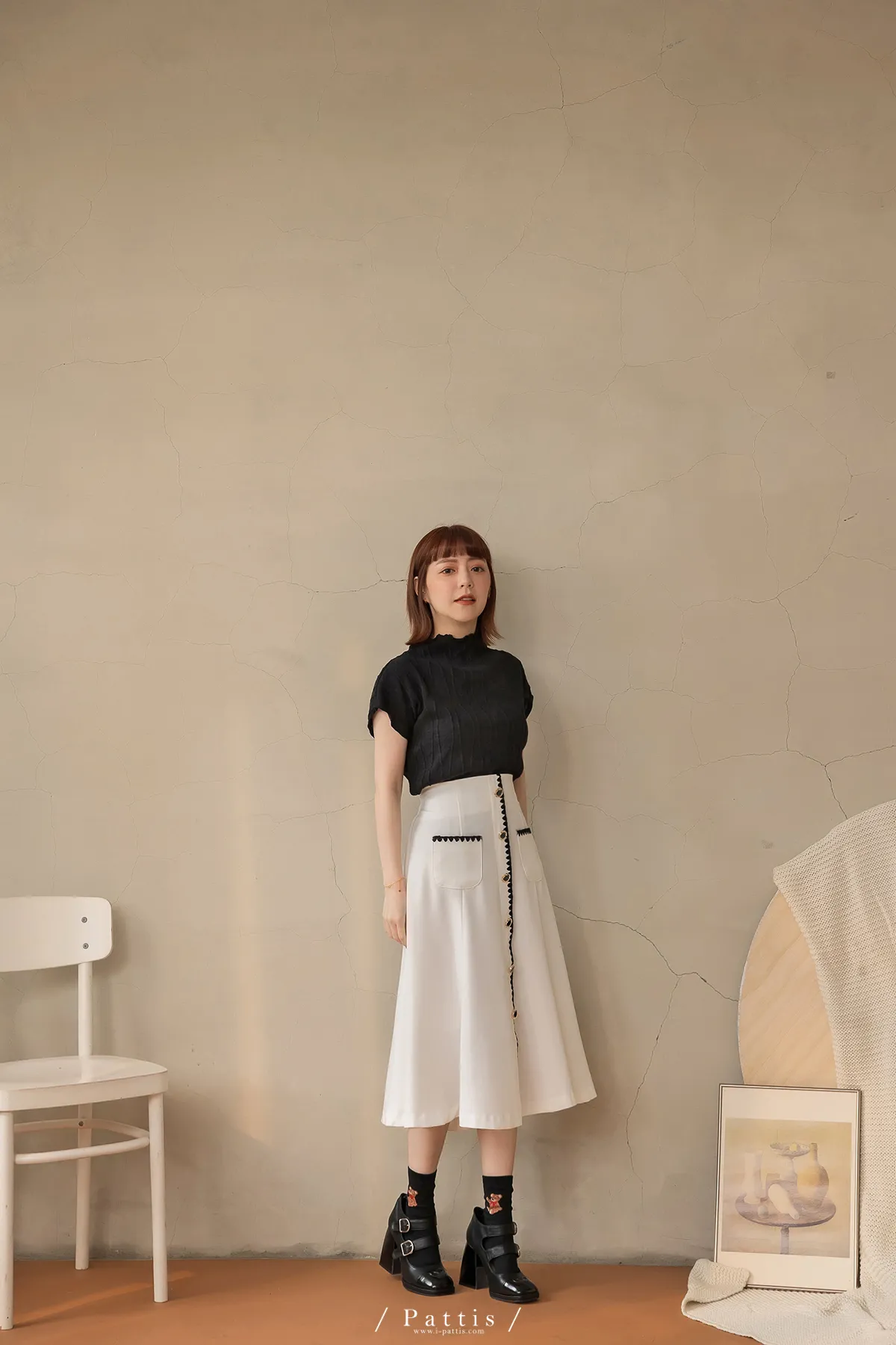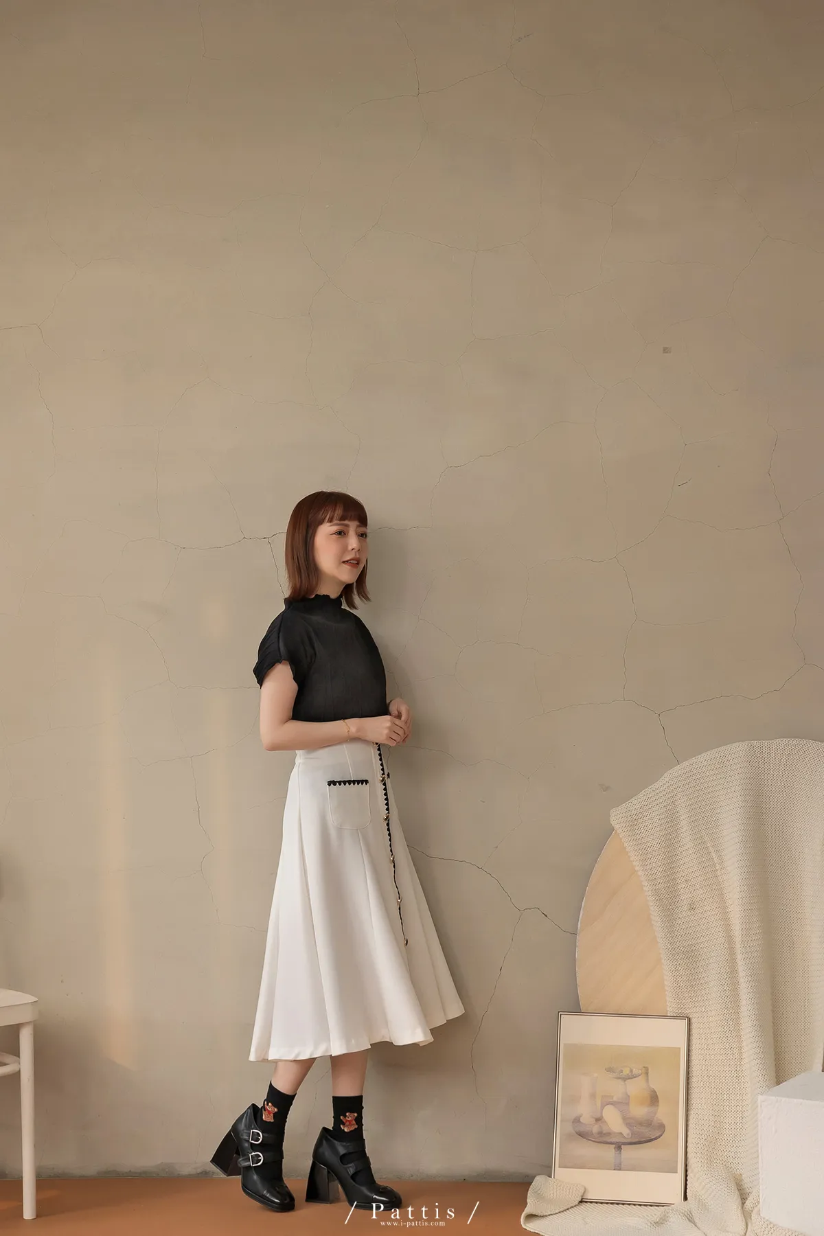 那些溫柔習慣 | 勾針滾邊口袋鈕扣長裙(白)