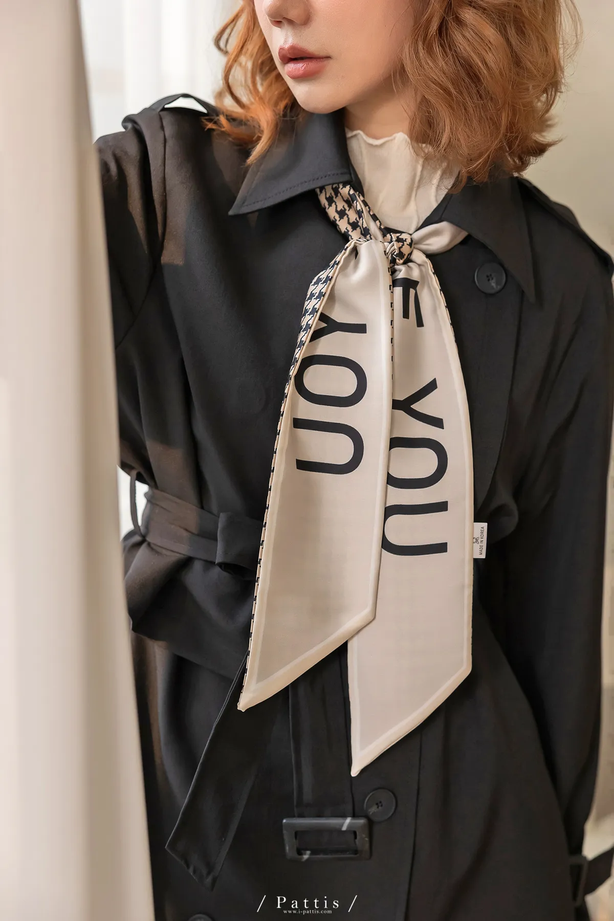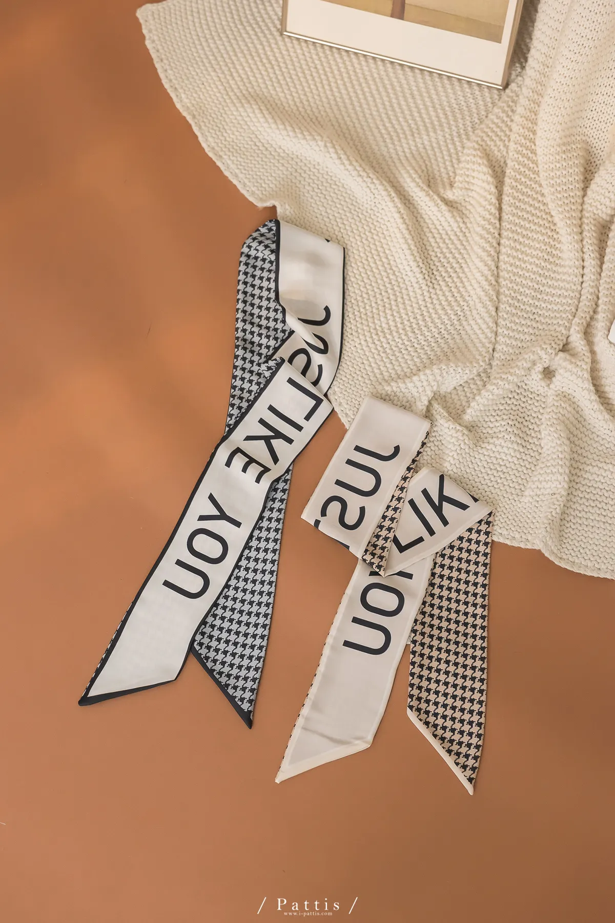 雙面千鳥格字母長絲巾(米咖/黑白)