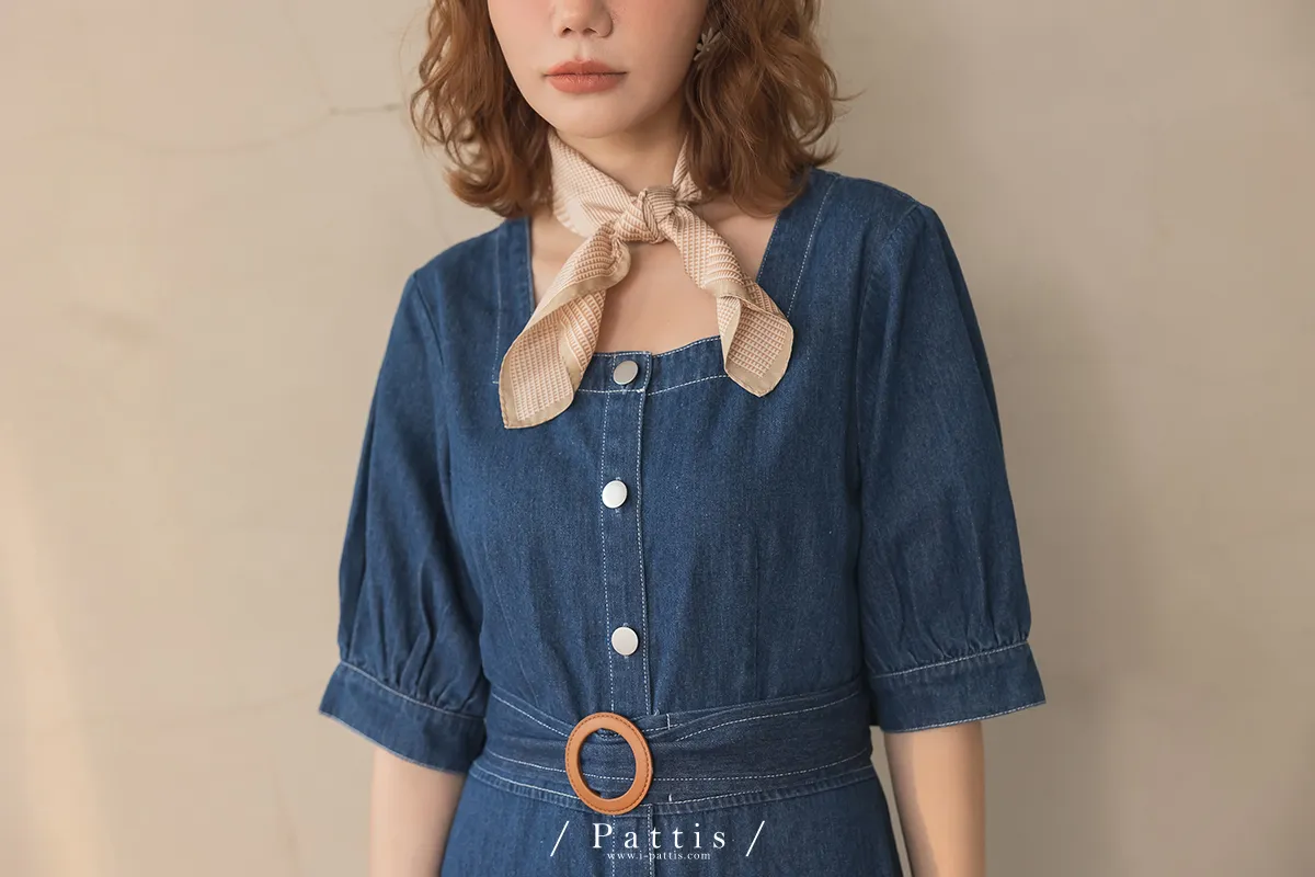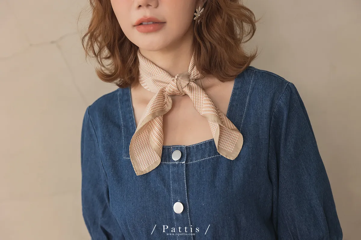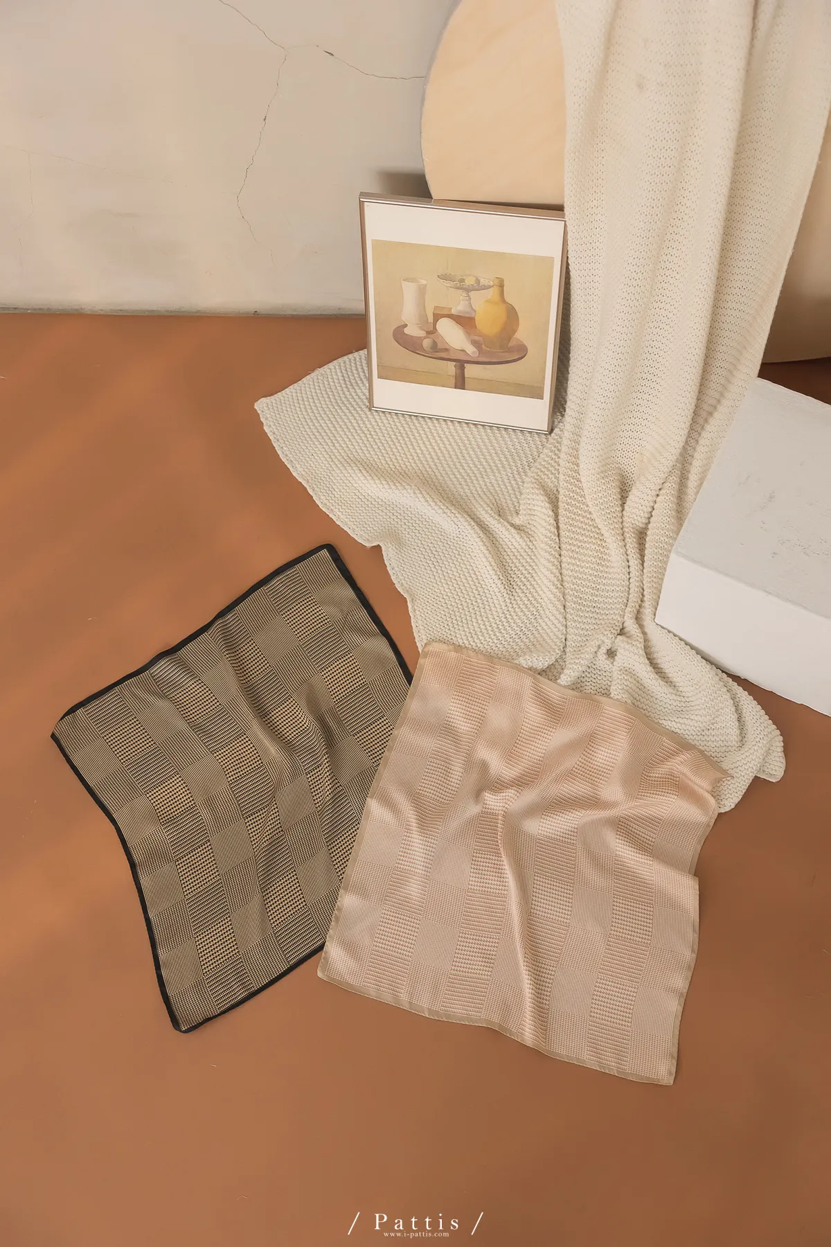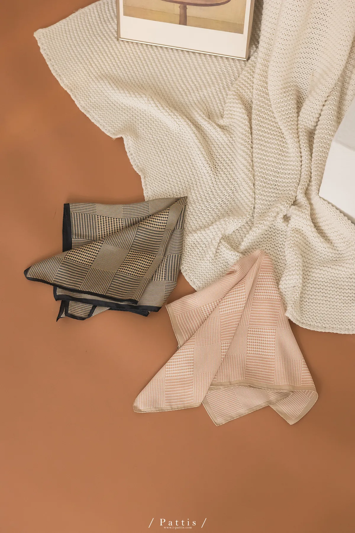 大方格配小千鳥格方形絲巾(米杏/棕黑)