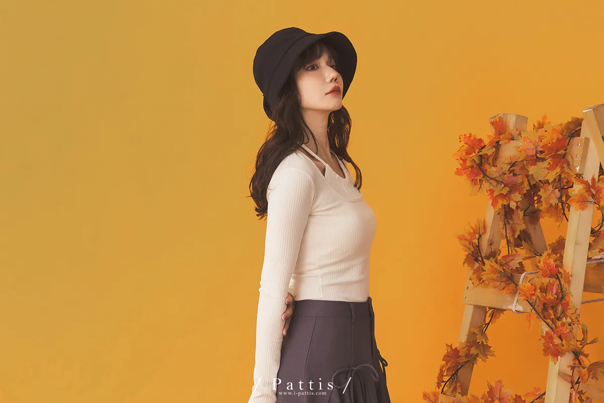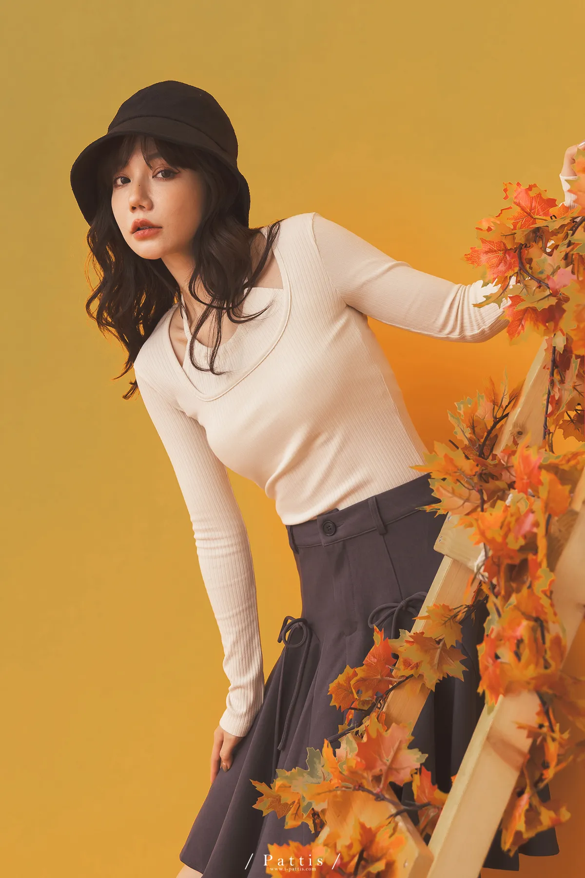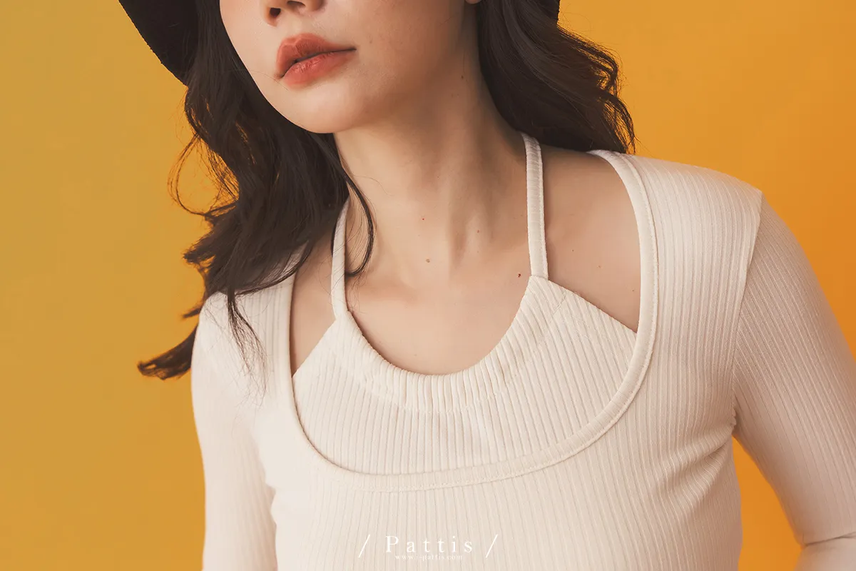 膠捲裡的白日夢|假兩件繞脖綁帶上衣(米白)