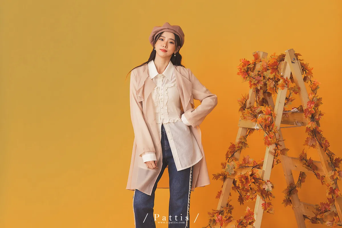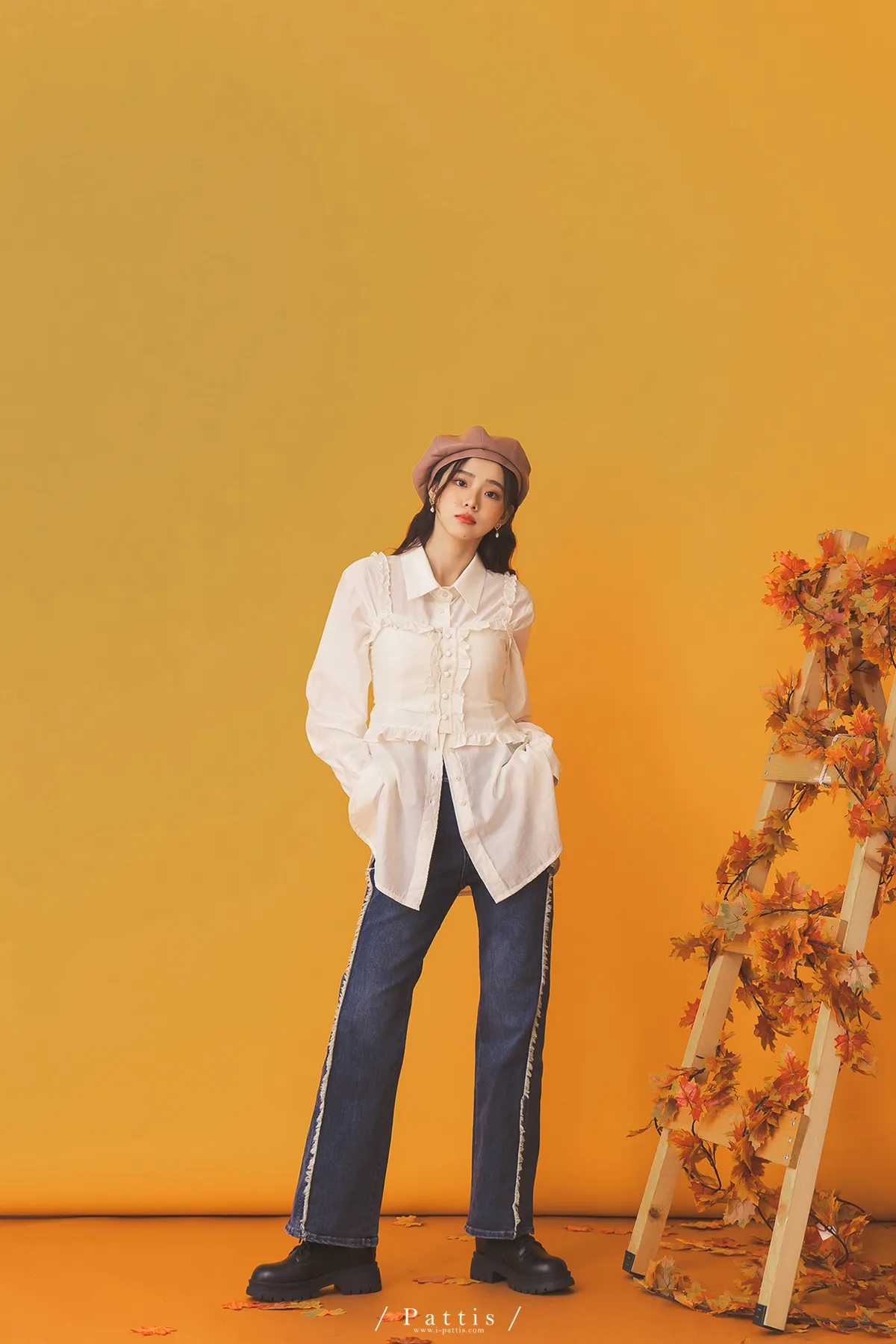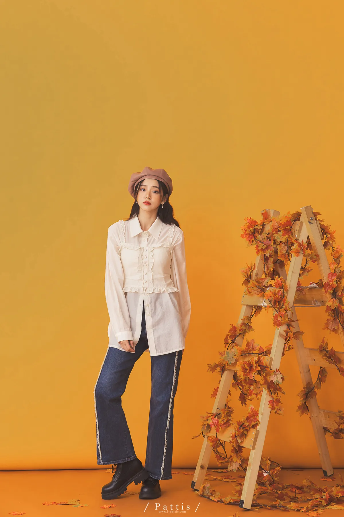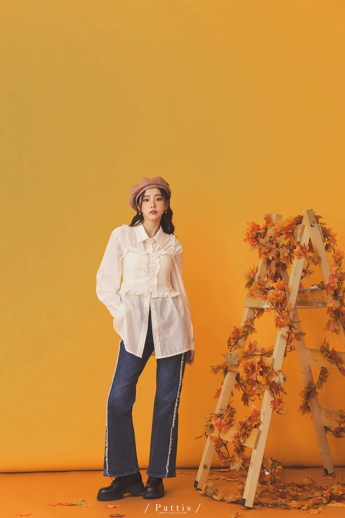 棉花糖可可|荷葉馬甲背心+口袋襯衫set組(米白)
