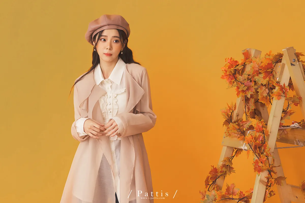 | F-襯衫 | 70 | 45 | 52 | 55 | 59 | 11(袖釦) | 17 | 24 | 絲質雪紡 | X | 前鈕釦全開 |