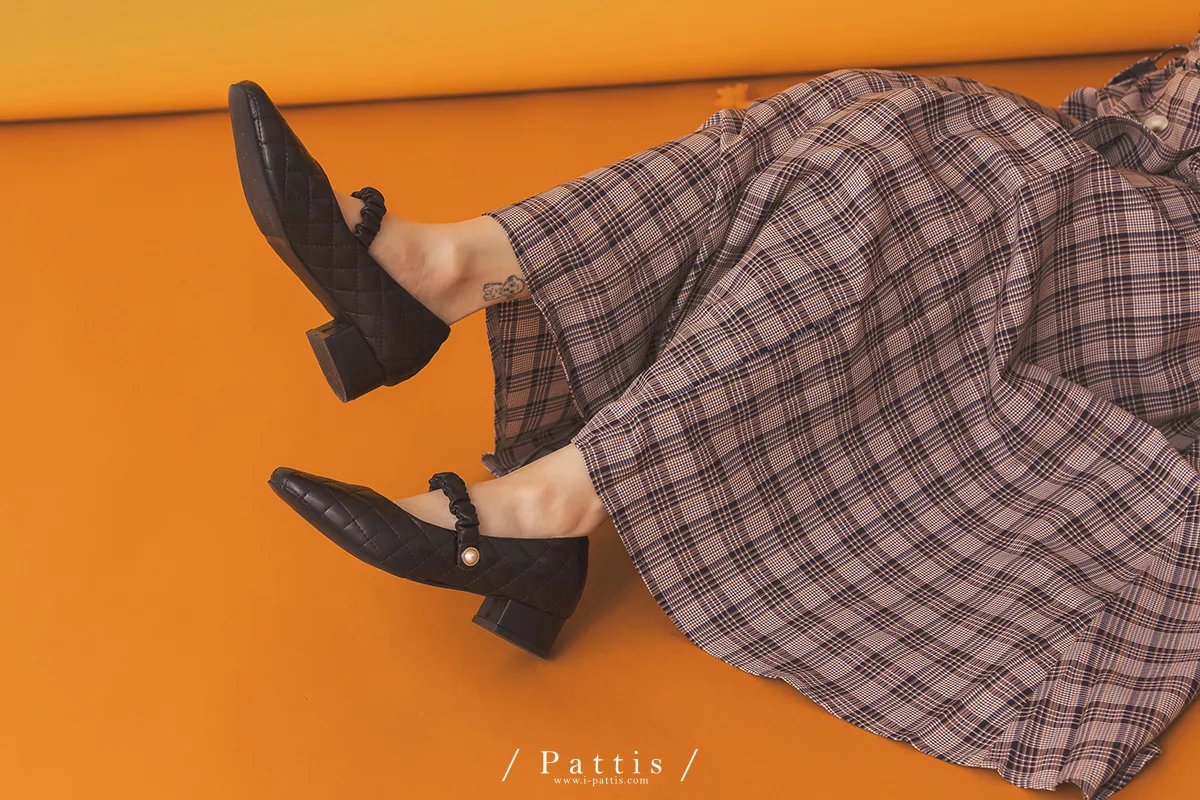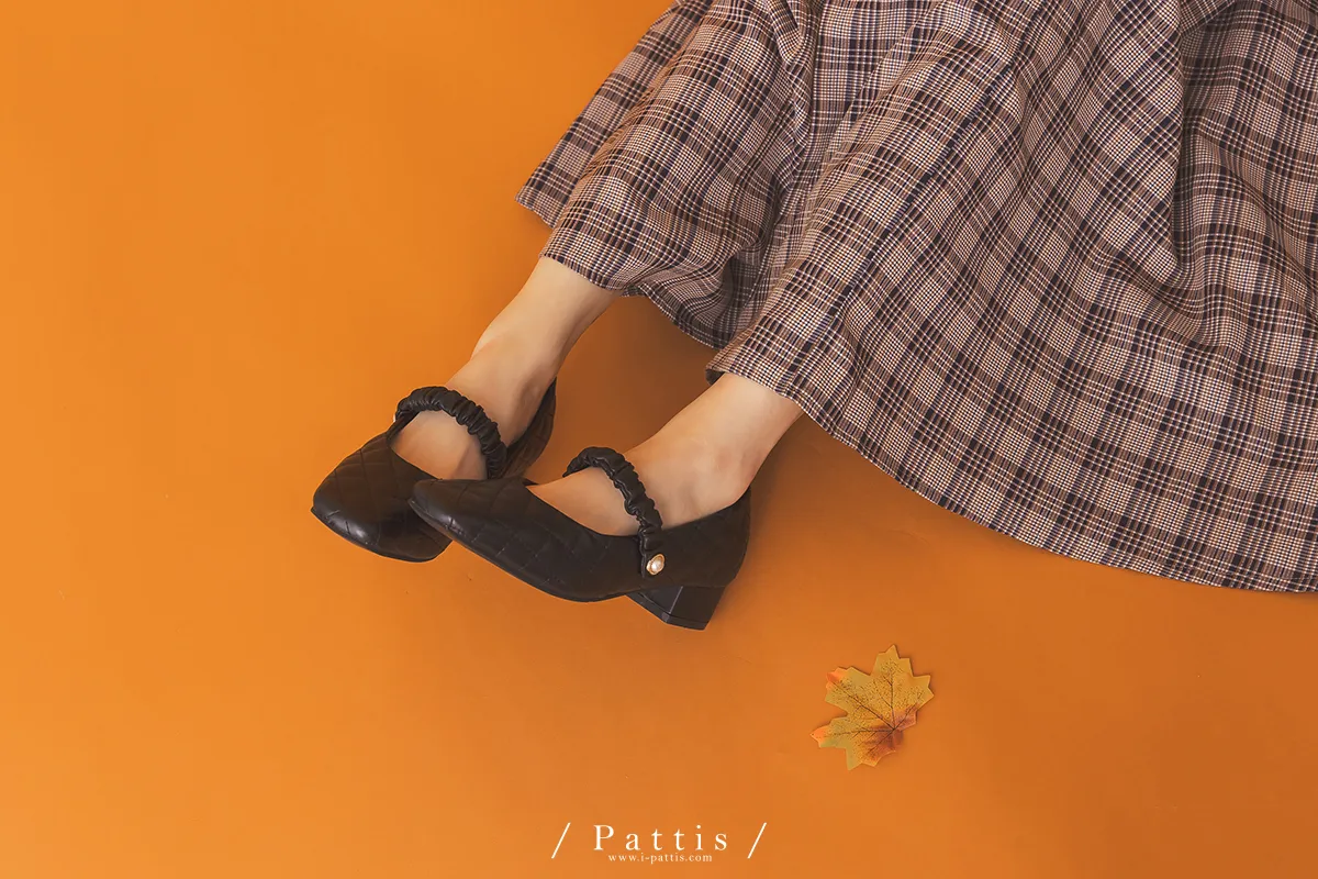 (現貨-黑23.5)菱格小金釦瑪莉珍低跟鞋(白/黑)