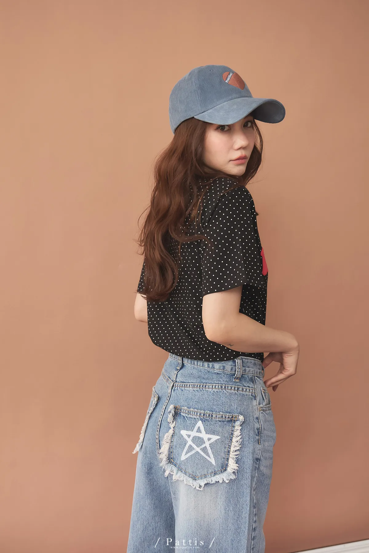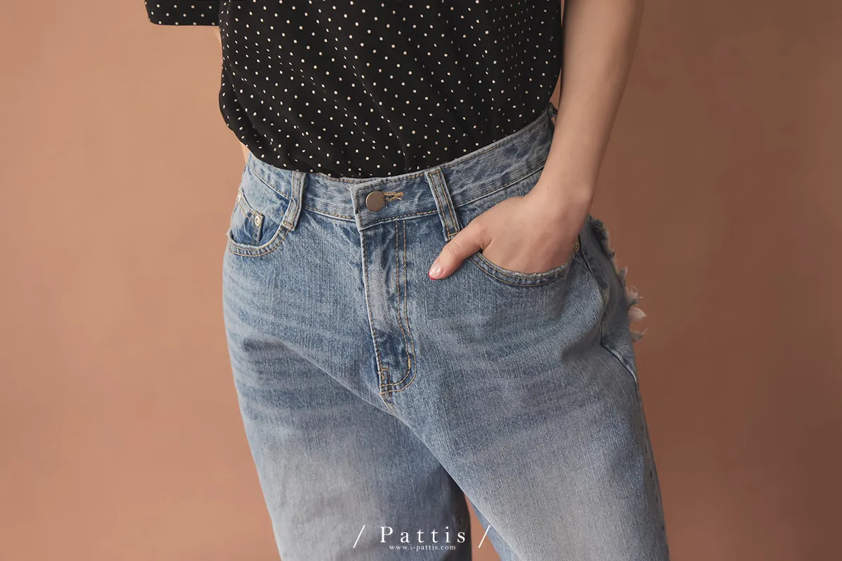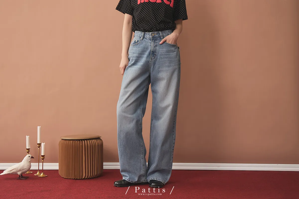 (現貨)不錯過任一抹流星 | 流蘇口袋星星刷色丹寧寬褲(單一色)