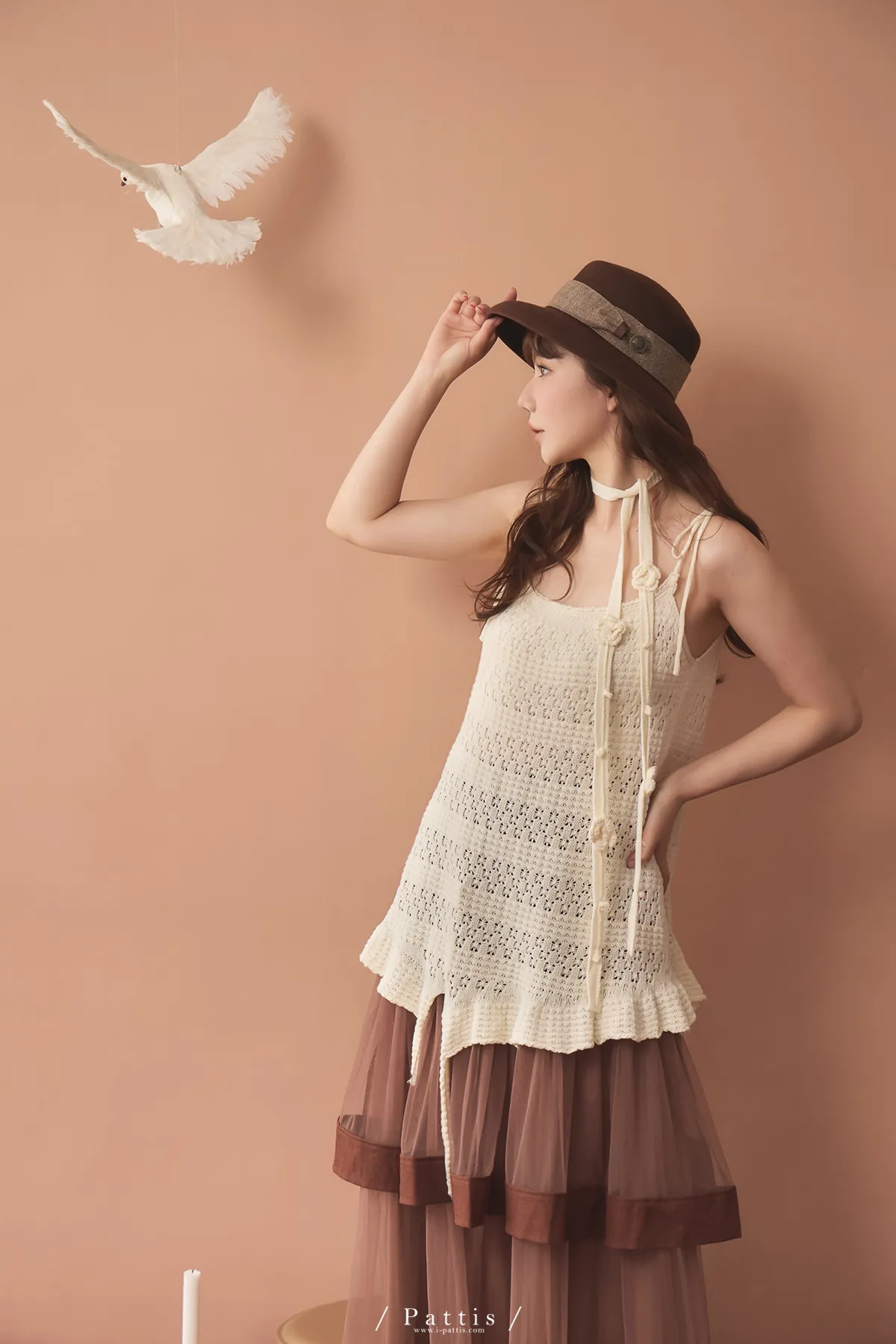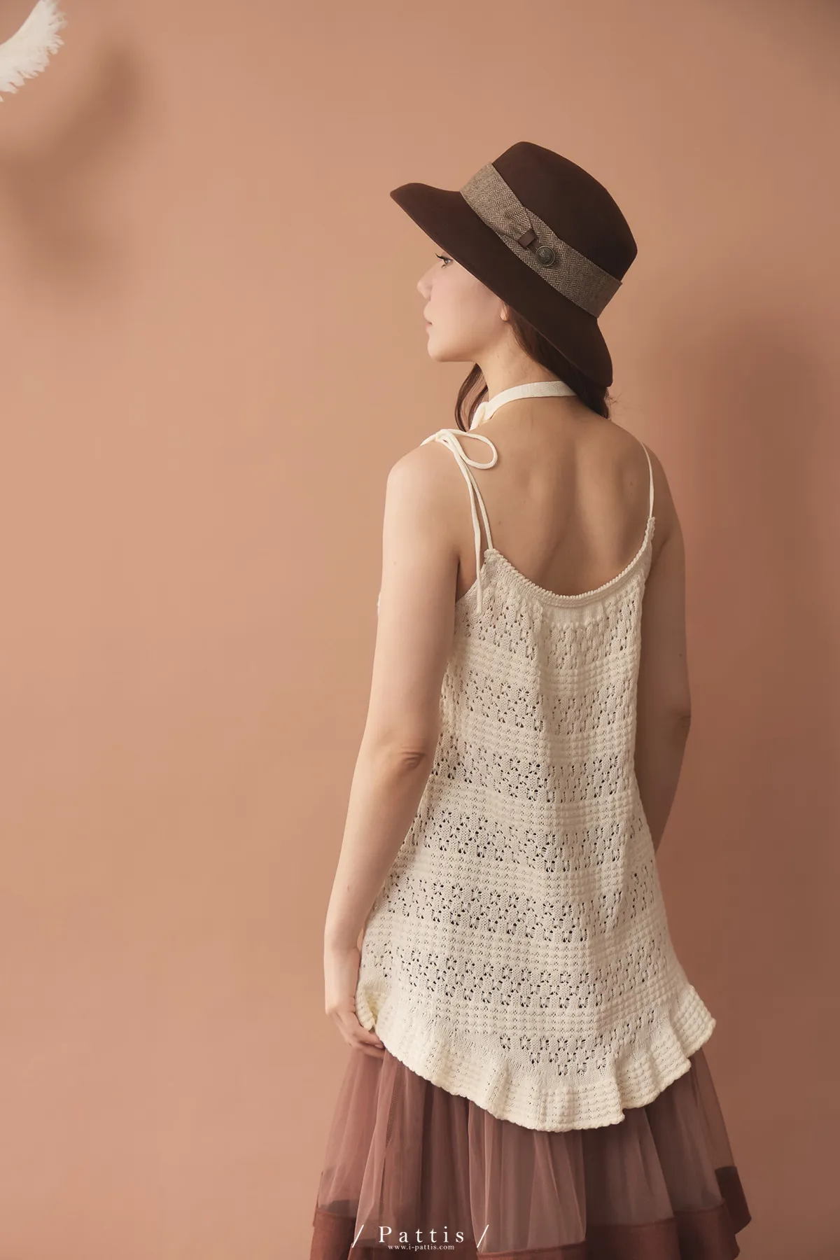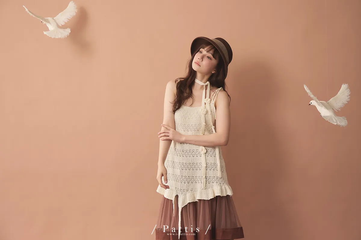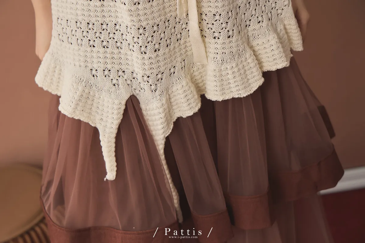 (現貨)暫時獨處是必須 | 附領巾勾針花朵不規則吊帶上衣(米白)