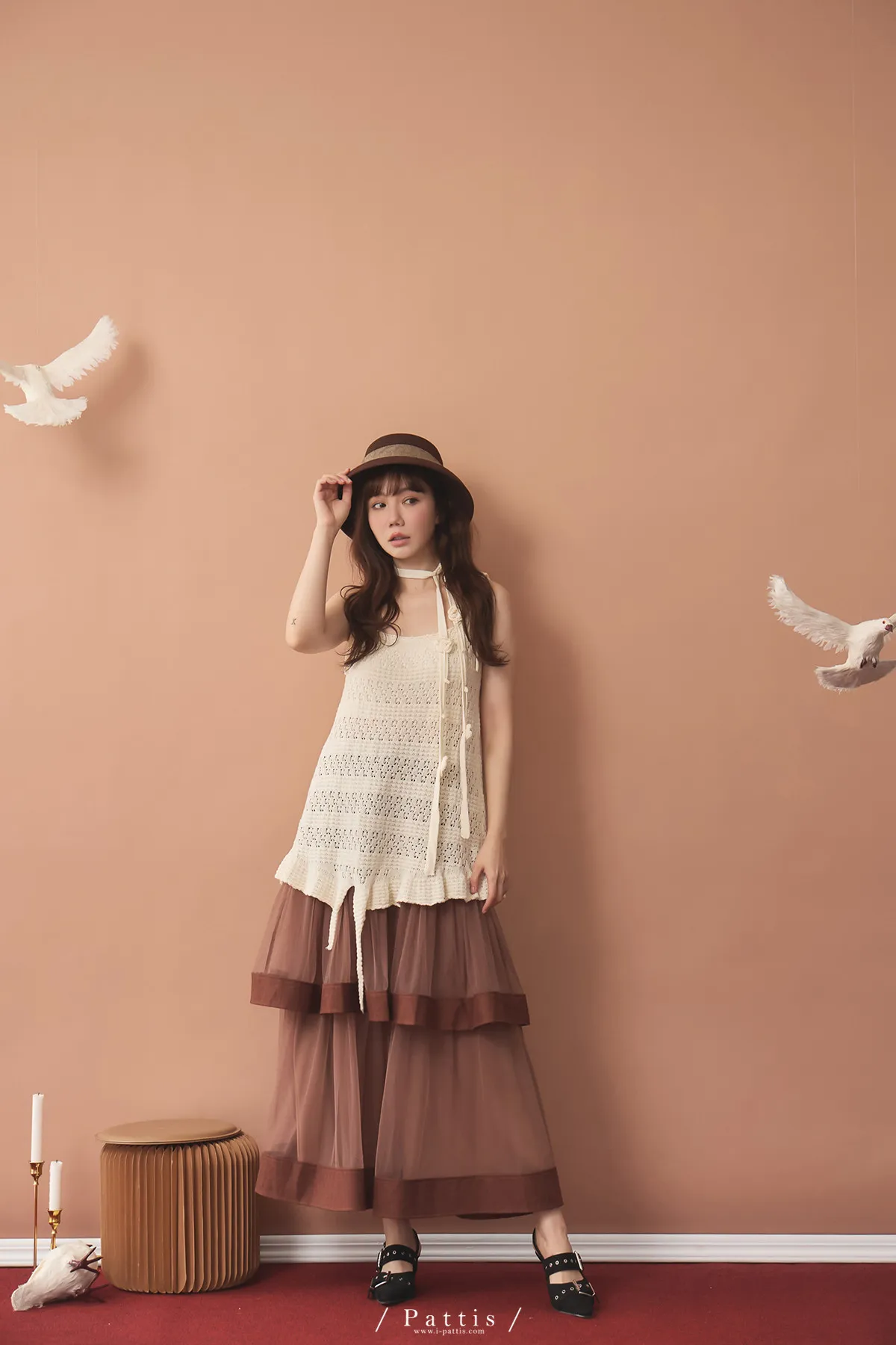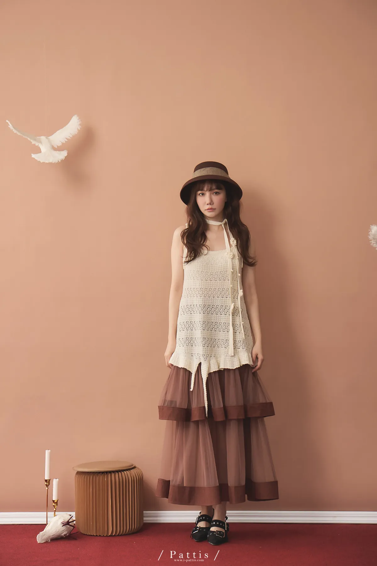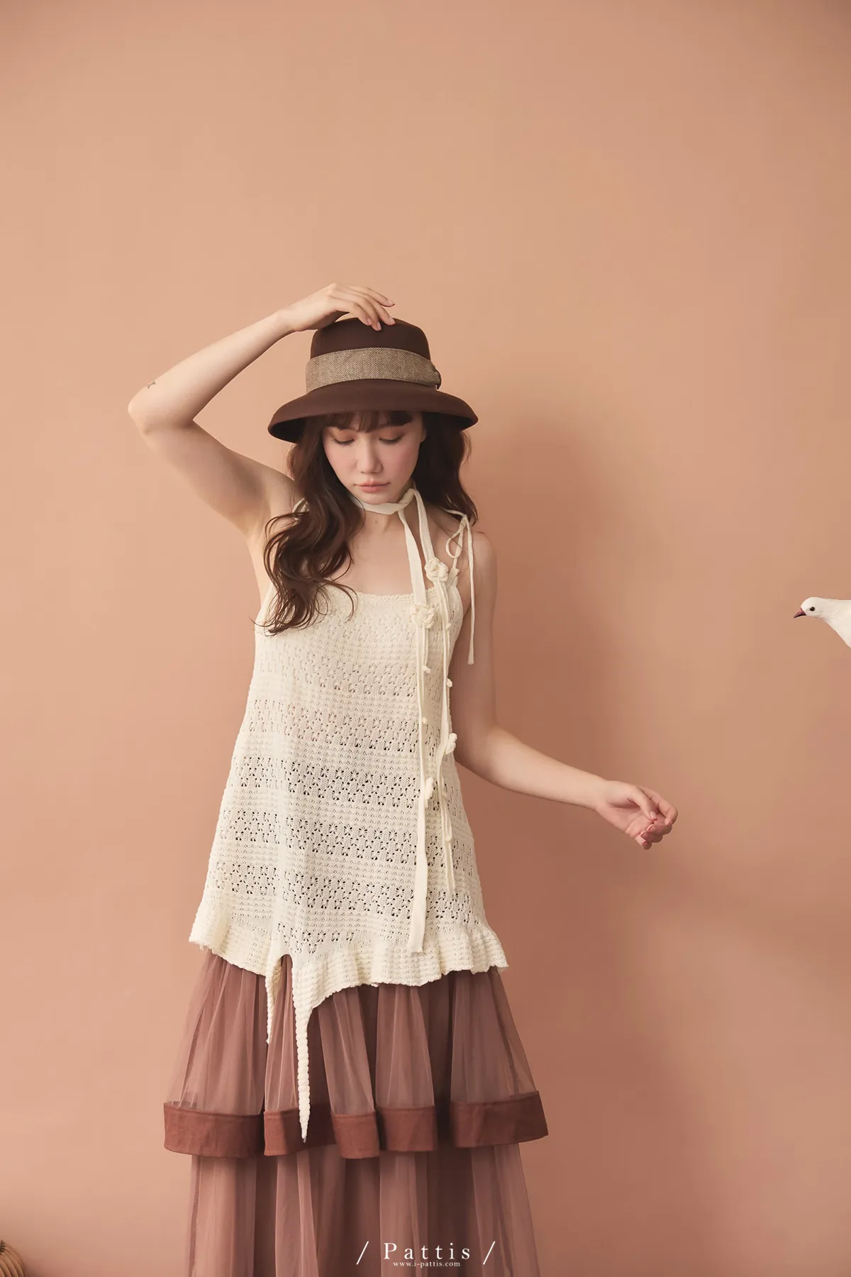 (現貨)暫時獨處是必須 | 附領巾勾針花朵不規則吊帶上衣(米白)