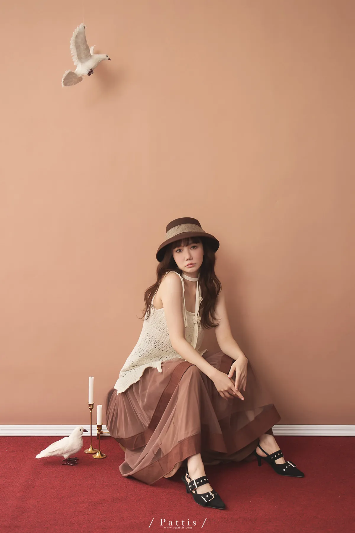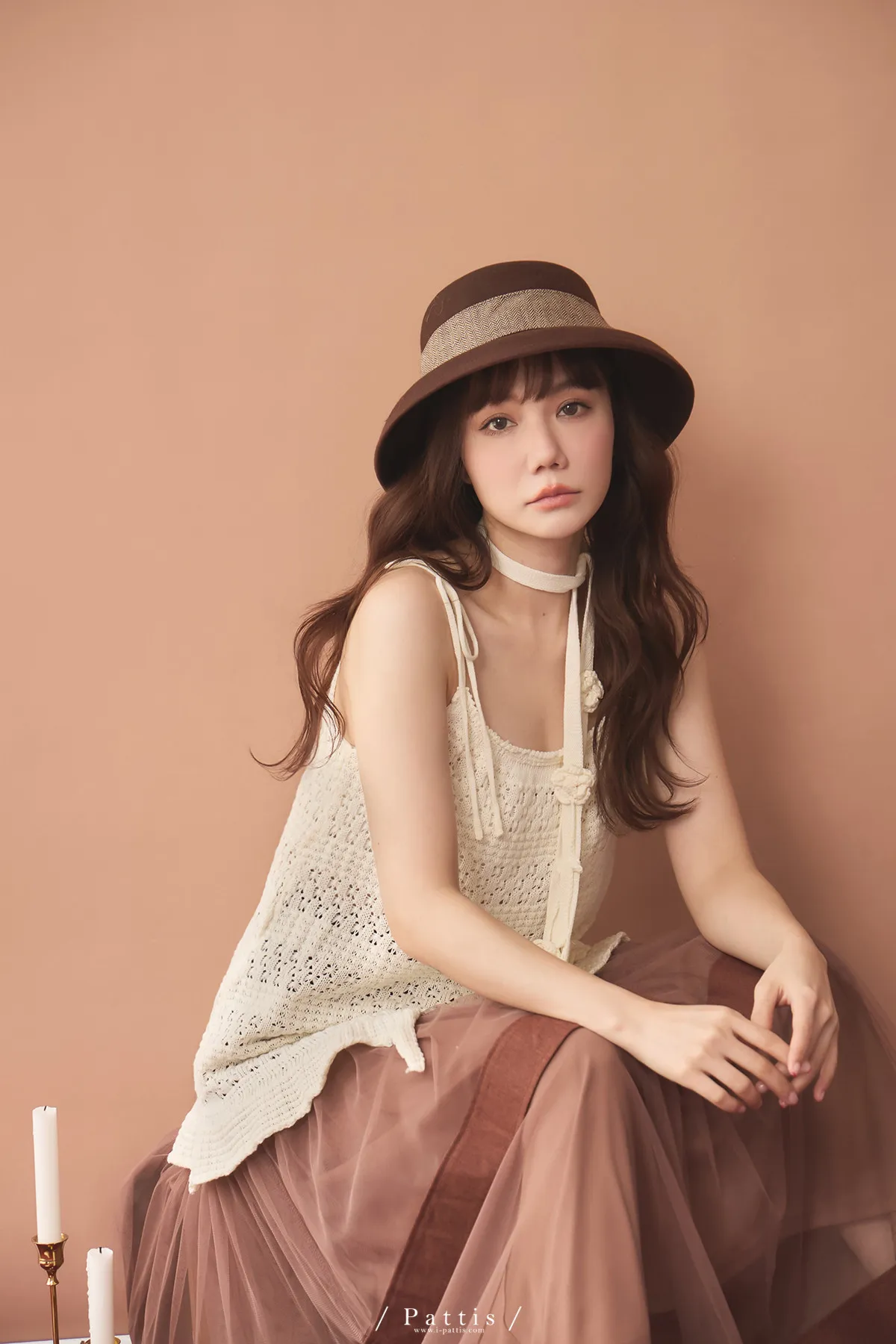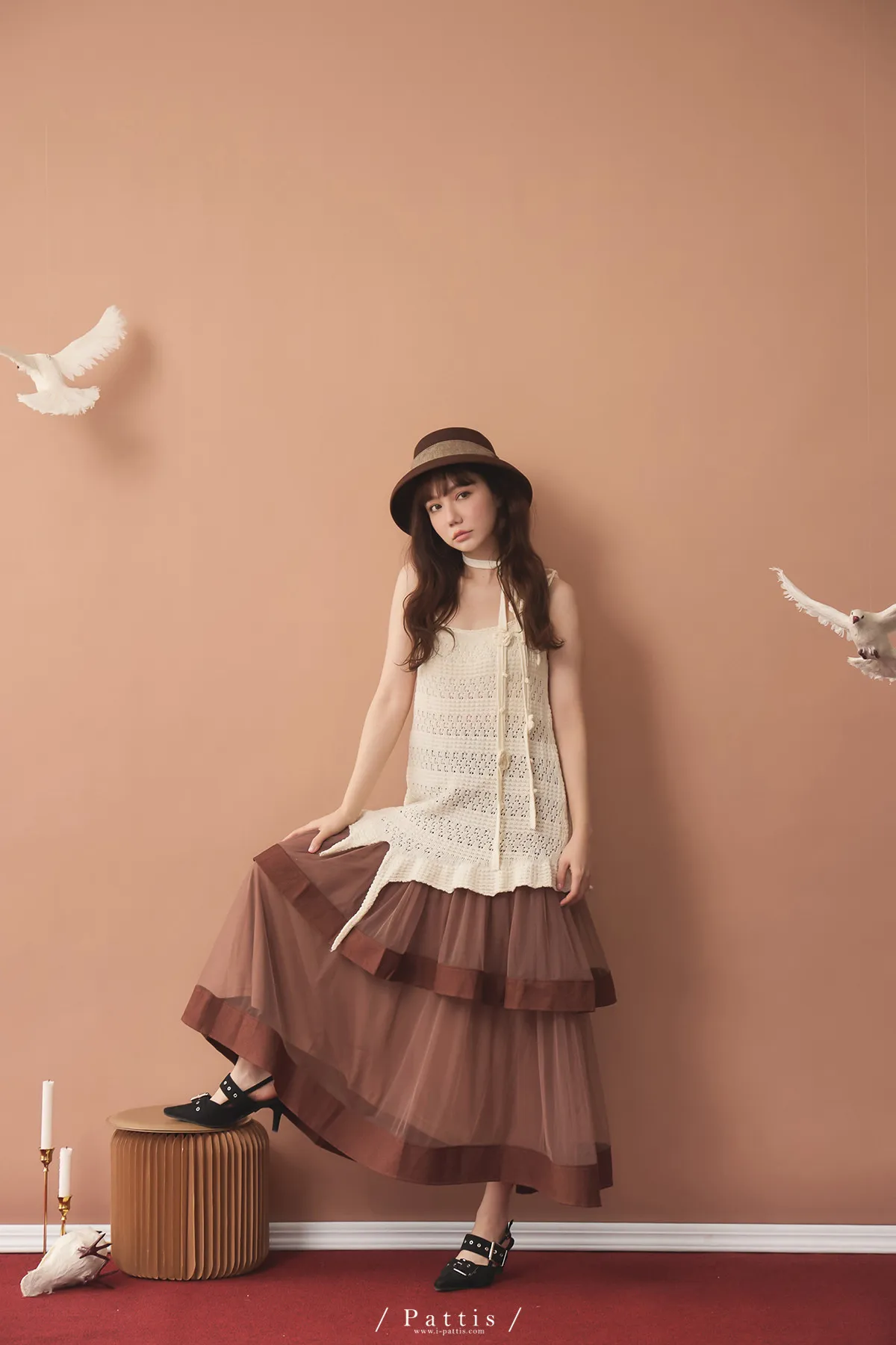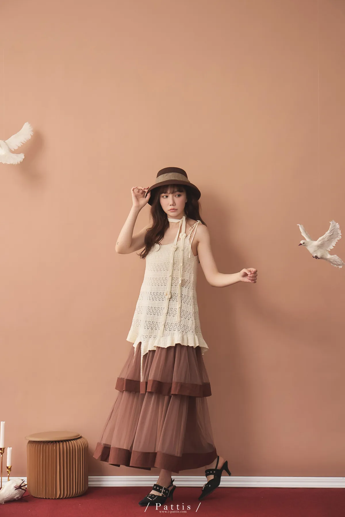 (現貨)暫時獨處是必須 | 附領巾勾針花朵不規則吊帶上衣(米白)