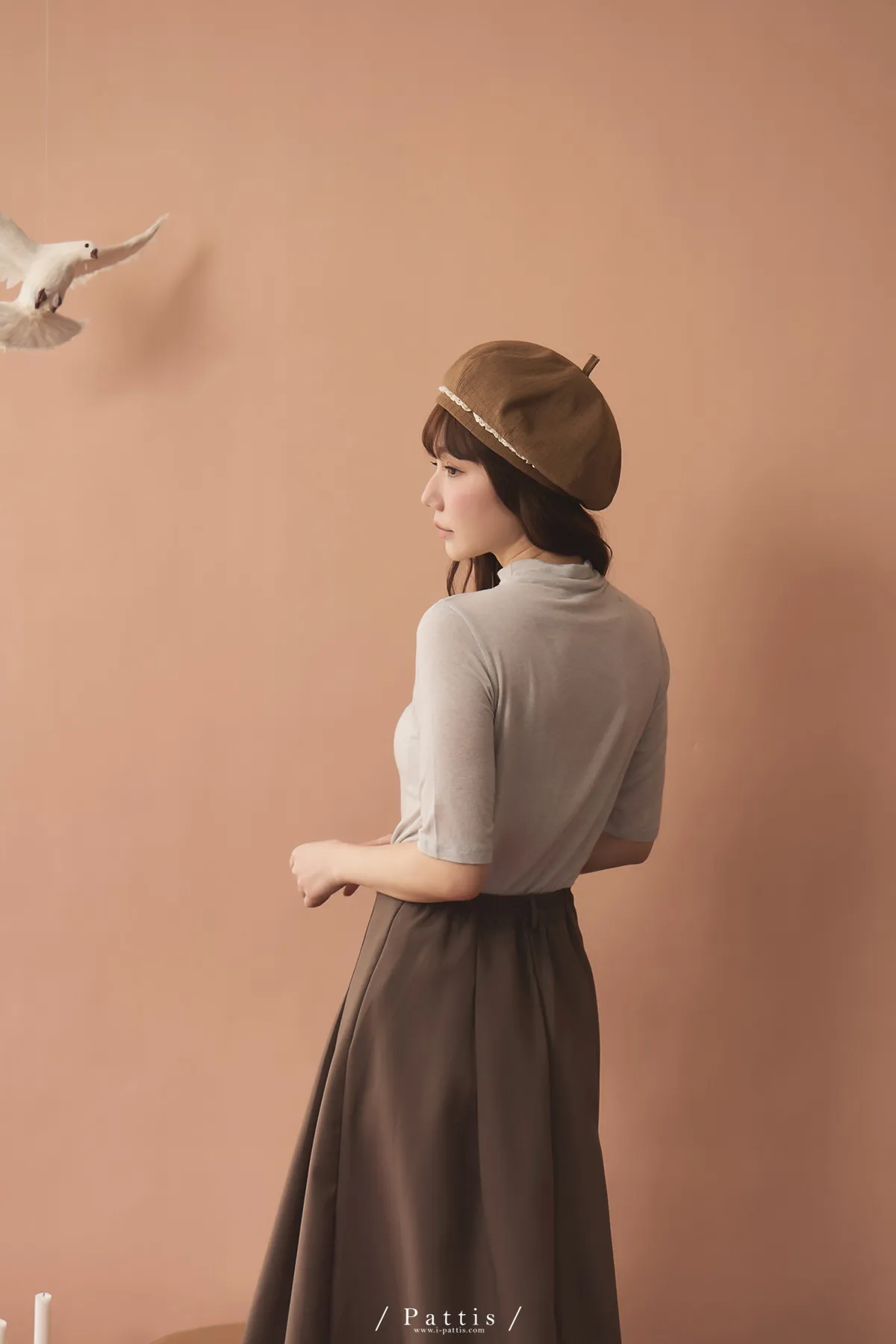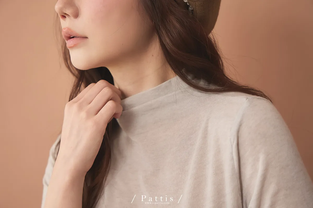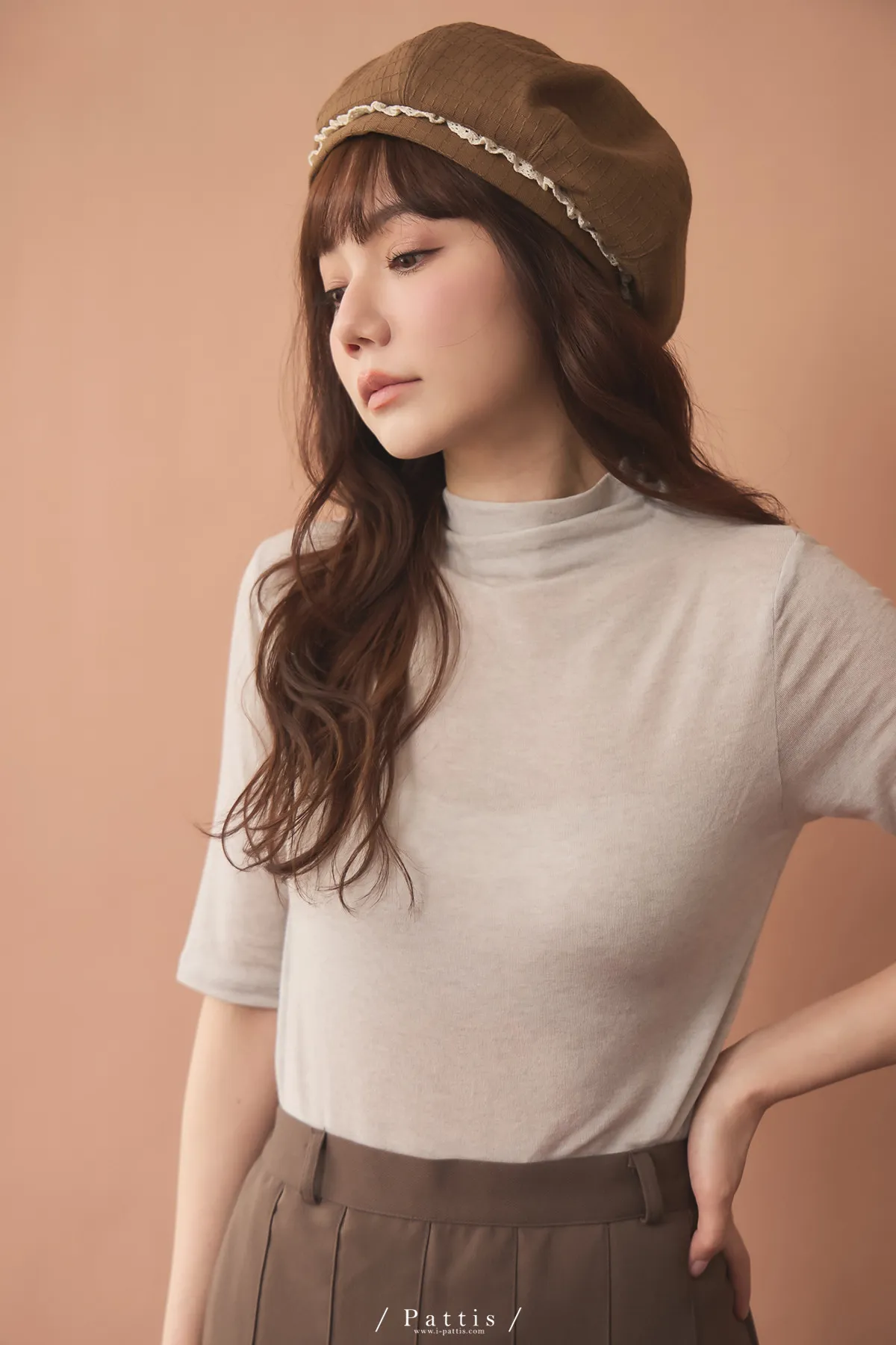 (現貨) *特*小立領親膚五分袖彈性上衣(淺灰綠)