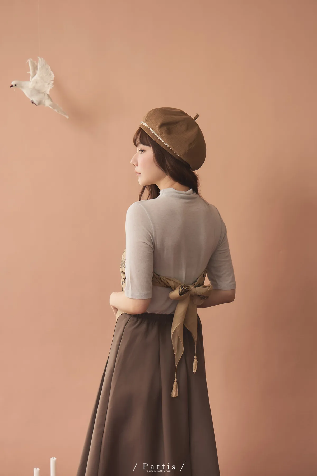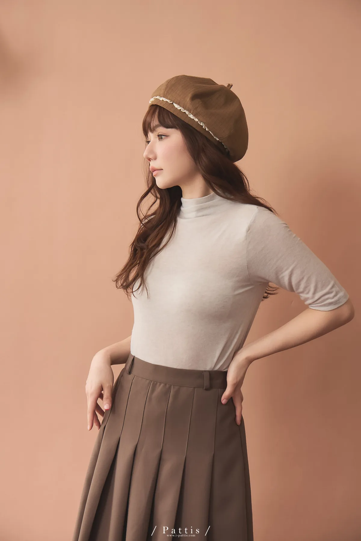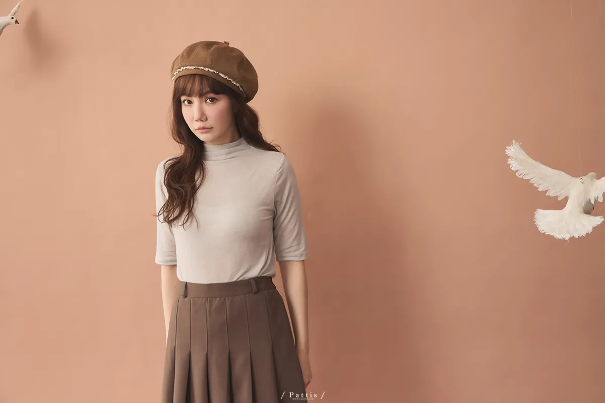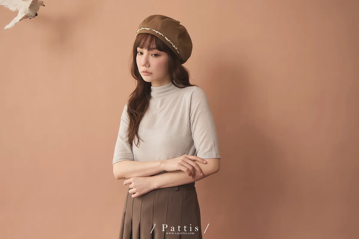 (現貨) *特*小立領親膚五分袖彈性上衣(淺灰綠)