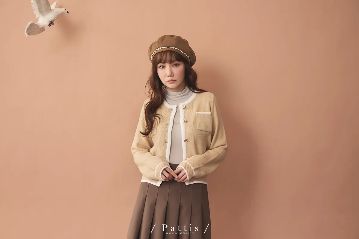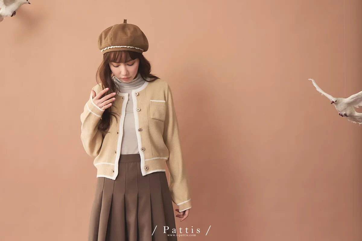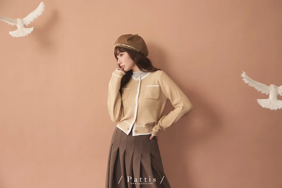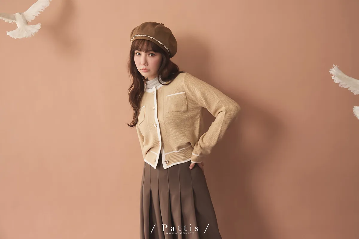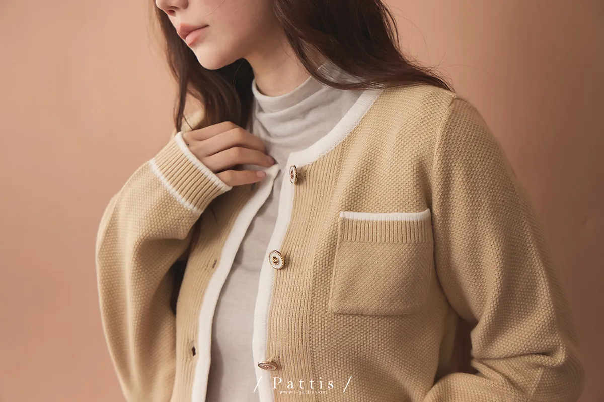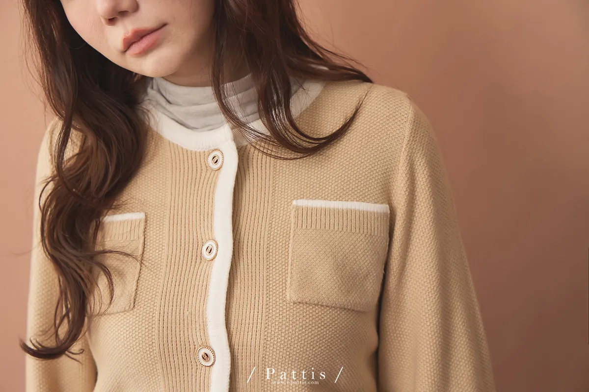 (現貨)溫柔生長的養分 | 滾邊色雙口袋針織外套(黃杏)