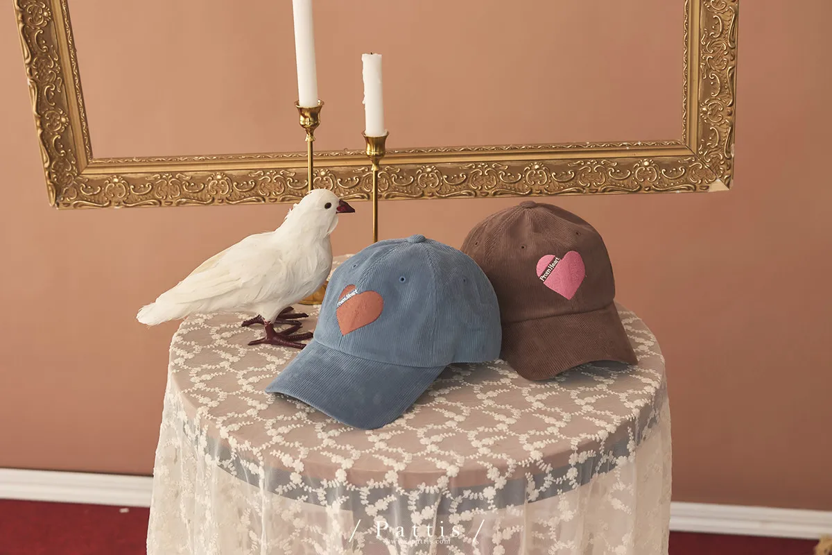 (現貨)字母愛心絨布棒球帽(灰藍/咖啡)