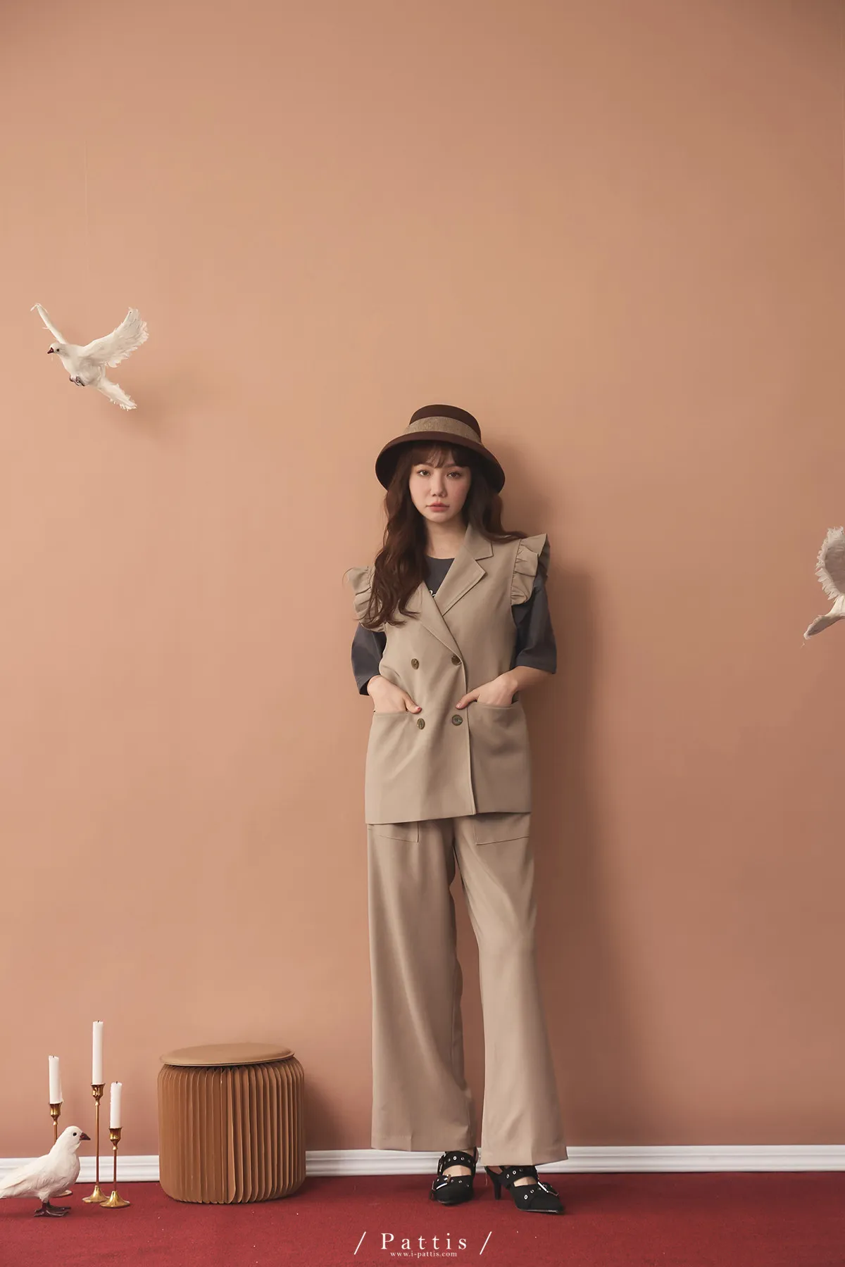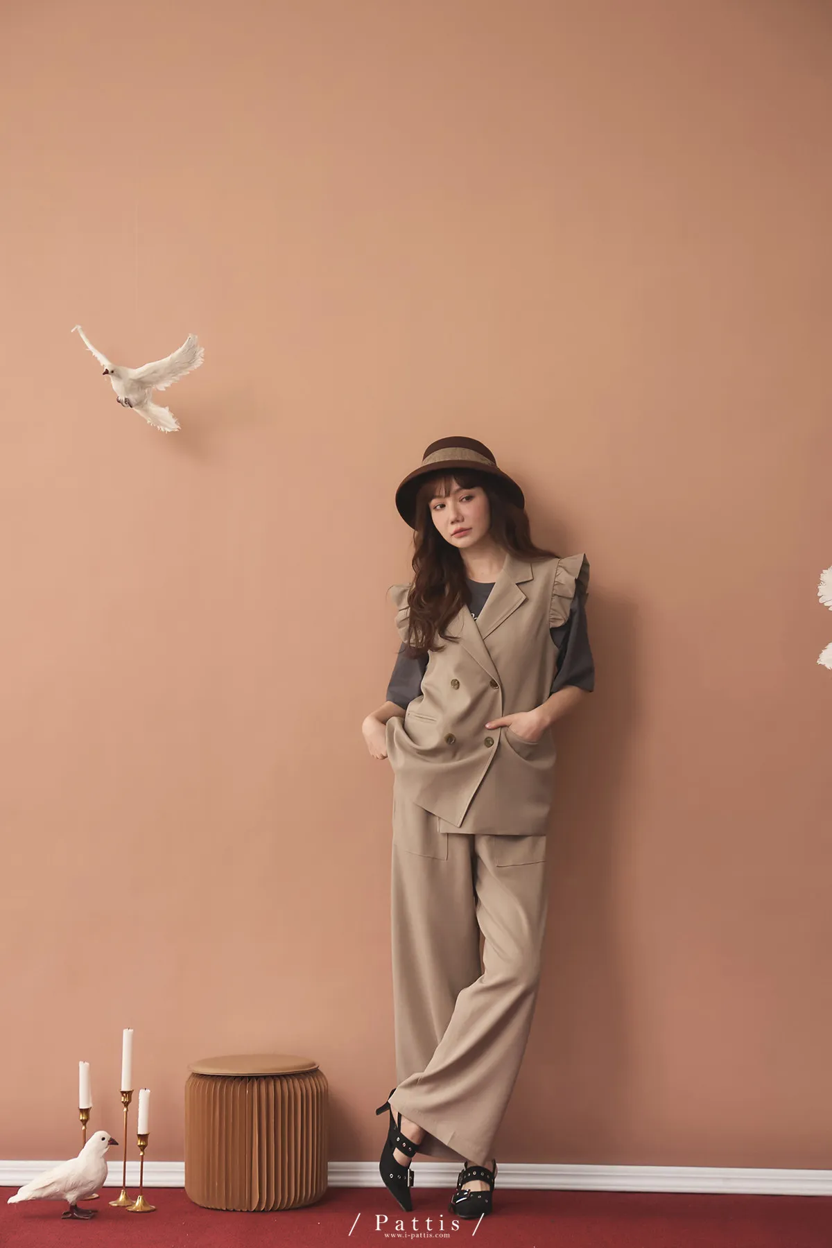 (藕粉杏)基底米杏帶點粉橘色調結合造型設計給人大方優雅的感覺
