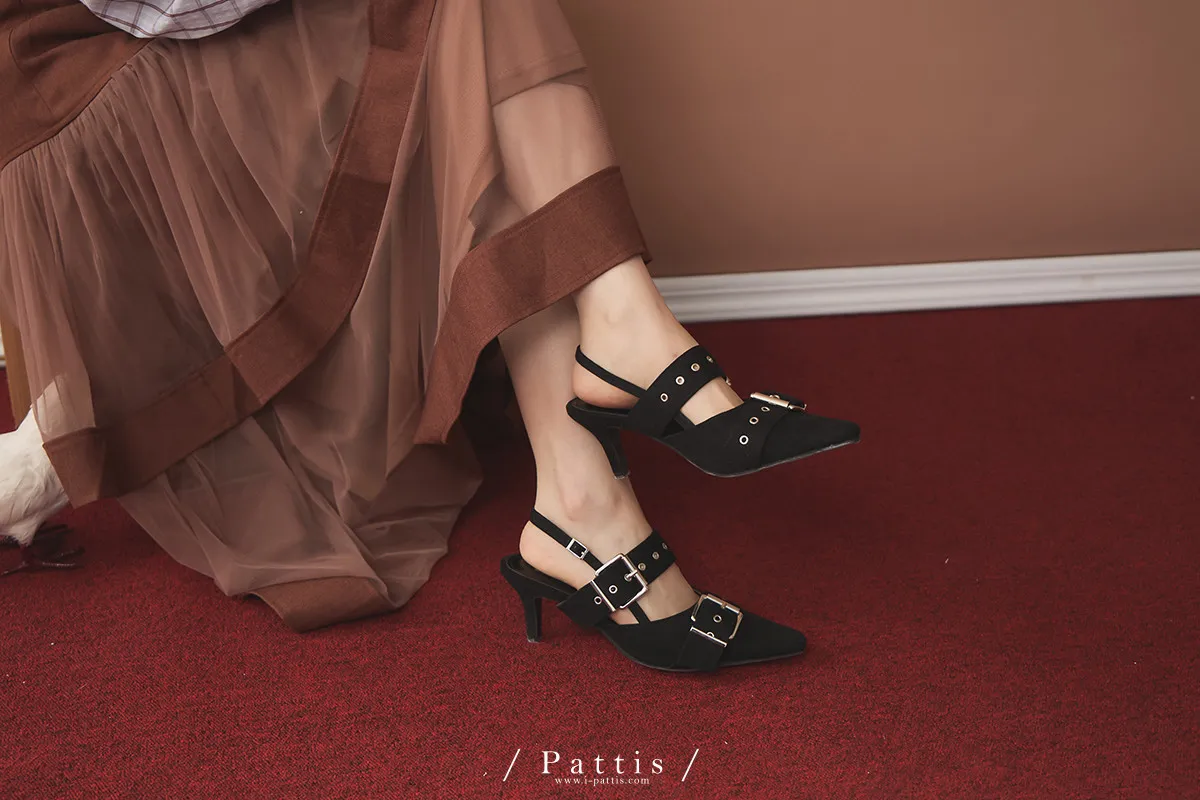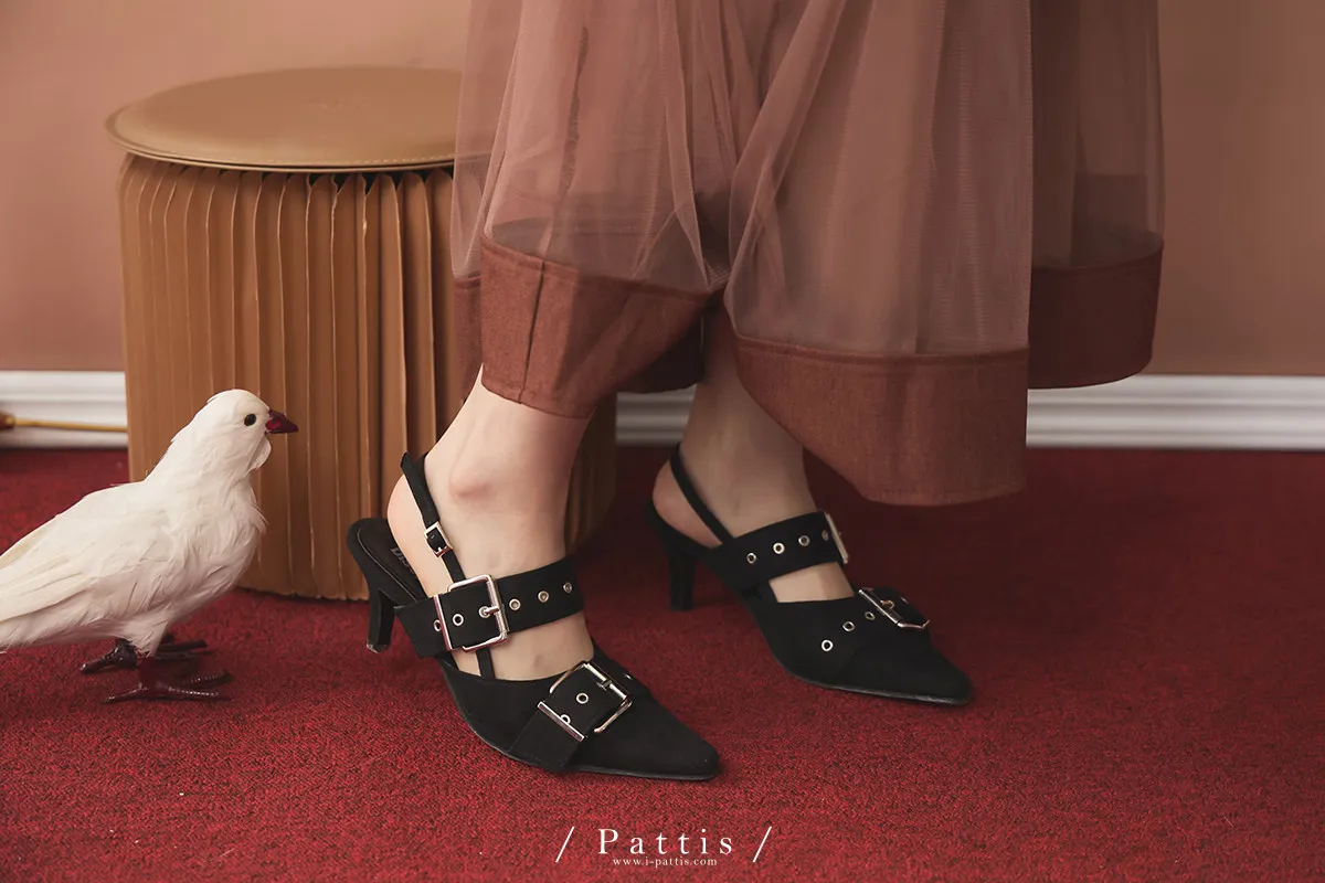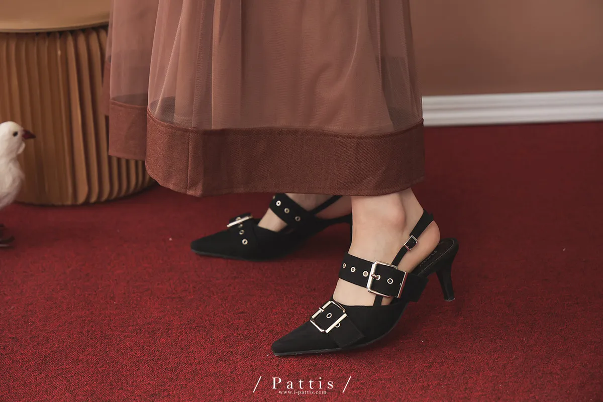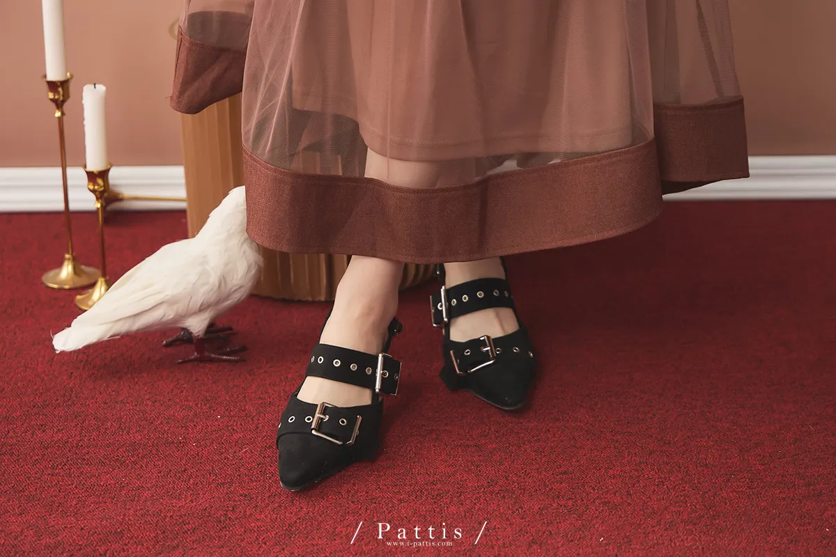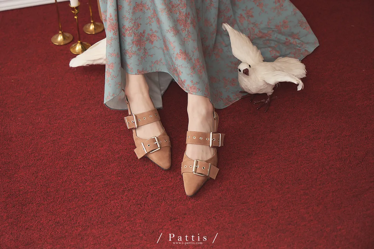 (現貨-藕粉杏/黑24.0)麂皮多孔環扣尖頭鞋(藕粉杏/黑)
