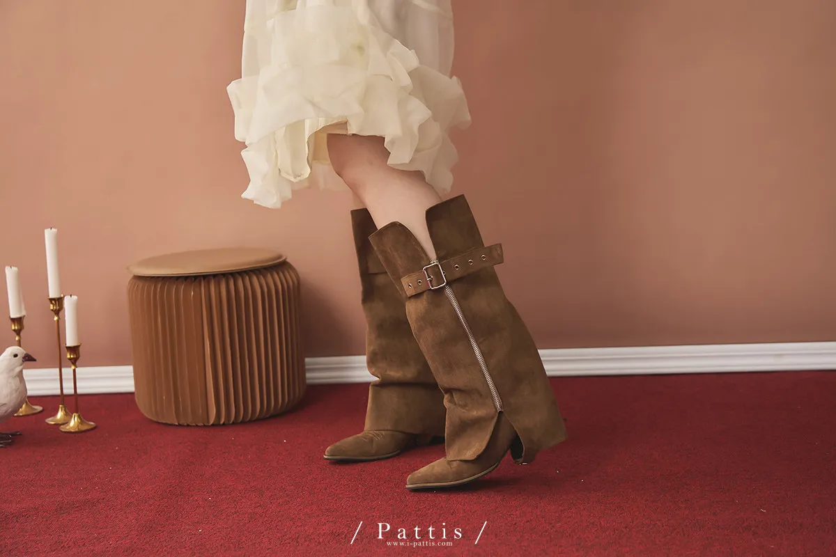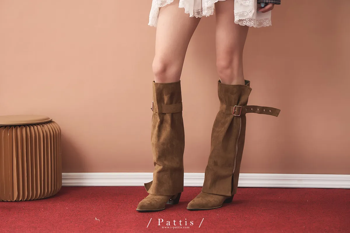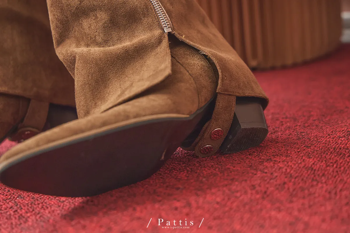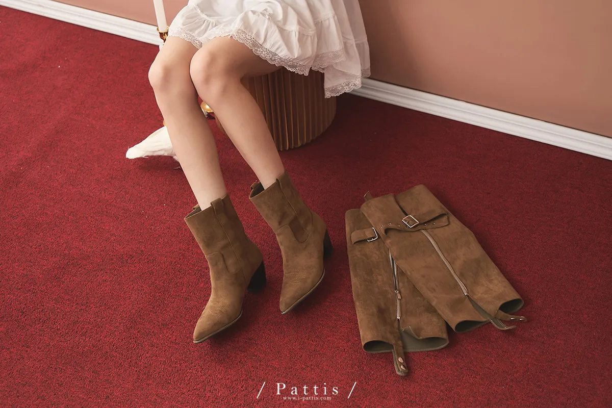 (開放追加)環扣拉鍊襪套+粗跟短靴set組(駝棕/黑)