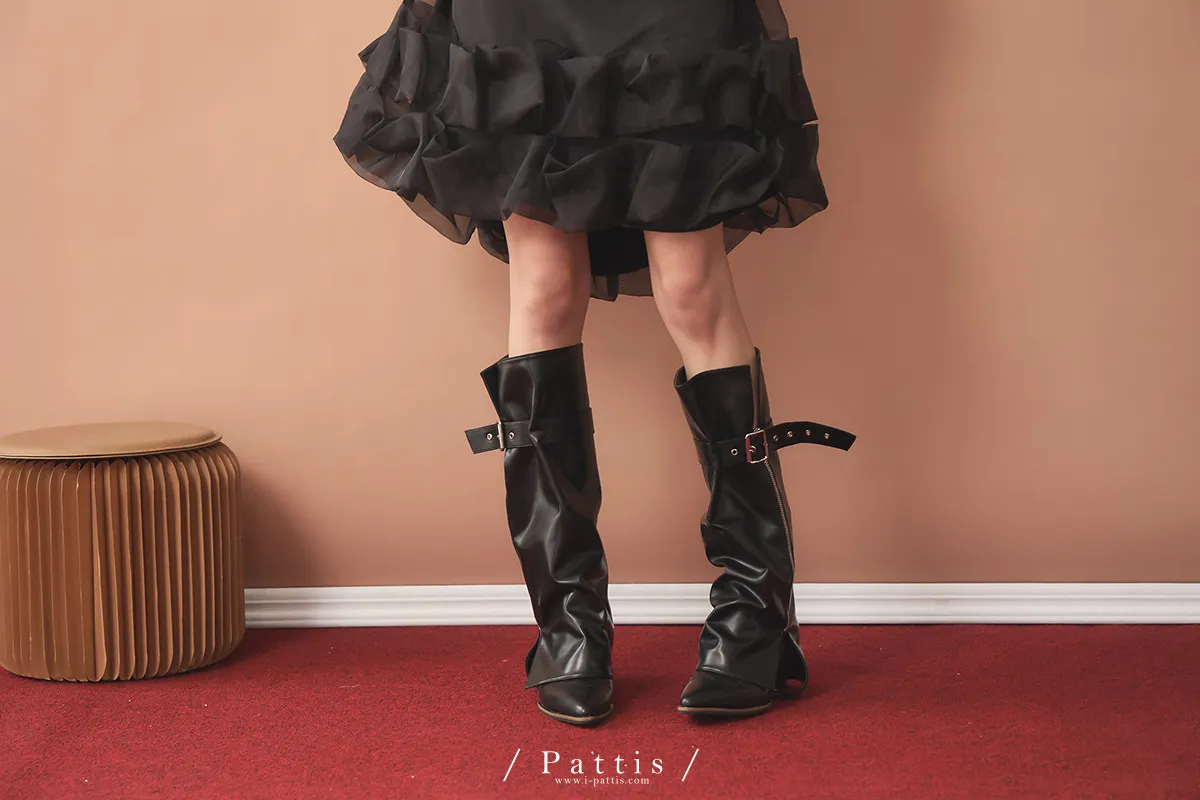 長靴穿法、拆除襪套當中短靴、也可以襪套翻摺做造型變化