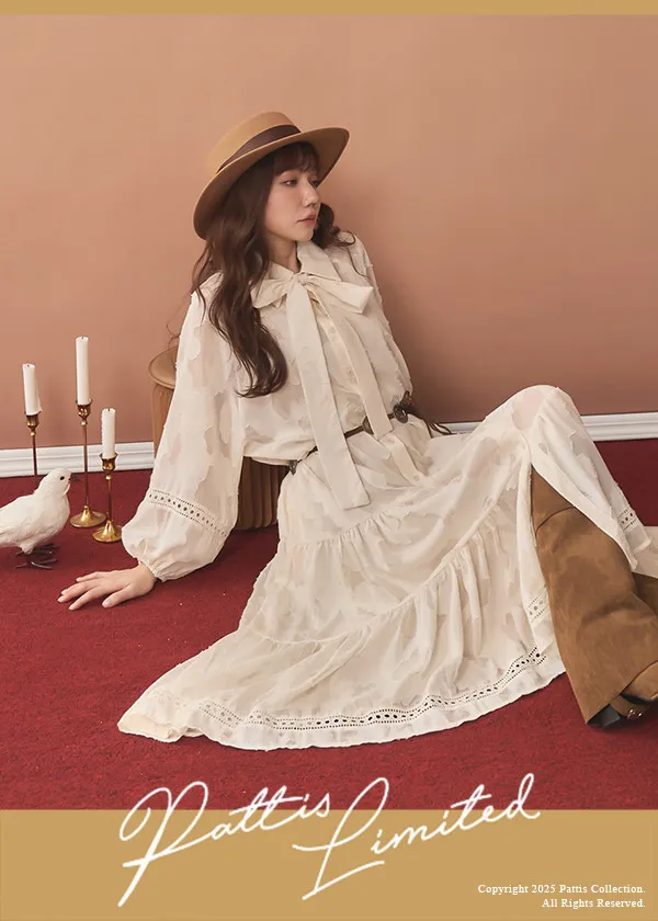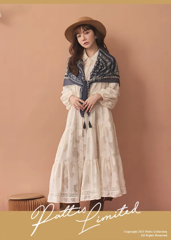 外借一本許願書|葉脈圈圈縷空蓬袖洋裝罩衫+襯裙set(奶油桂花)