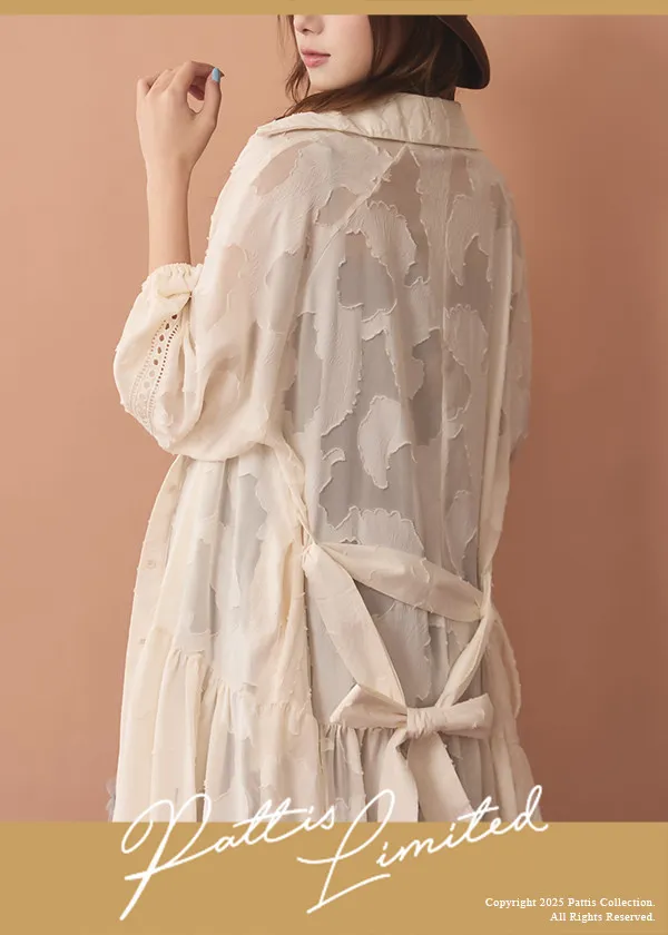罩衫上微透肌的葉脈印紋遍佈,若隱若現的花紋更顯質感