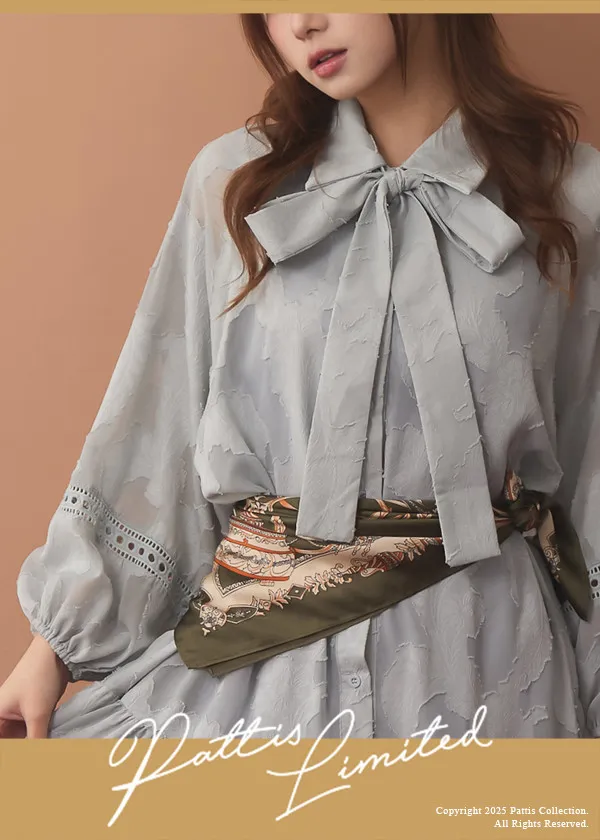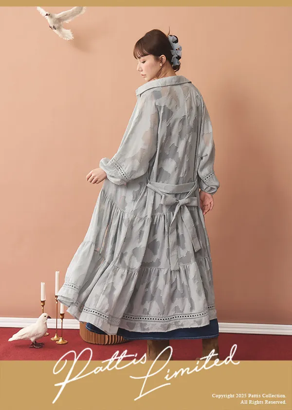 罩衫上微透肌的葉脈印紋遍佈,若隱若現的花紋更顯質感