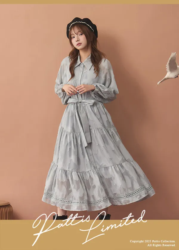 外借一本許願書|葉脈圈圈縷空蓬袖洋裝罩衫+襯裙set(雪松島域)