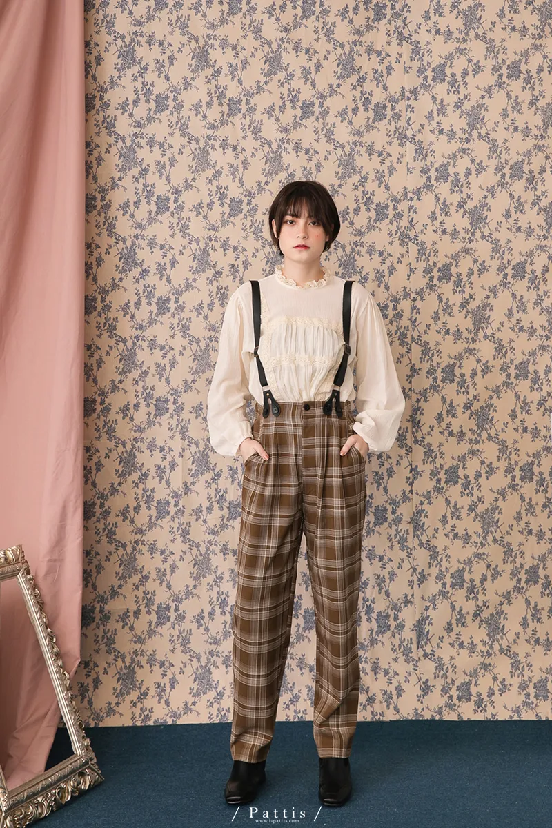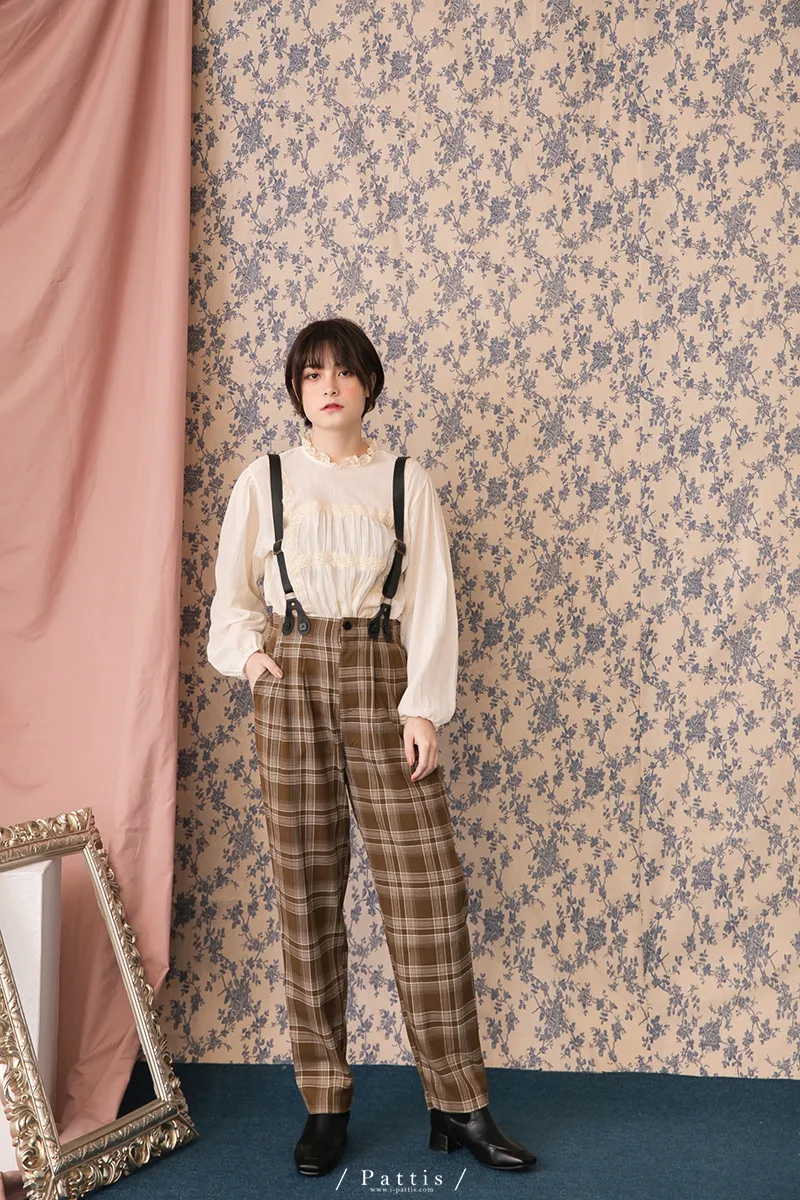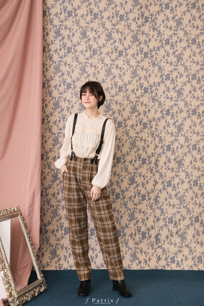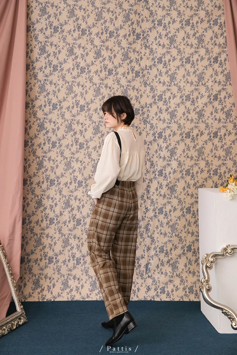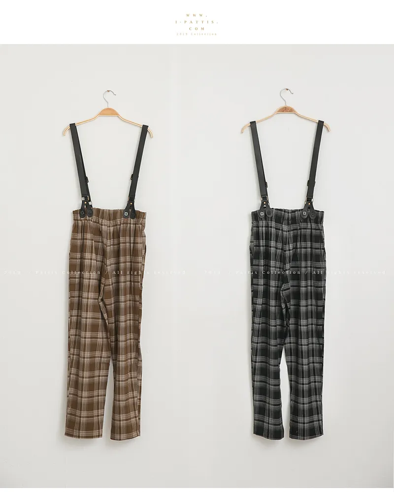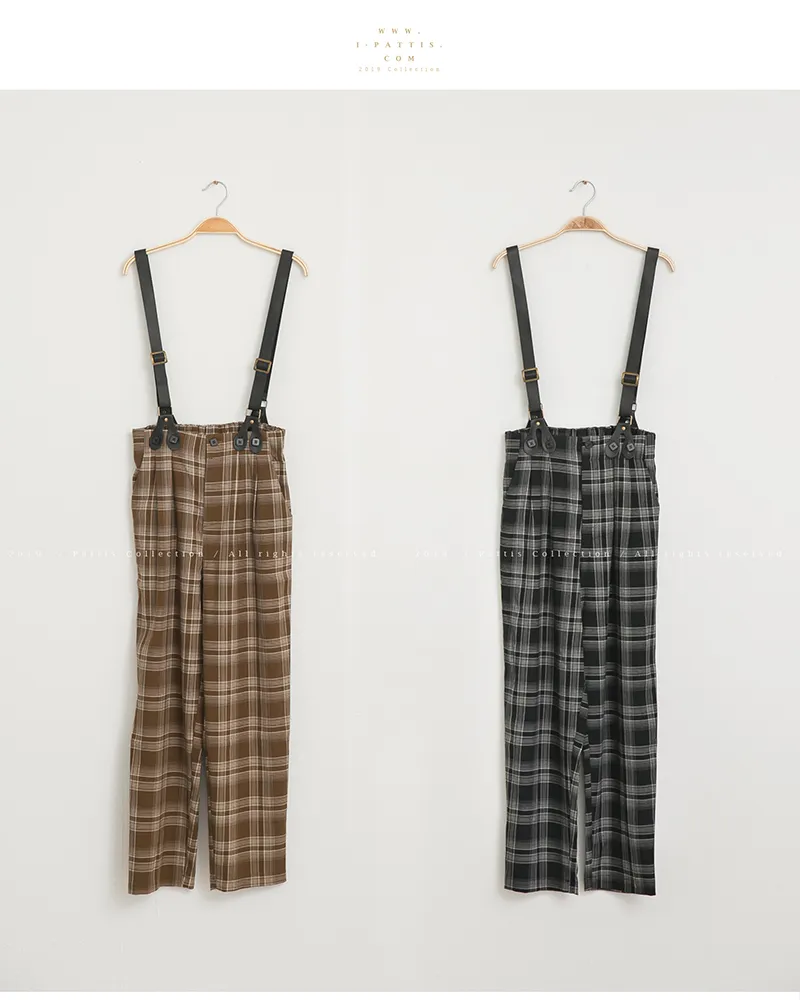 中性加乘感性 | 舒棉格紋2way吊帶褲(咖啡)