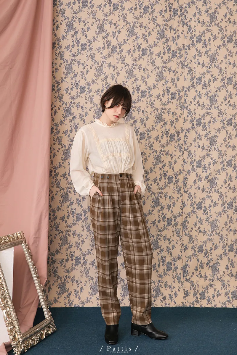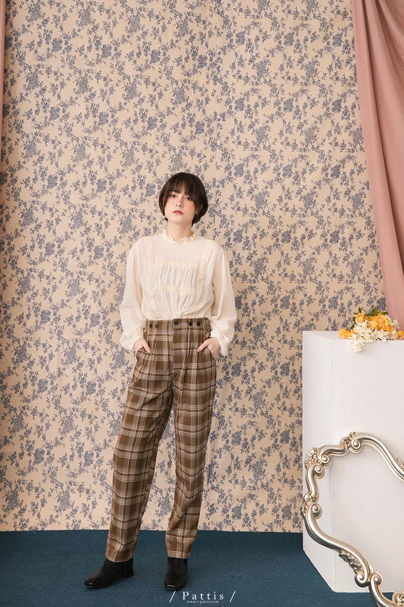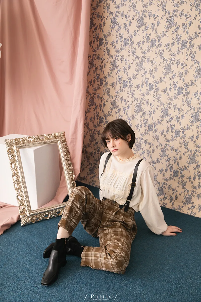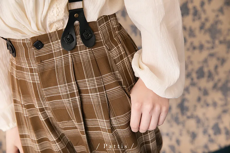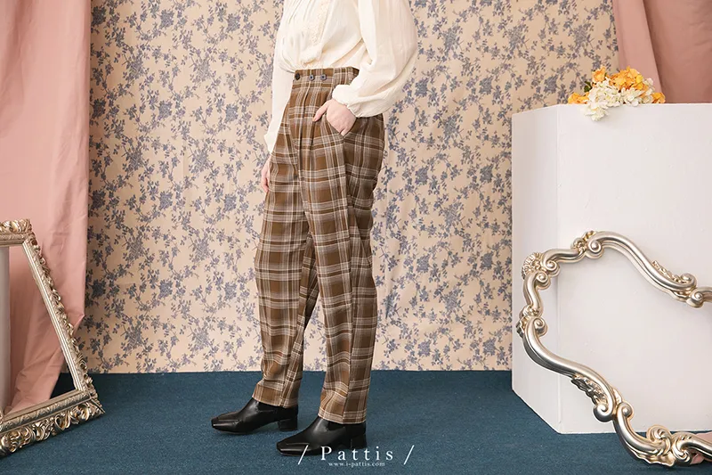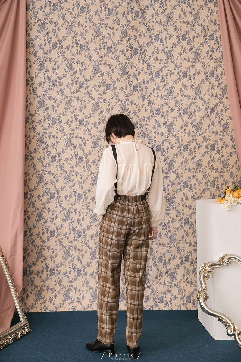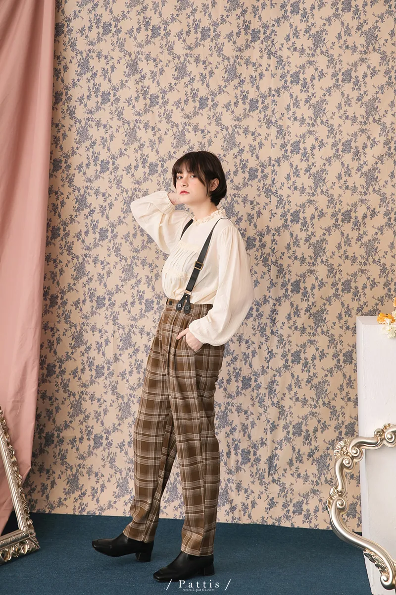 中性加乘感性 | 舒棉格紋2way吊帶褲(咖啡)
